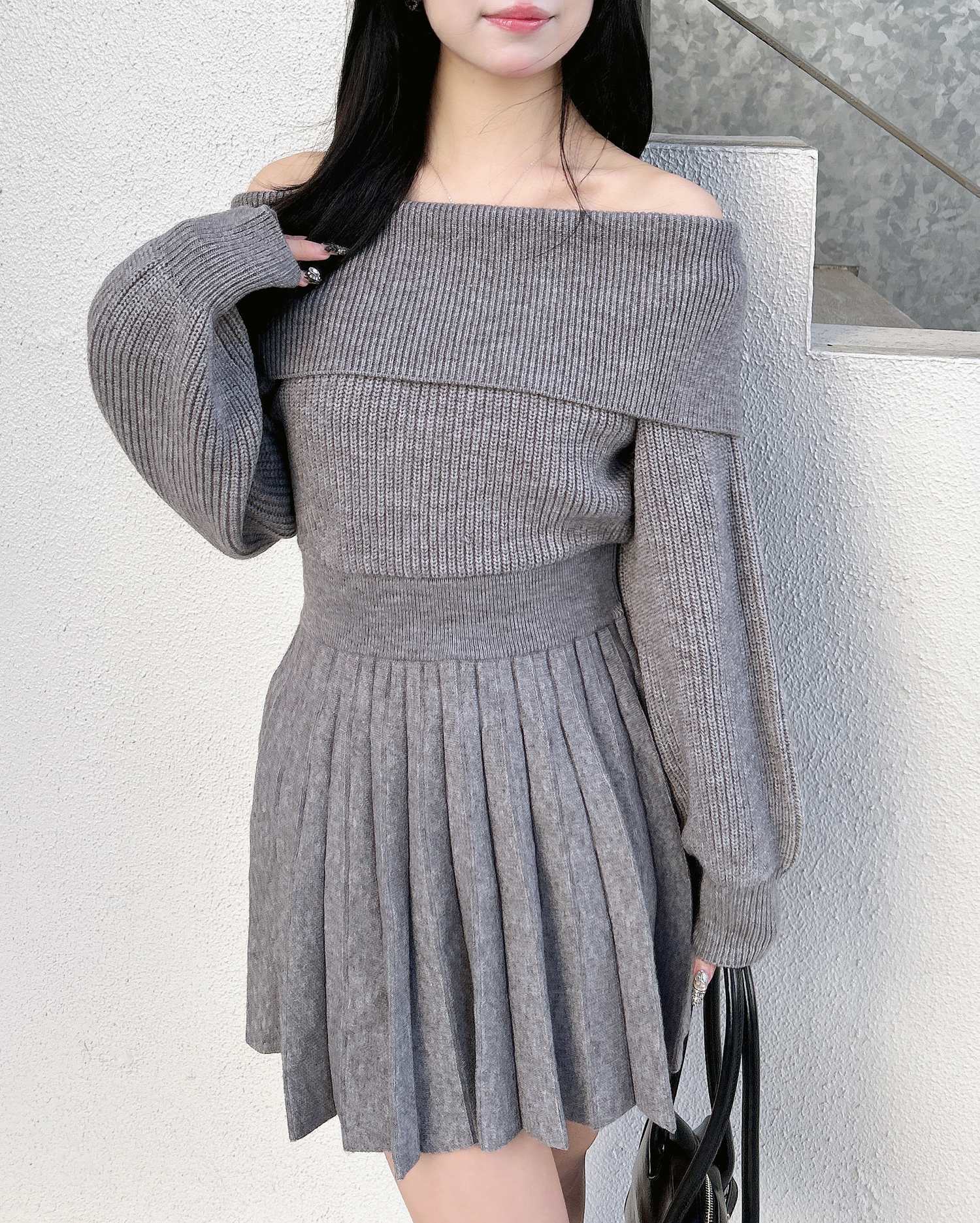 動くたびに揺れるプリーツデザインがフェミニンな印象を与えてくれるニットワンピース。