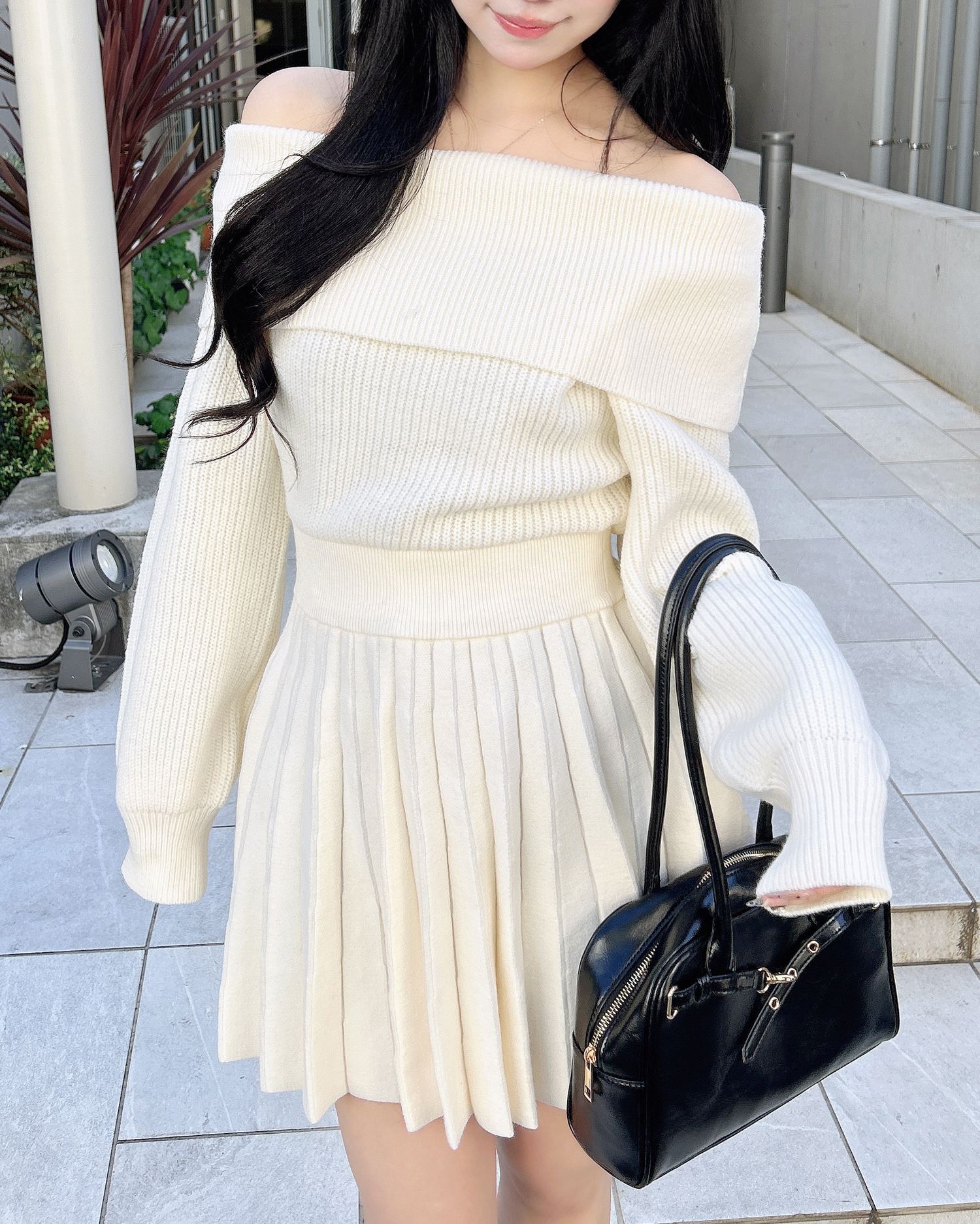 【オフショルデザインがかわいい♡冬の爆モテ最強ニットワンピ】