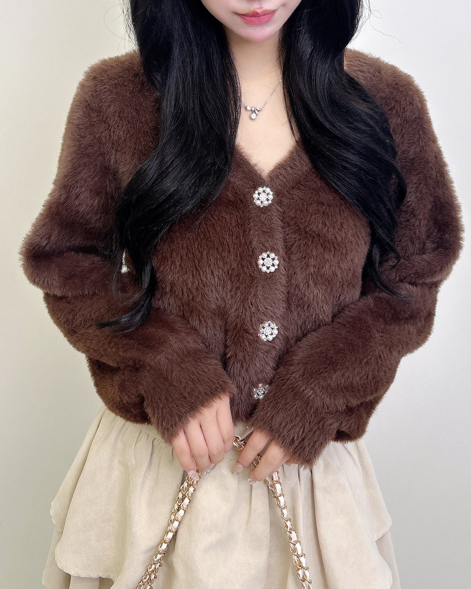 ボタンはパールビジュー&ラインストーンで華やかに仕上げています。