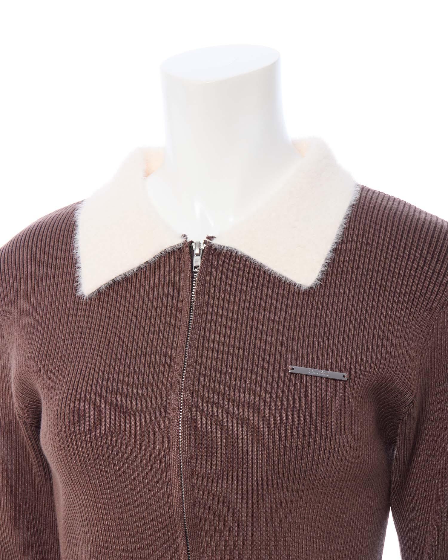 トレンドのダブルジップカーディガンが、ふわふわのフェザー襟をつけて登場!