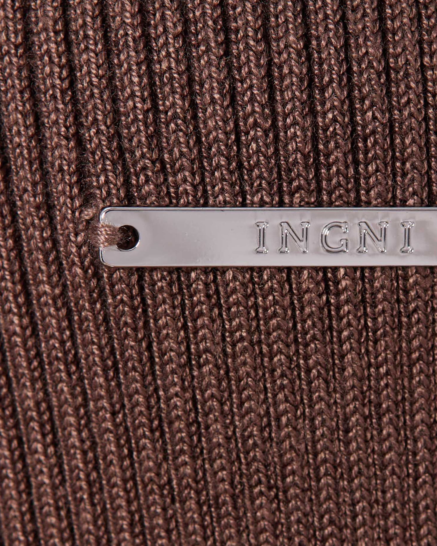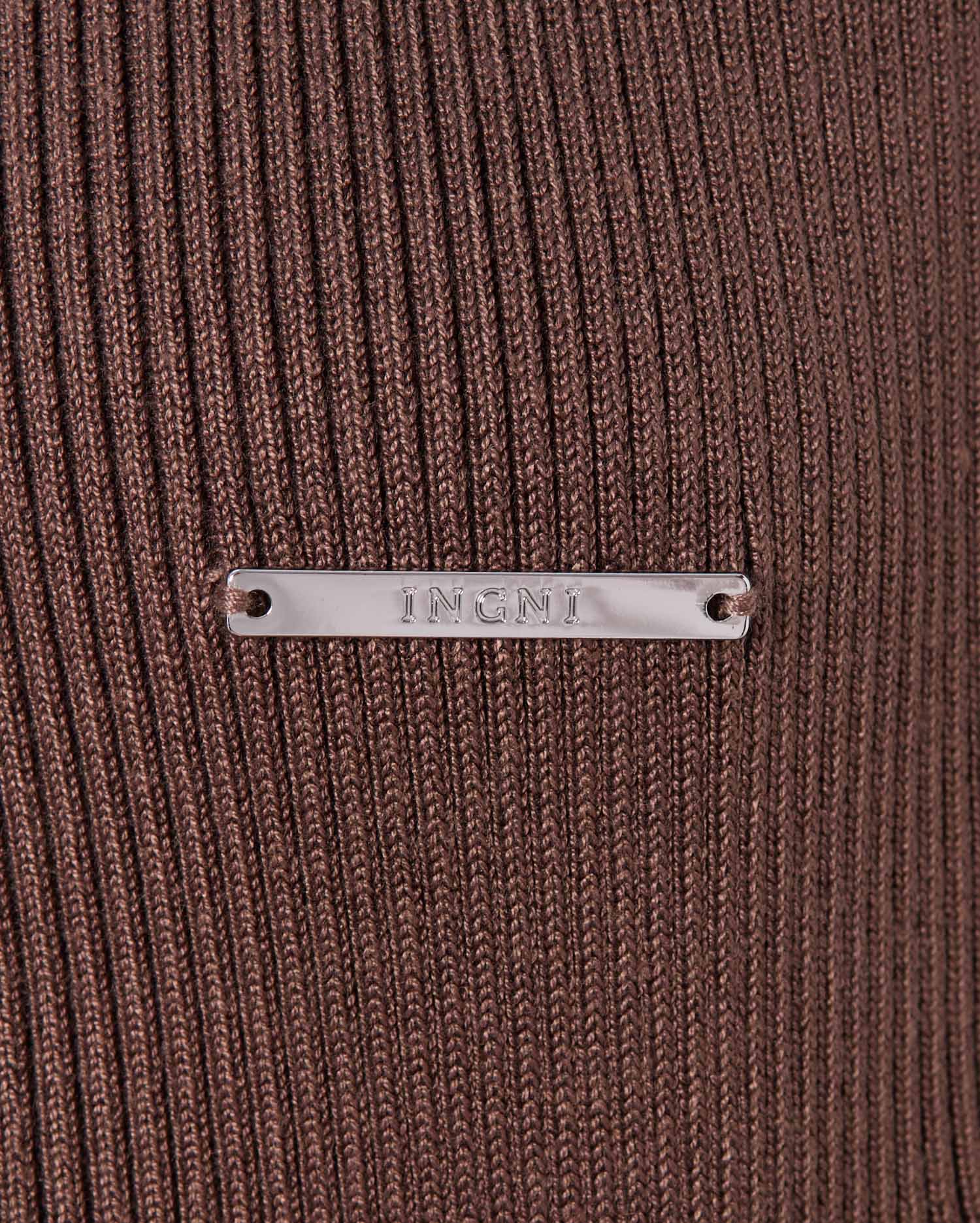 胸元にあしらったブランドネーム入りのプレートがメタリックなアクセントに。