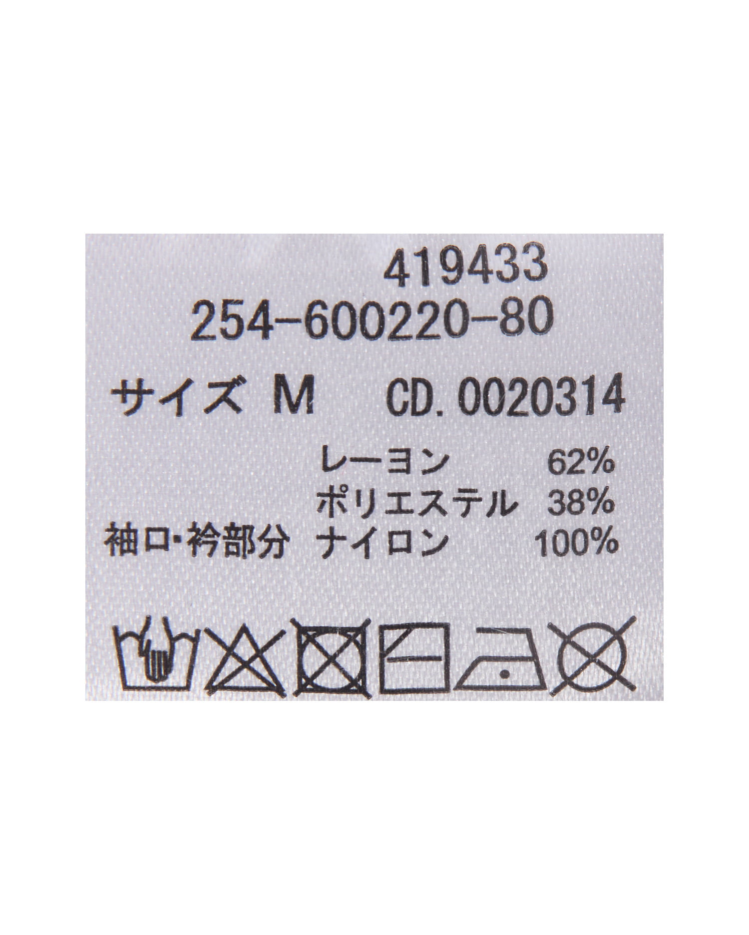 原産国 中国 レーヨン62% ポリエステル38% 衿・袖口 ナイロン100%