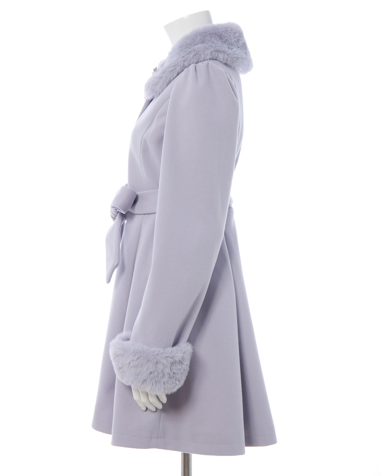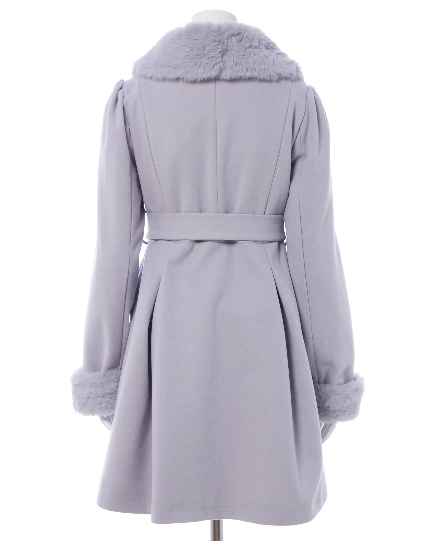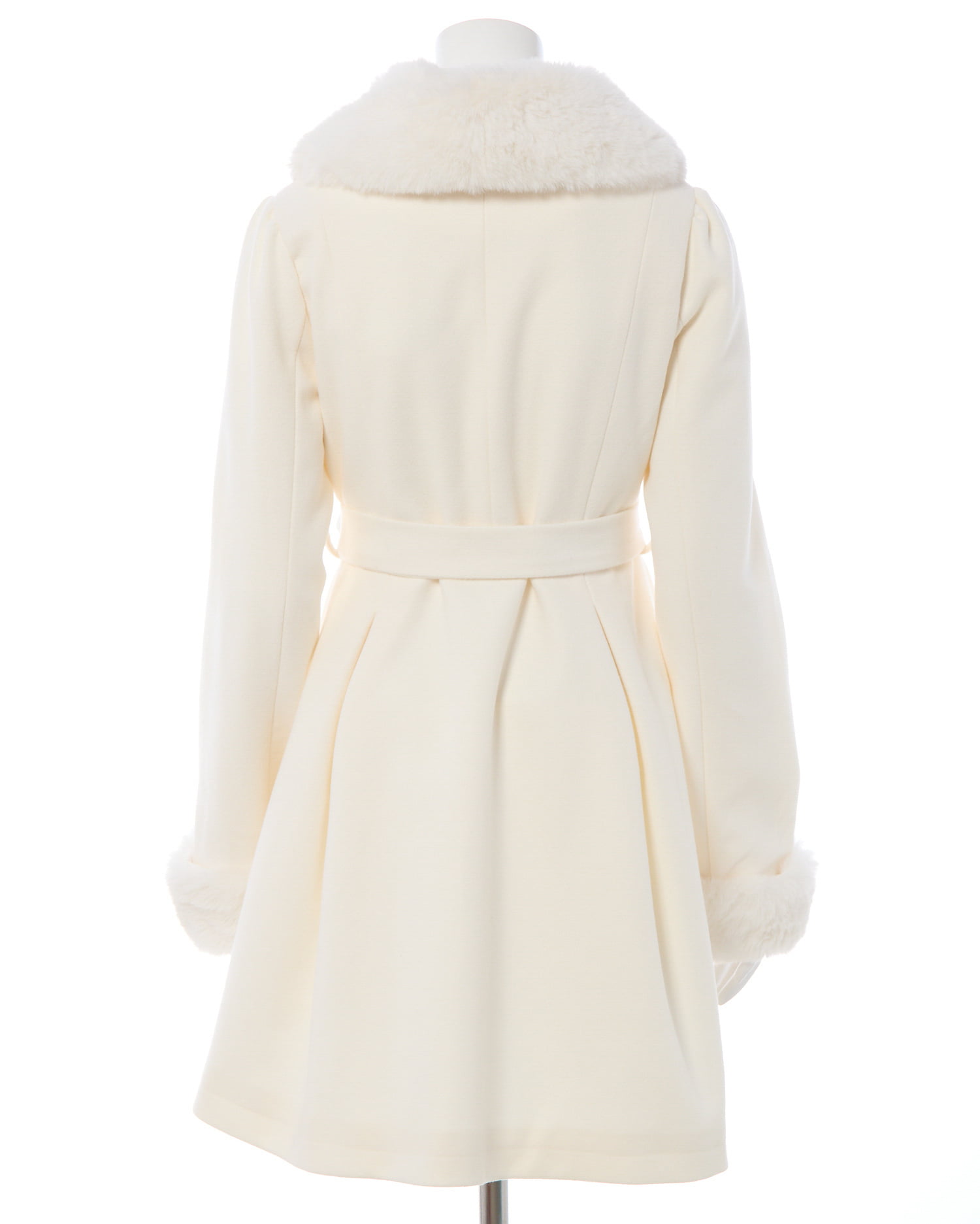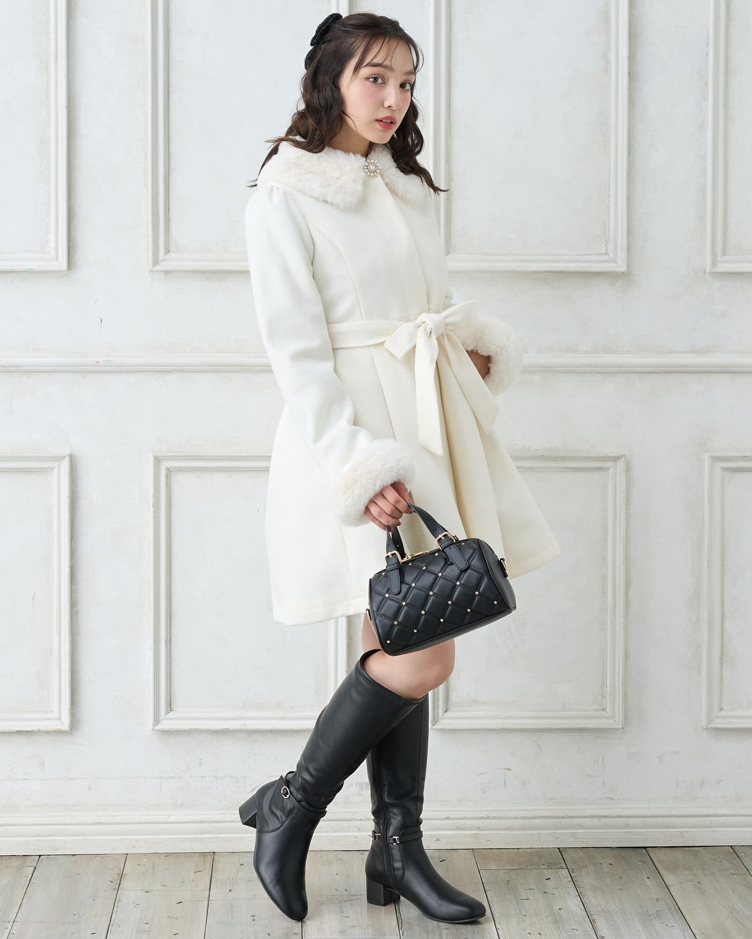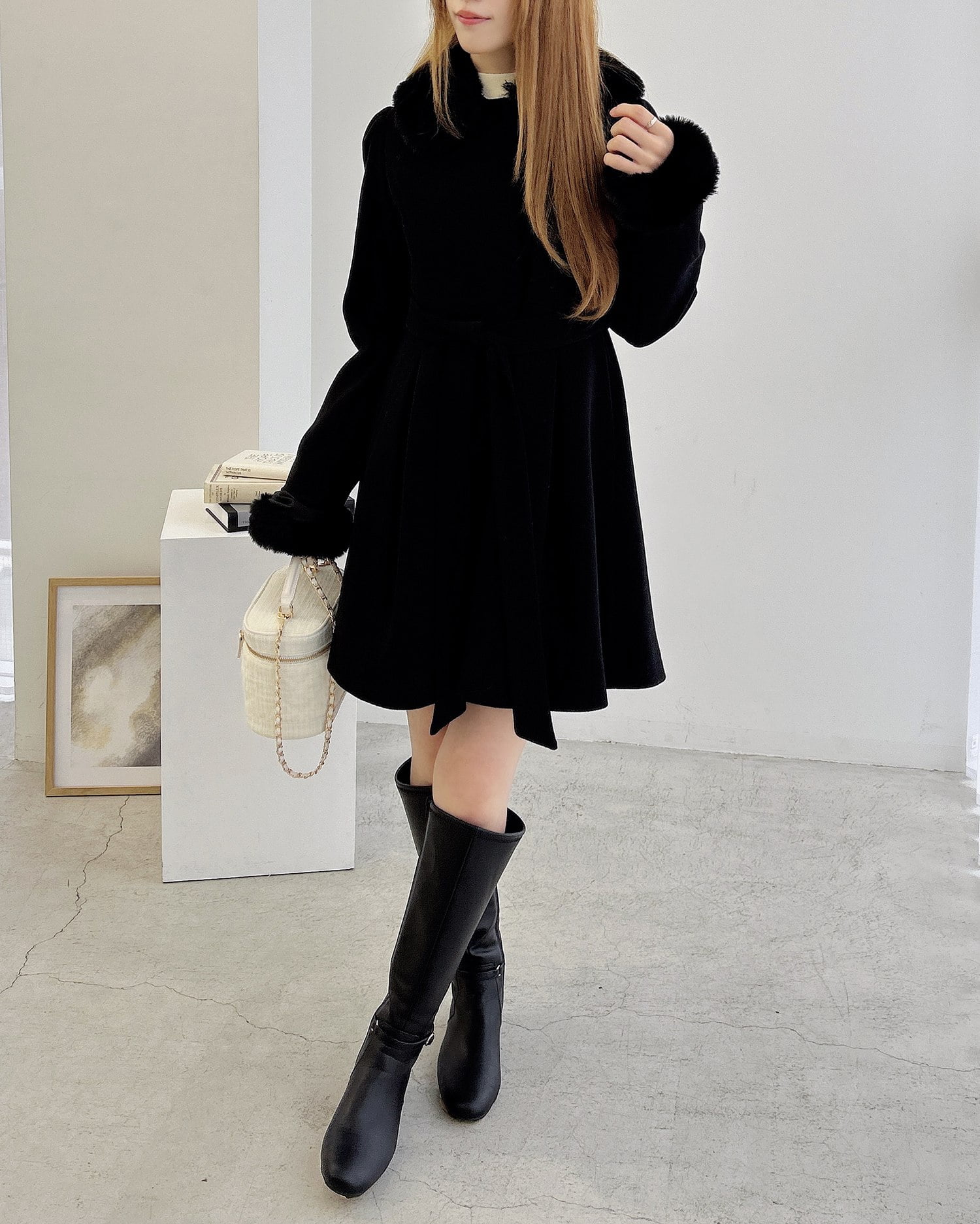 襟や袖口にあしらったエコファーがボリューミーなアクセントになっています。