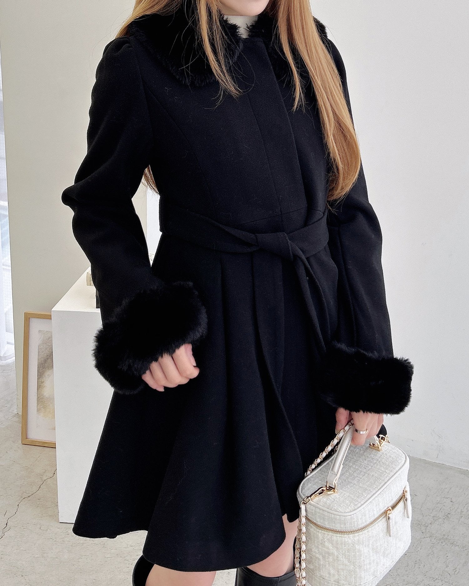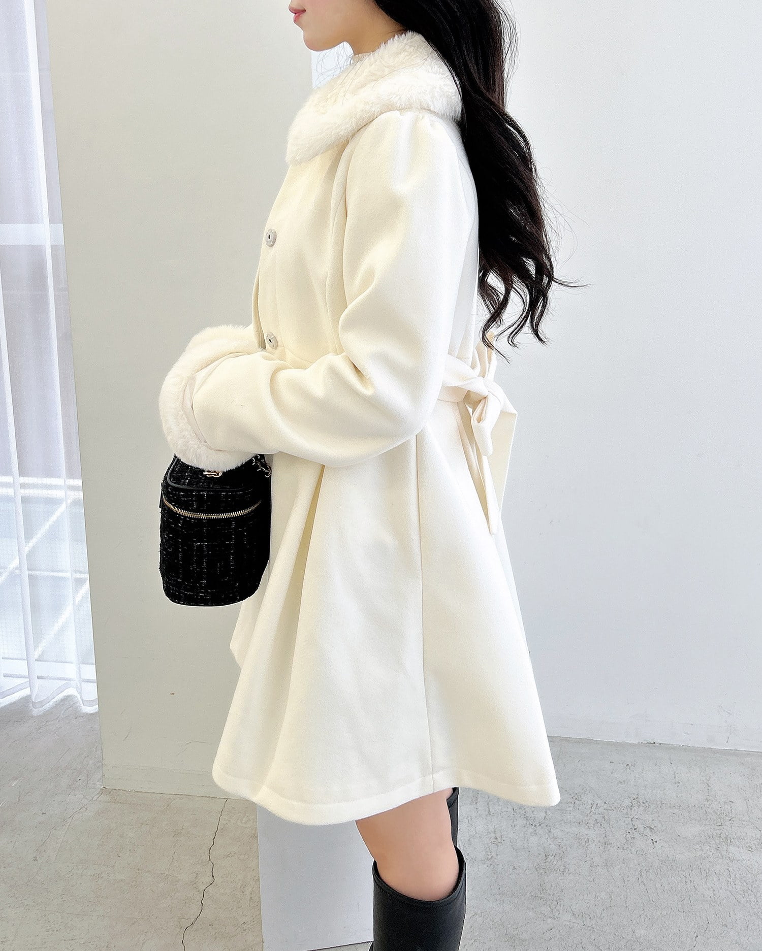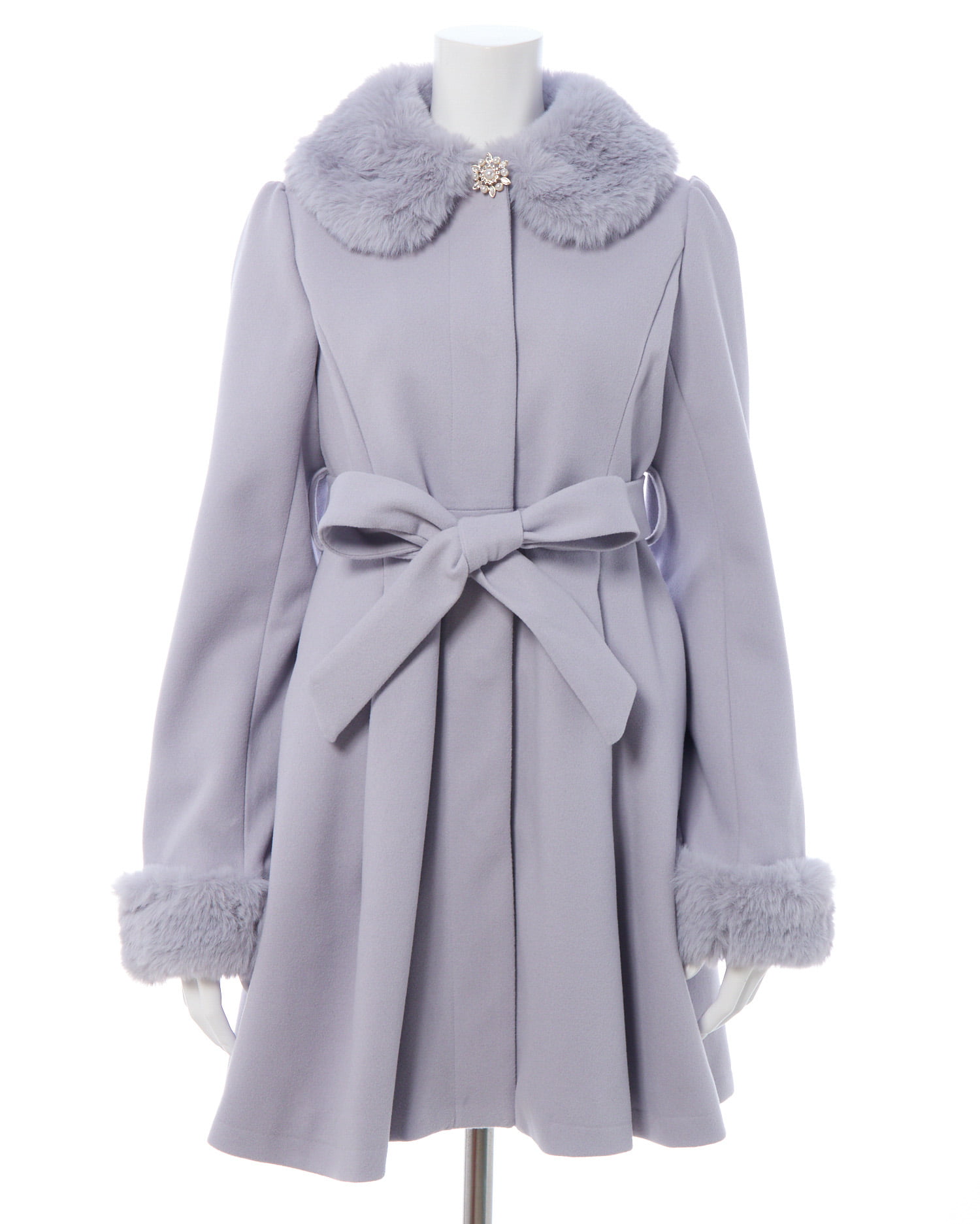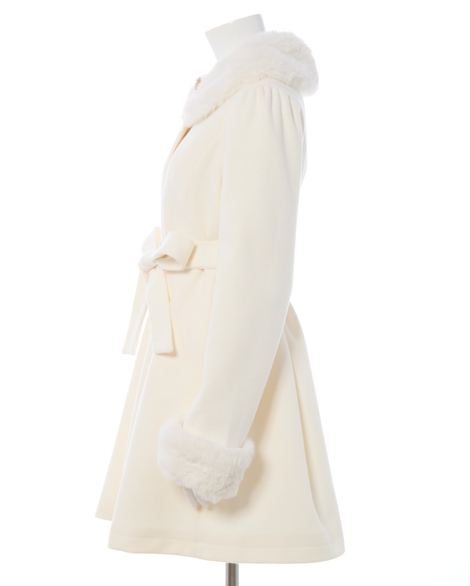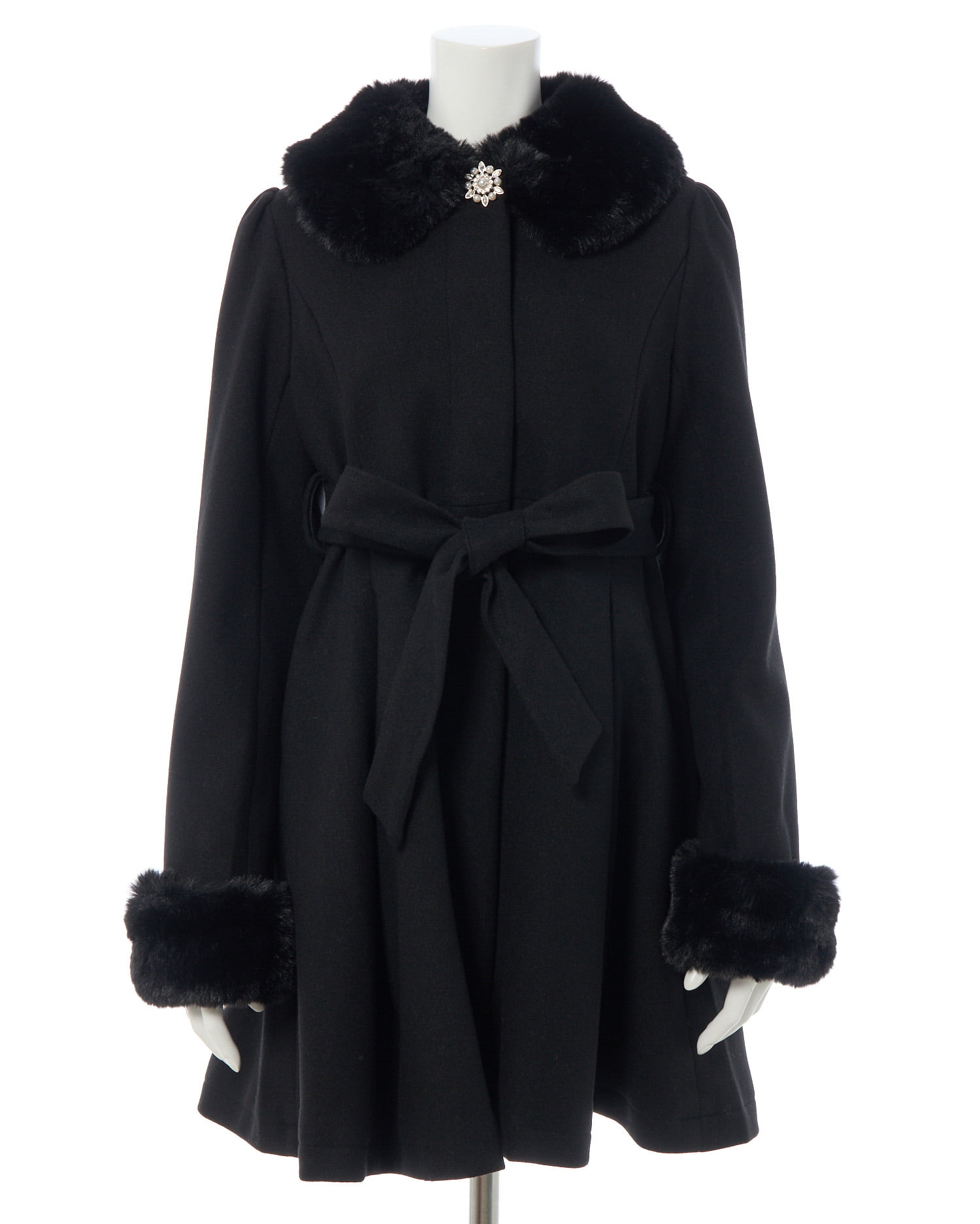 襟や袖口にあしらったエコファーがボリューミーなアクセントになっています。