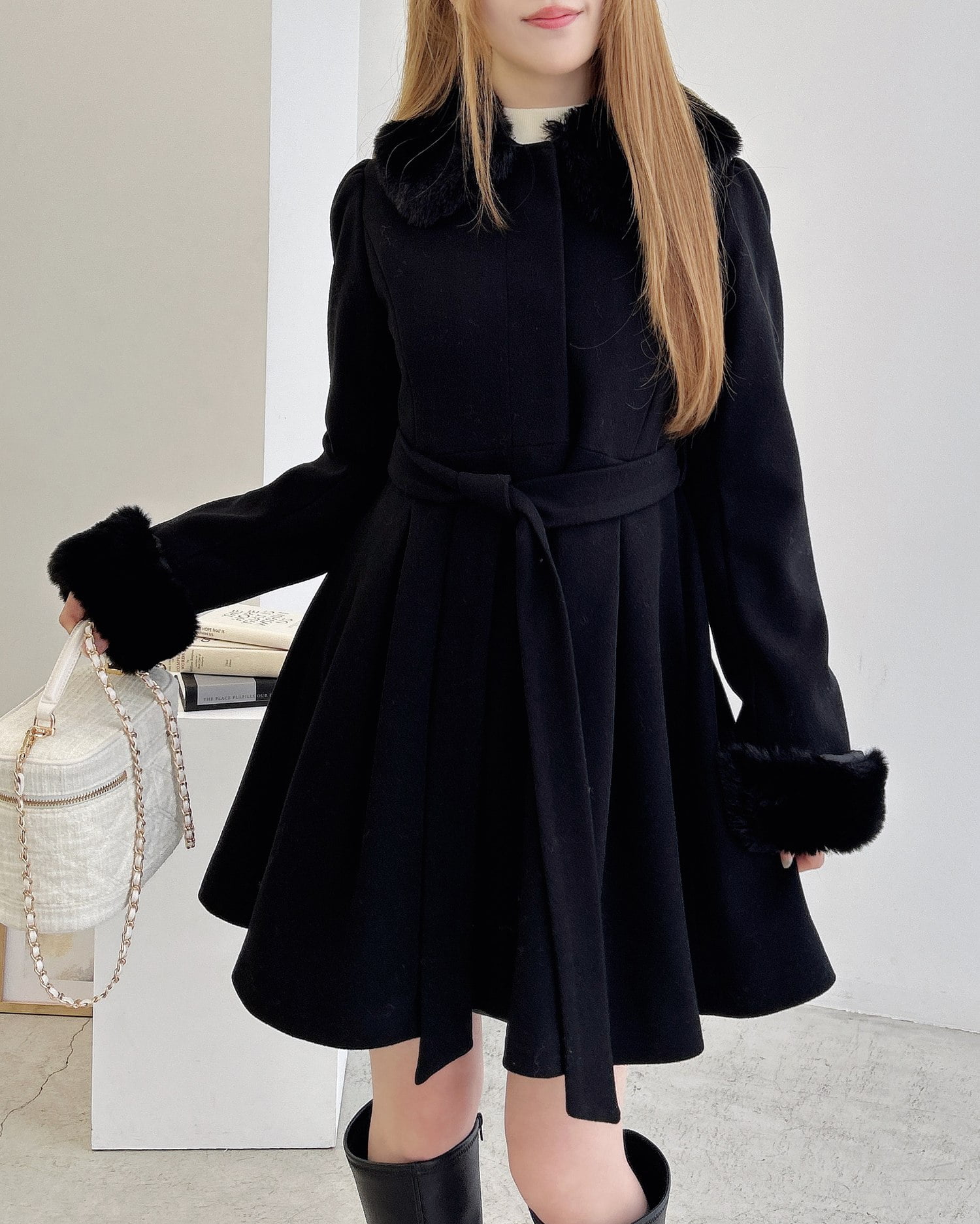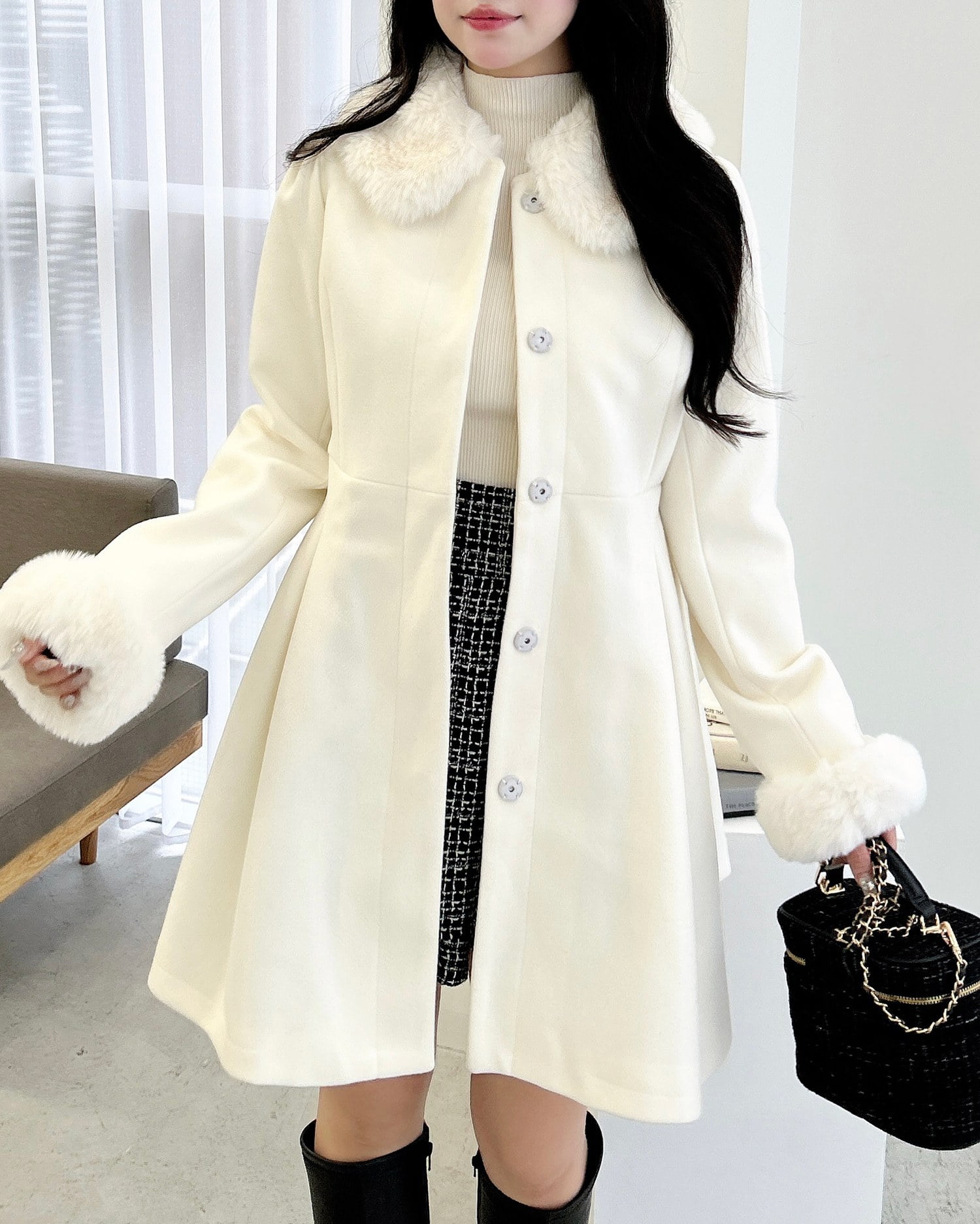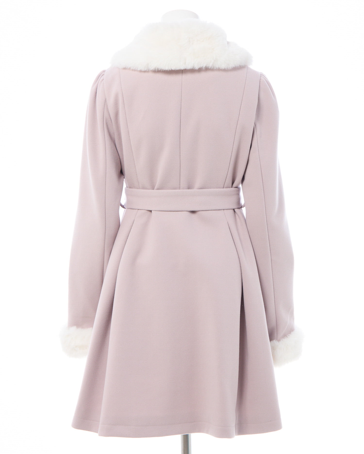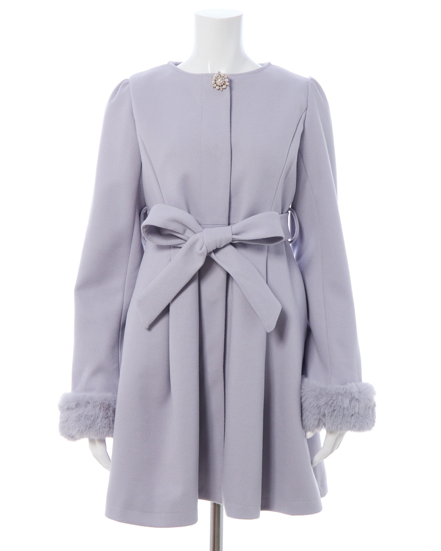 襟や袖口にあしらったエコファーがボリューミーなアクセントになっています。