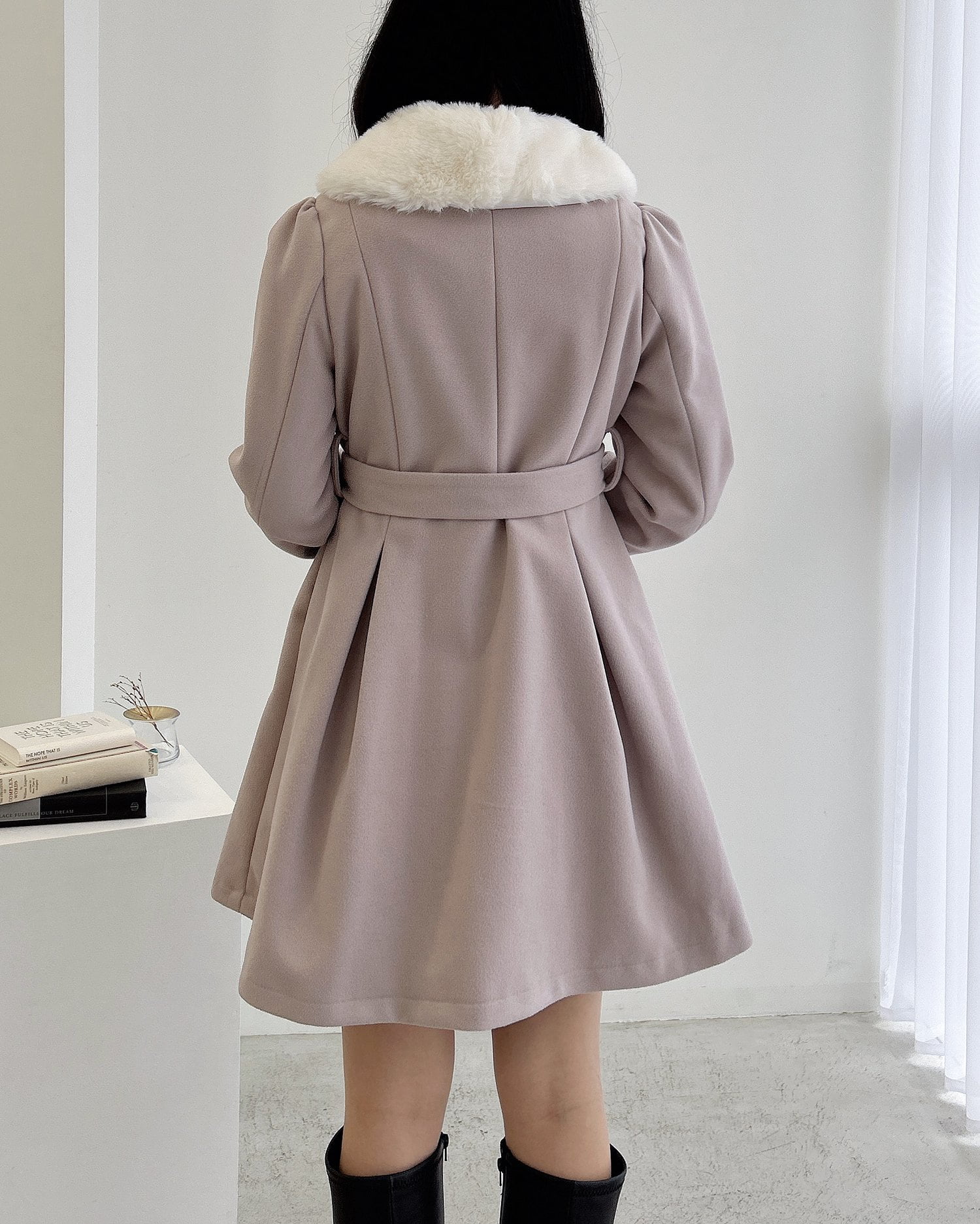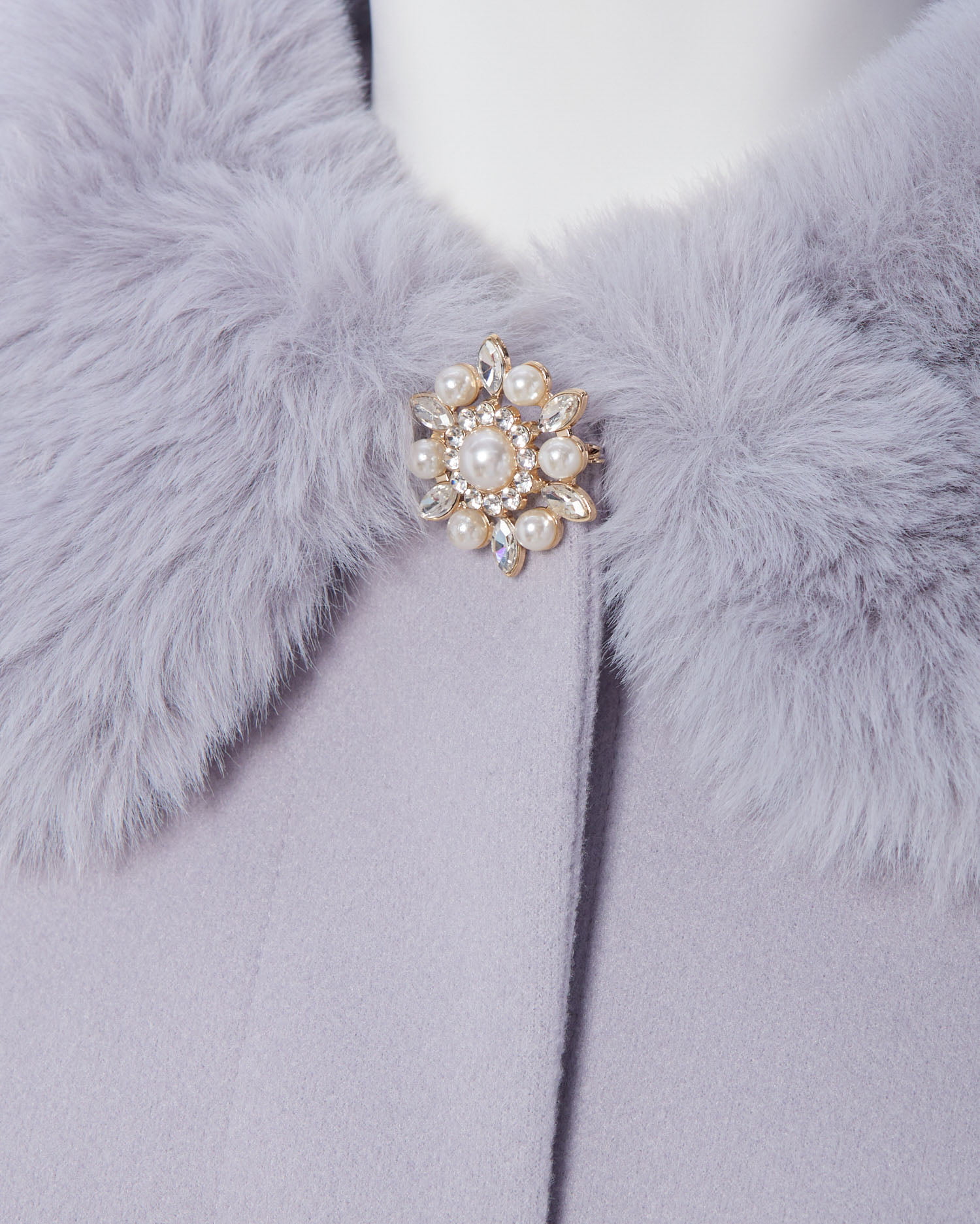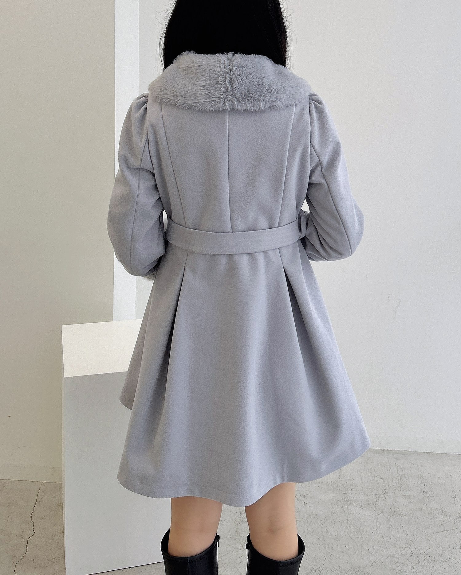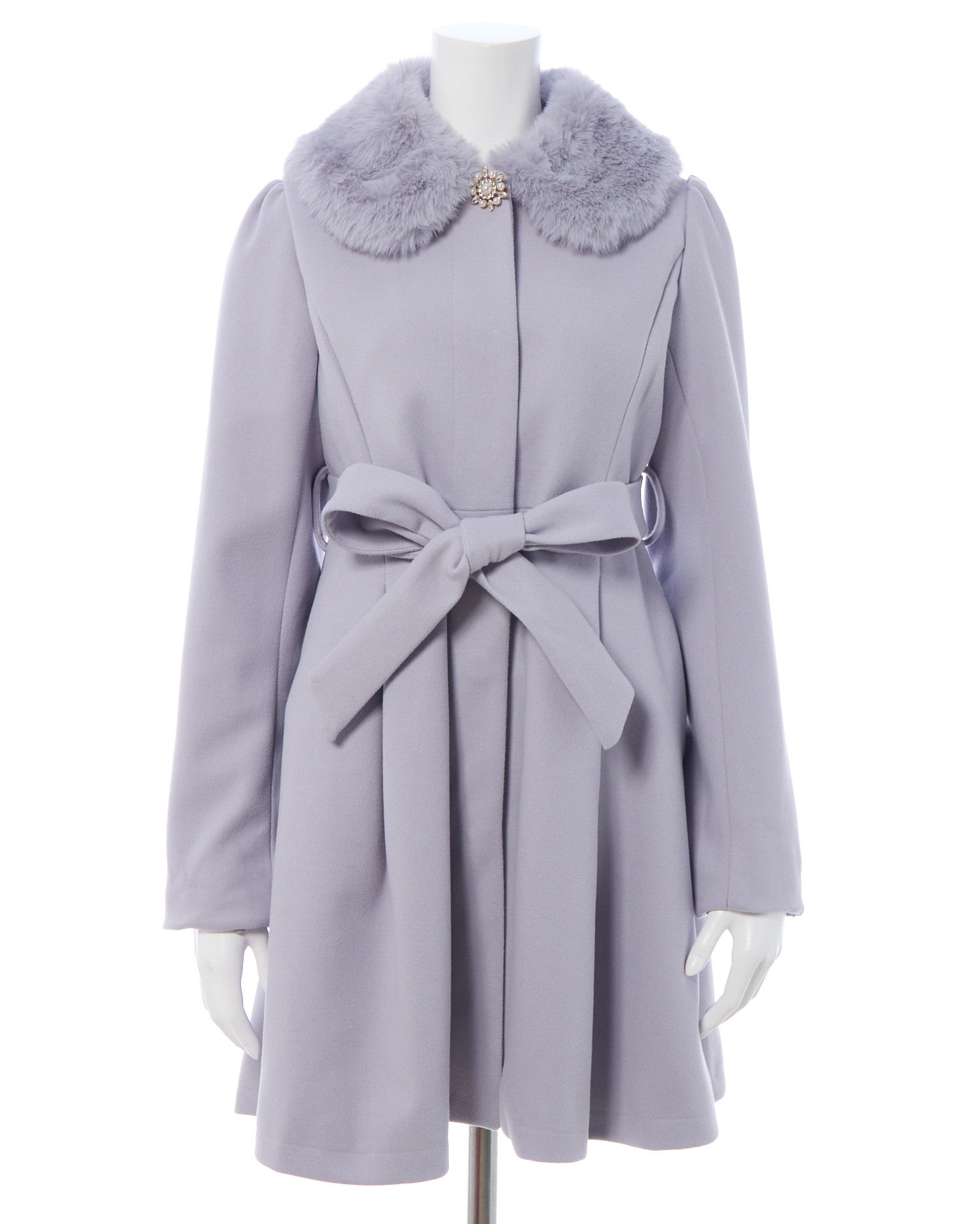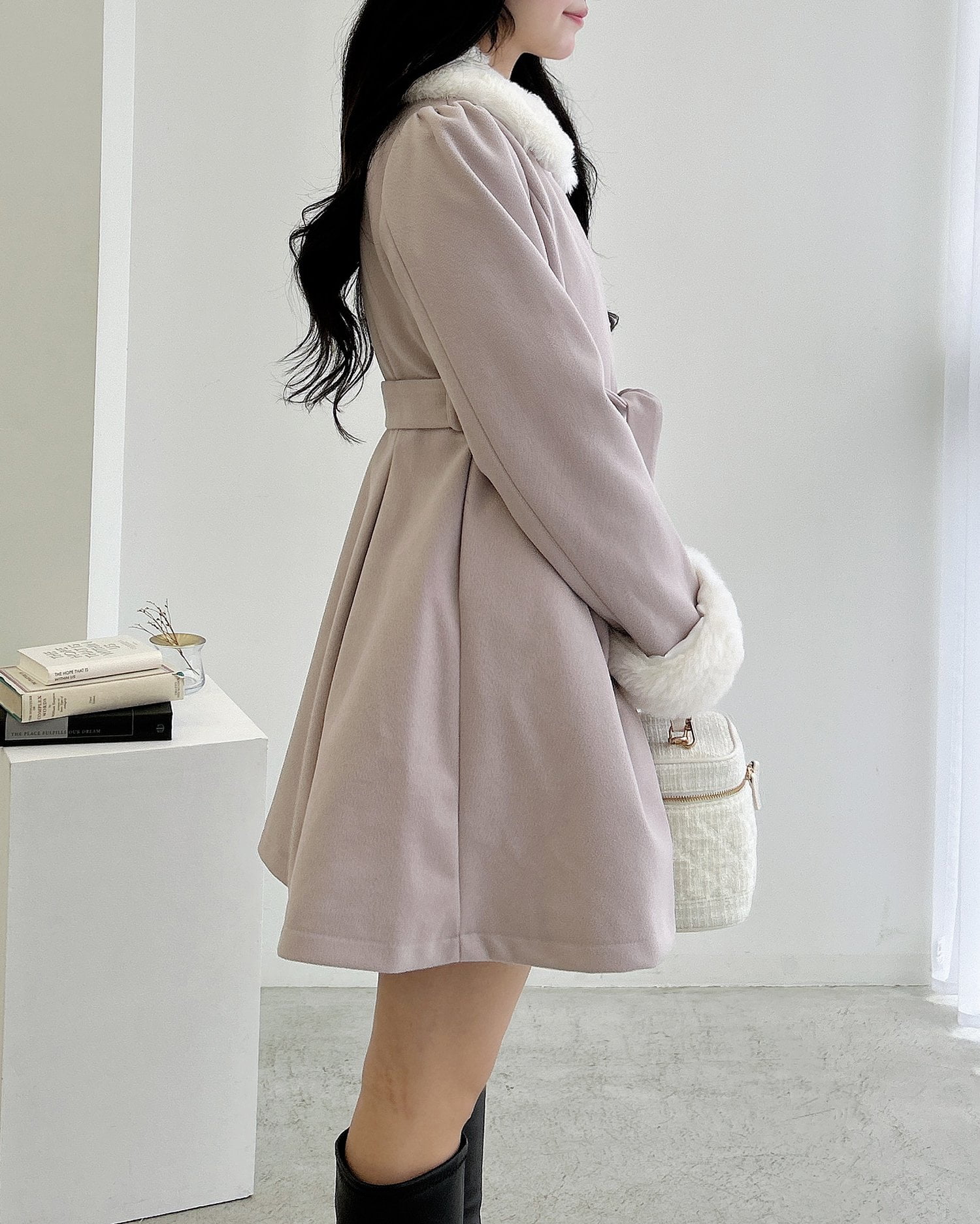 襟や袖口にあしらったエコファーがボリューミーなアクセントになっています。