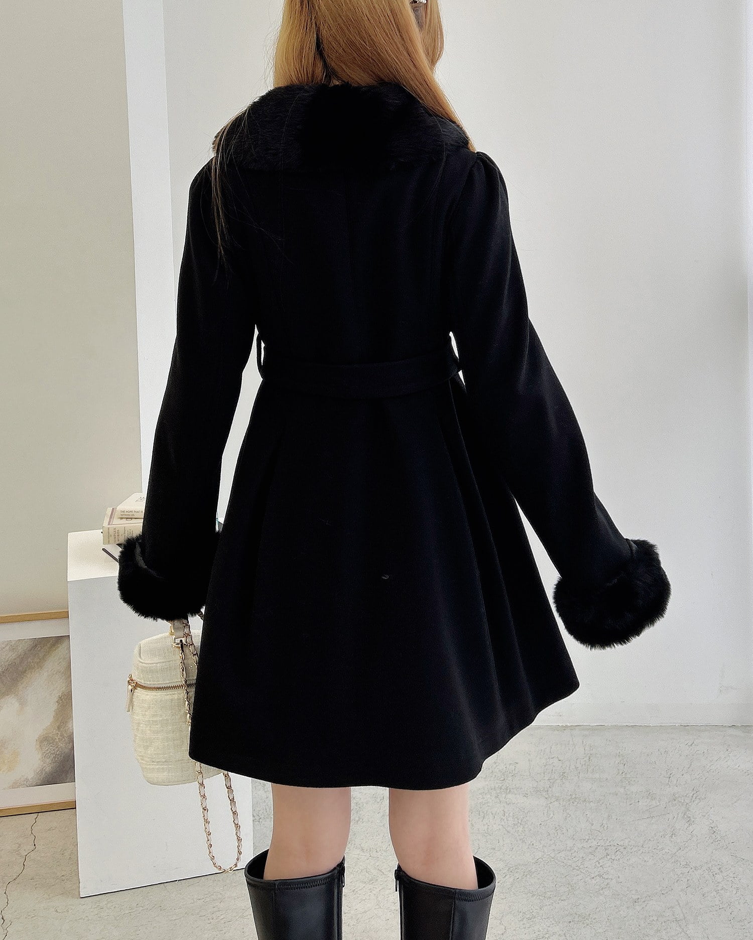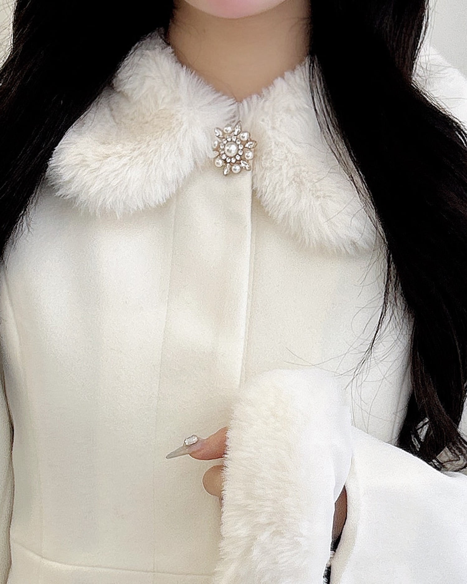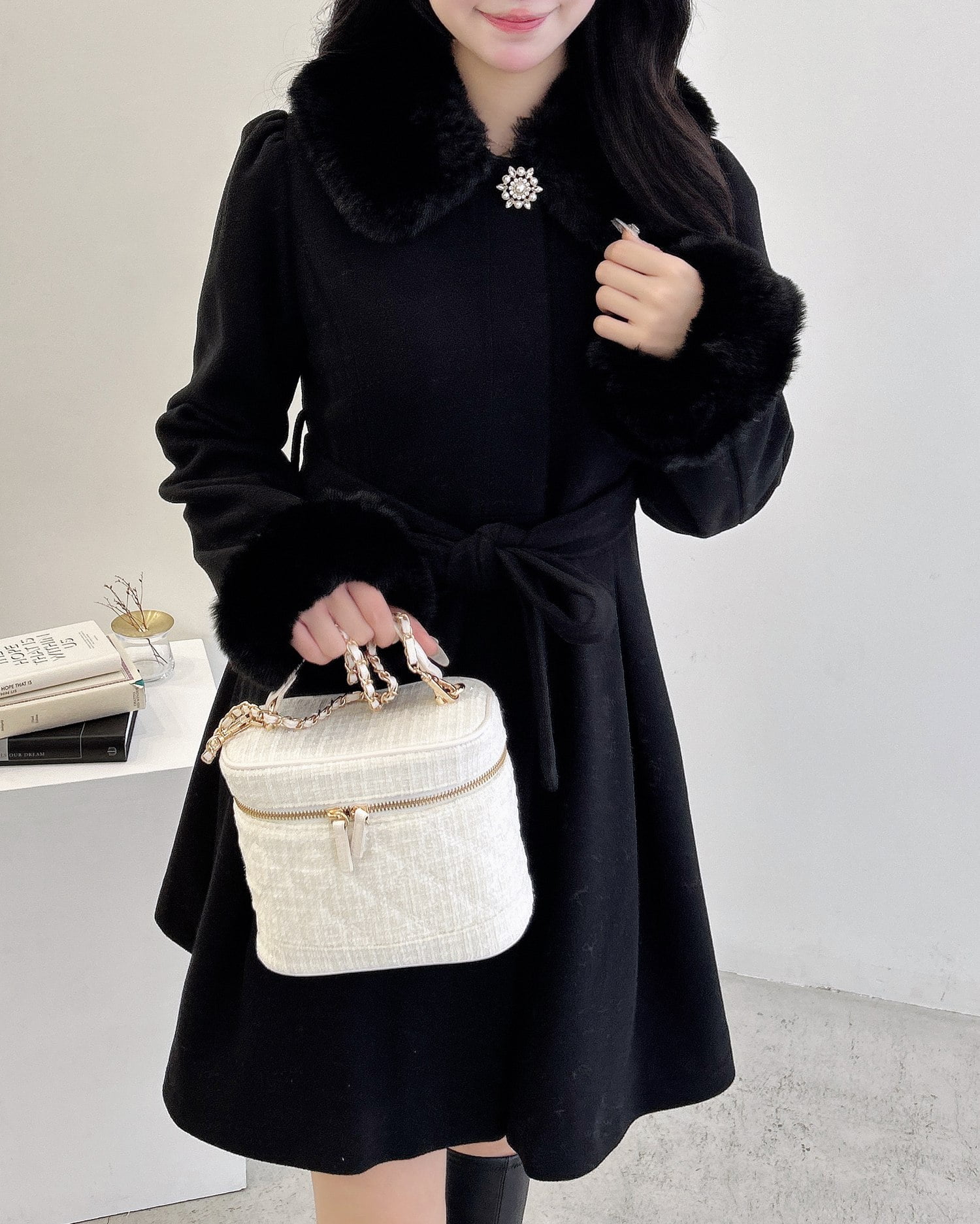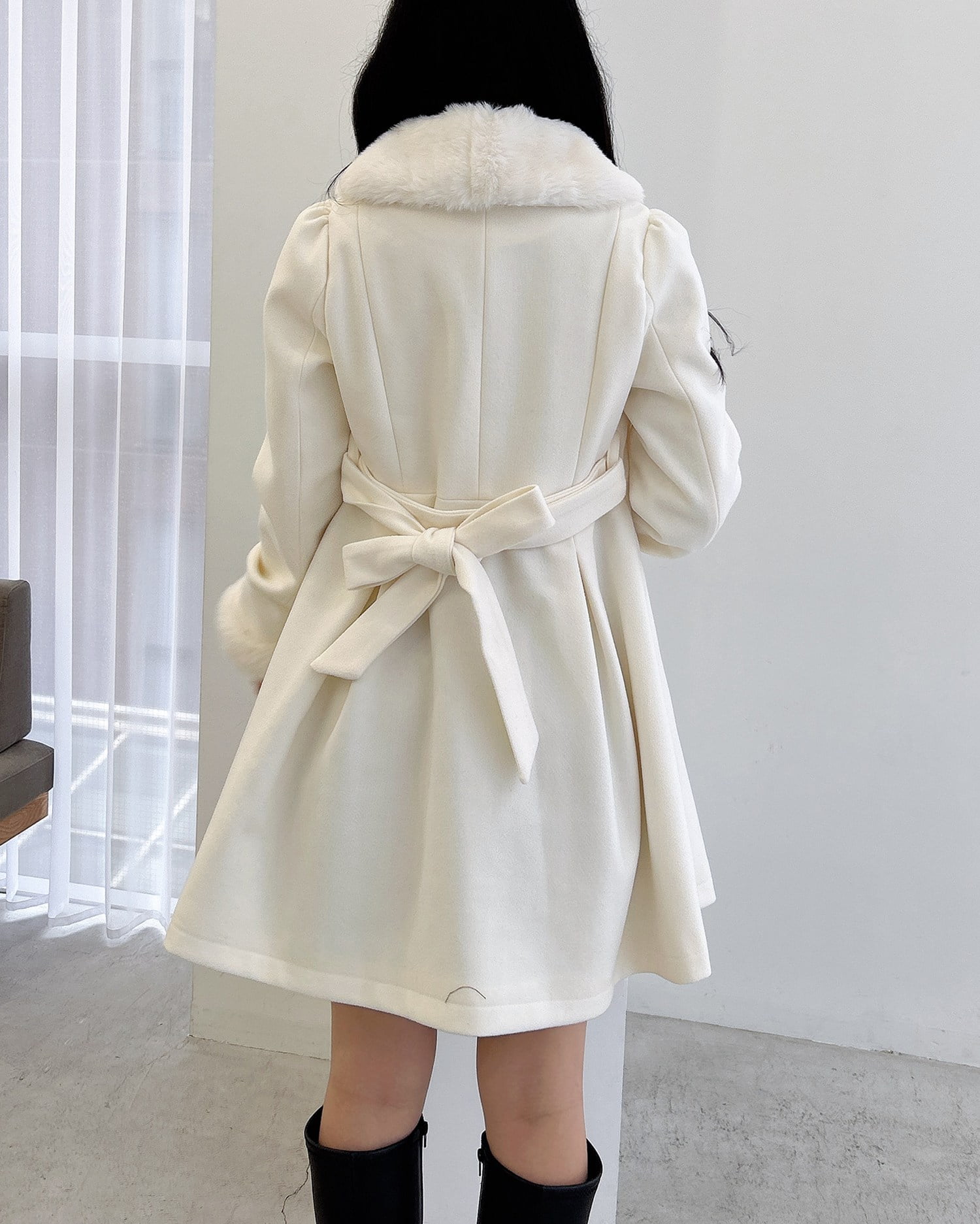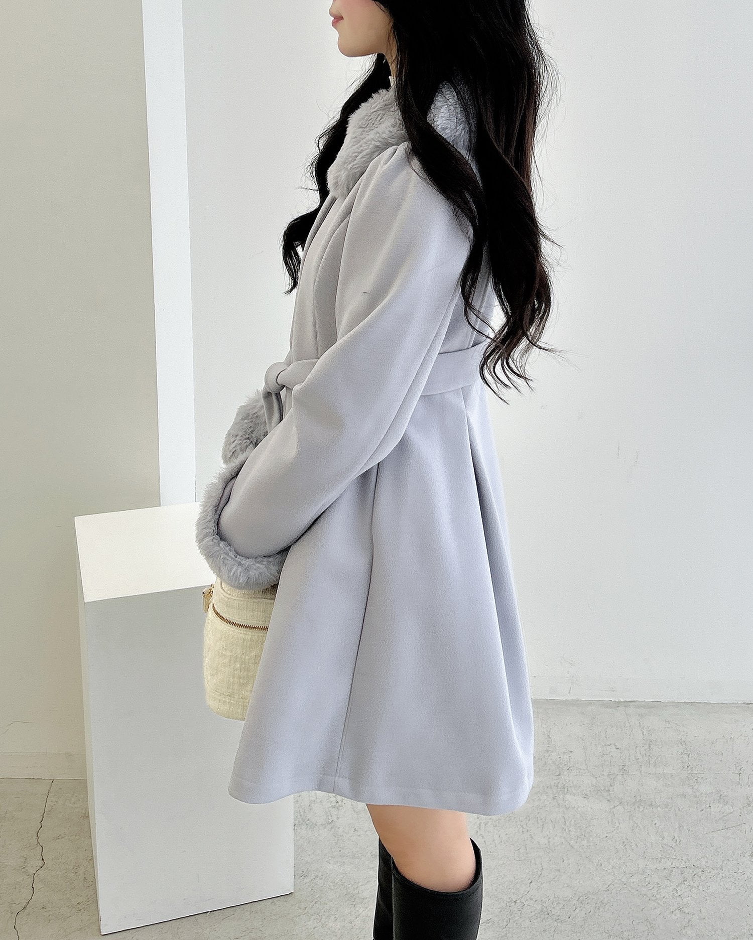 襟や袖口にあしらったエコファーがボリューミーなアクセントになっています。