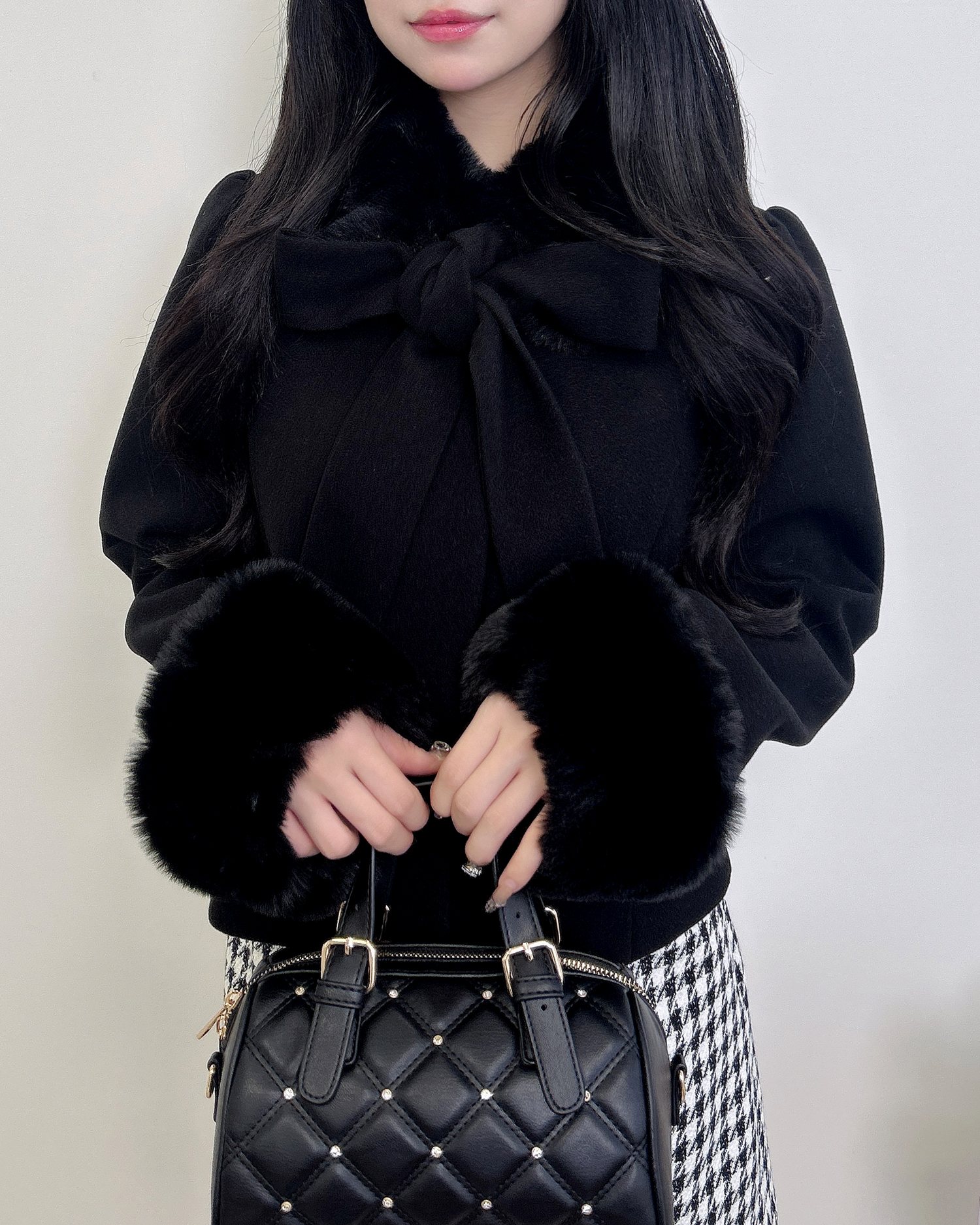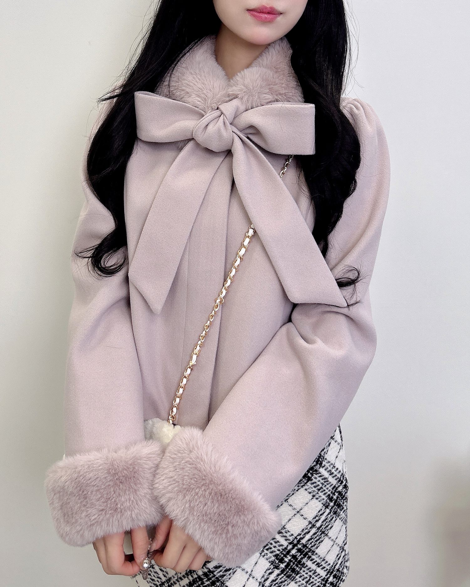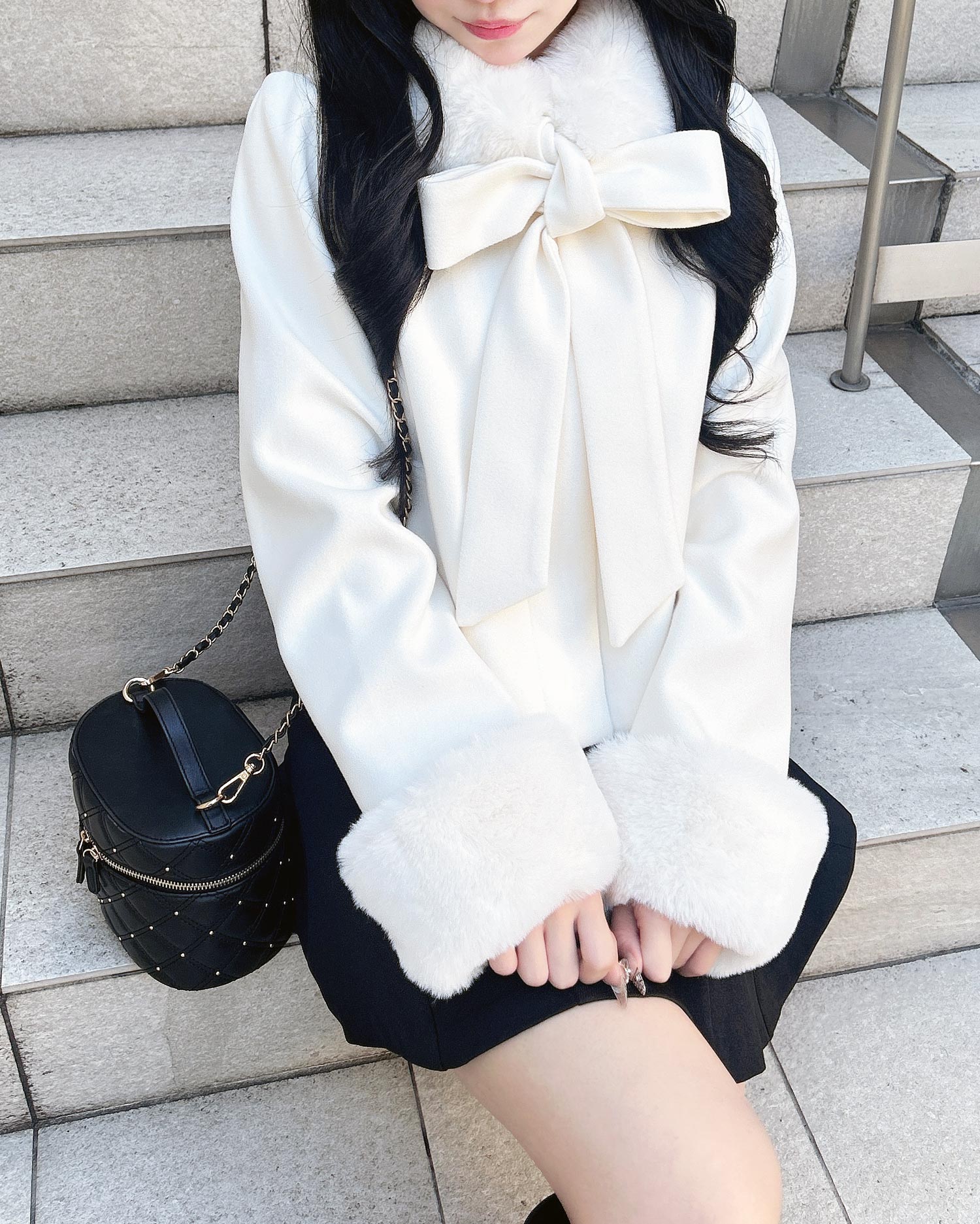 襟元のリボン、フェイクファー、袖のフェイクファーが取り外し可能です。