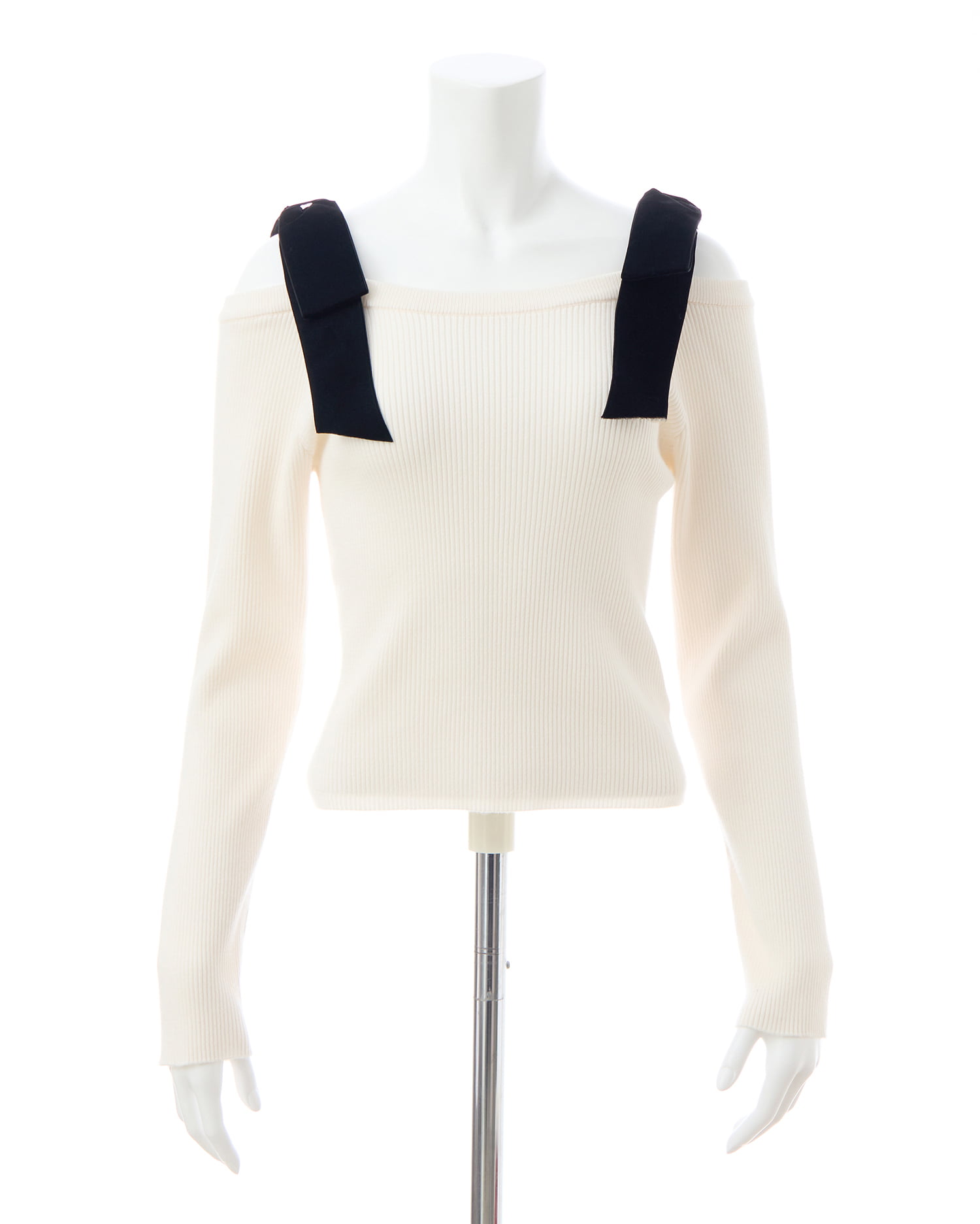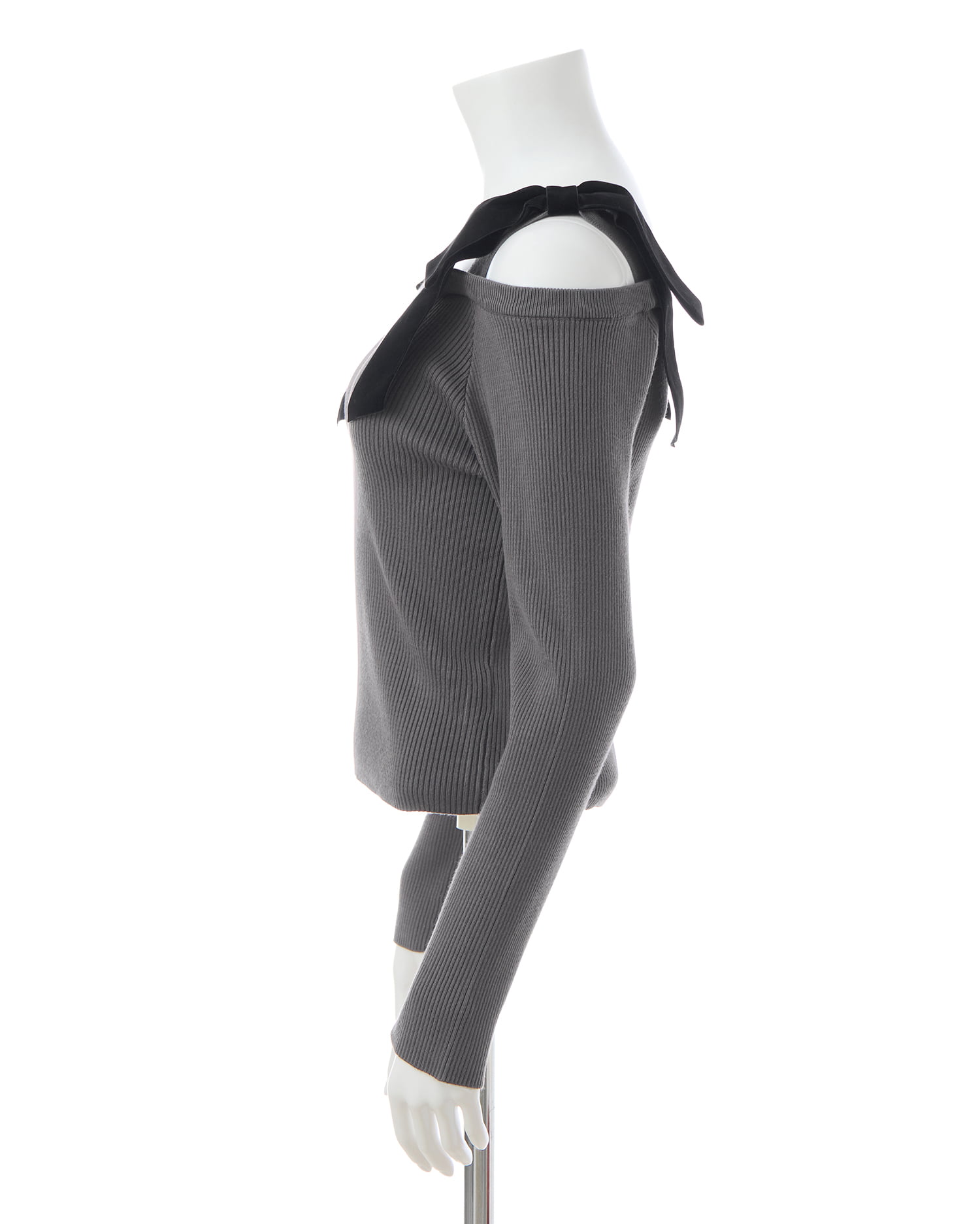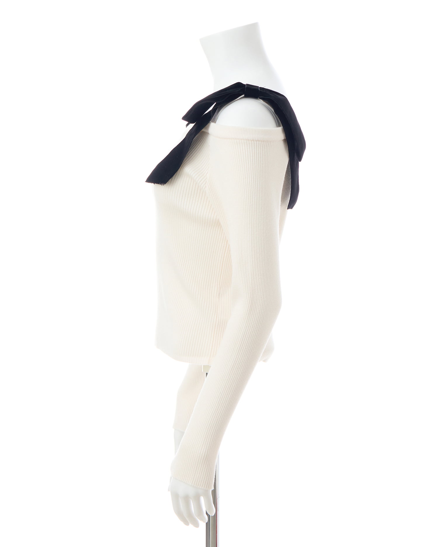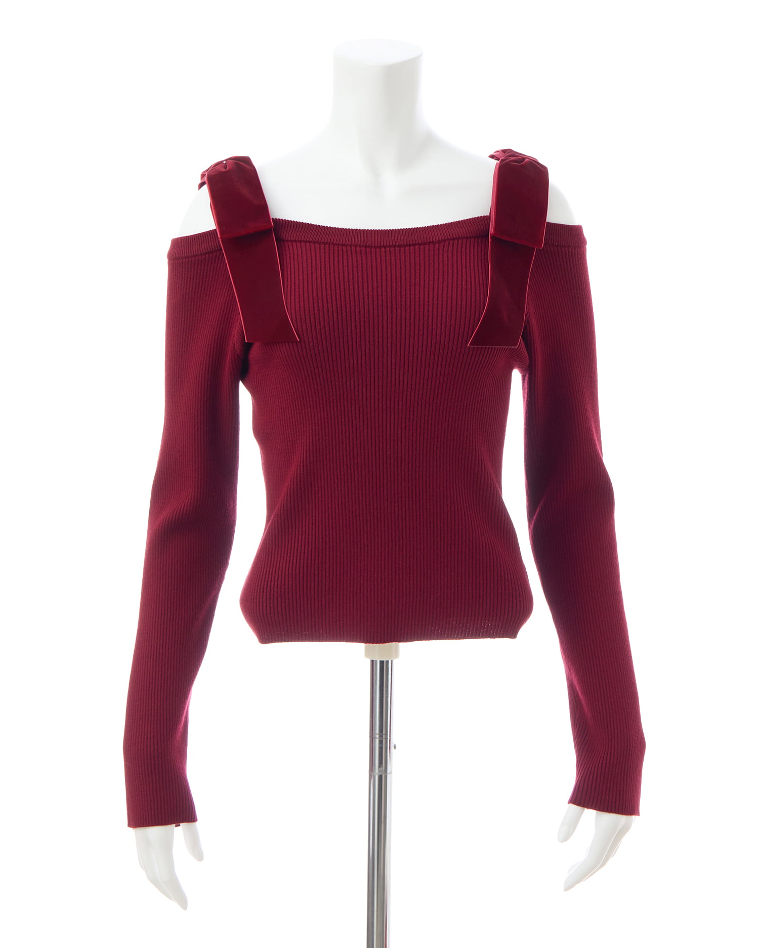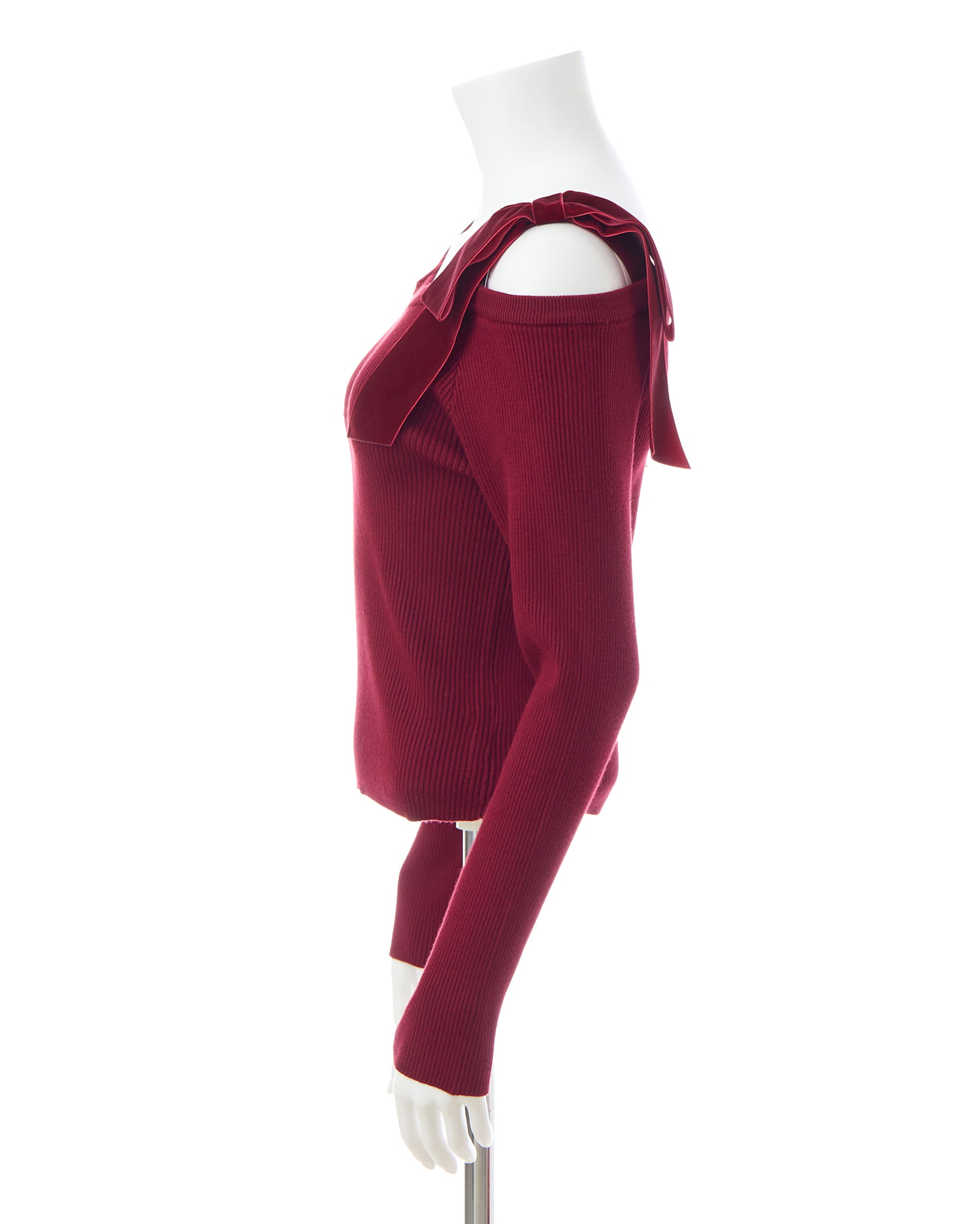1254-900135 【10/21までの限定価格】【WEB先行】肩ベロアリボンニット