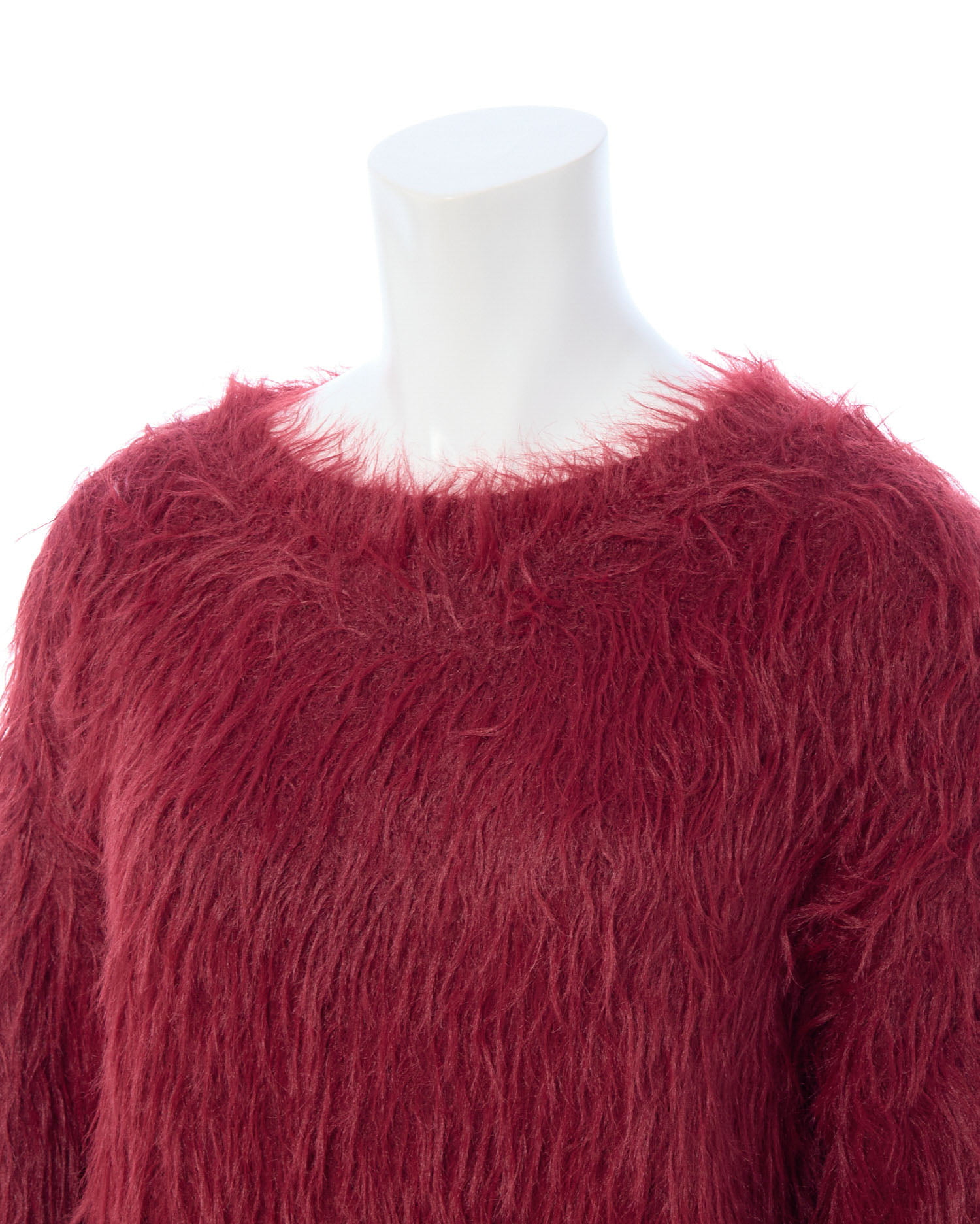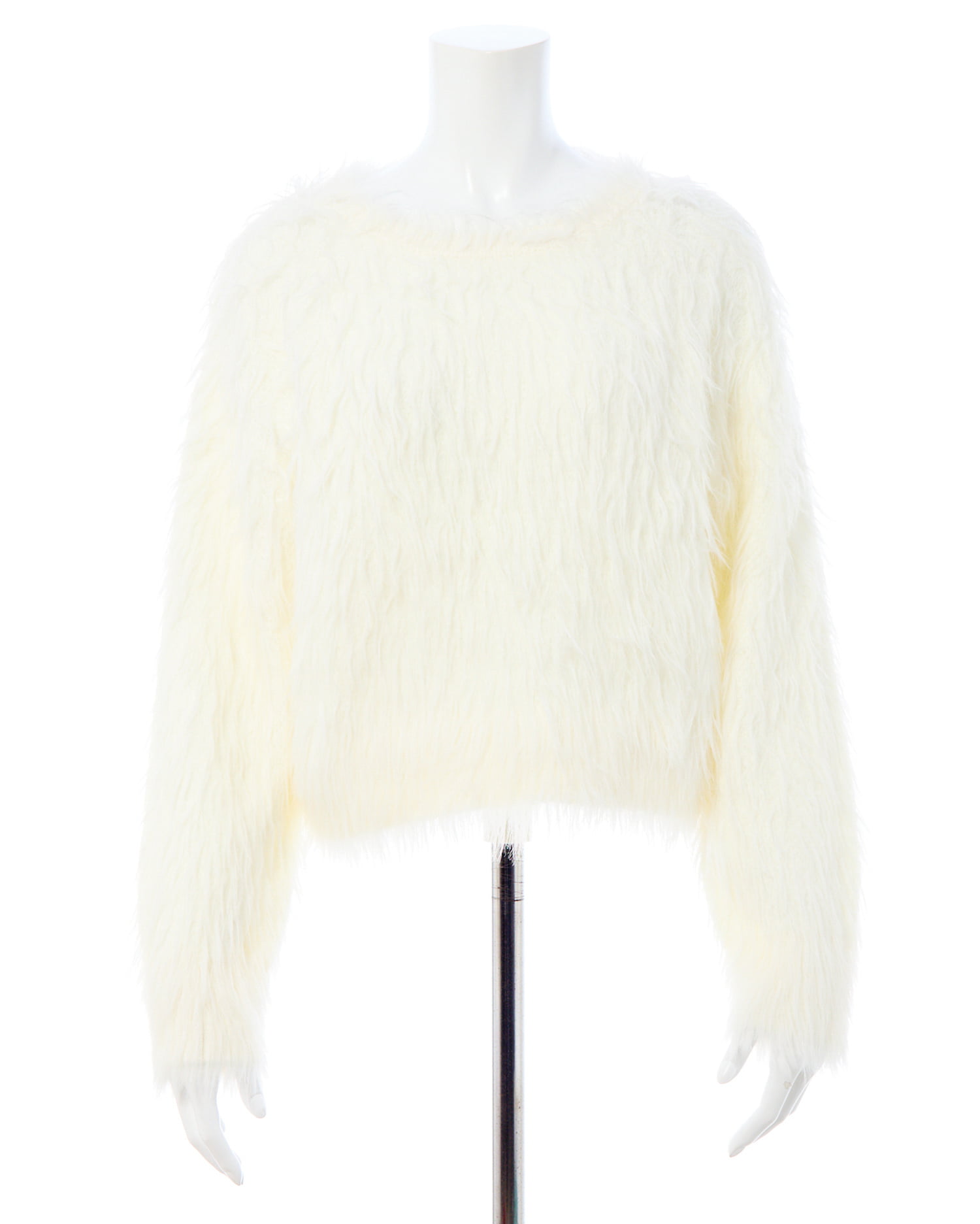 アニマルライクな毛足の長いふわふわのシャギーニット。