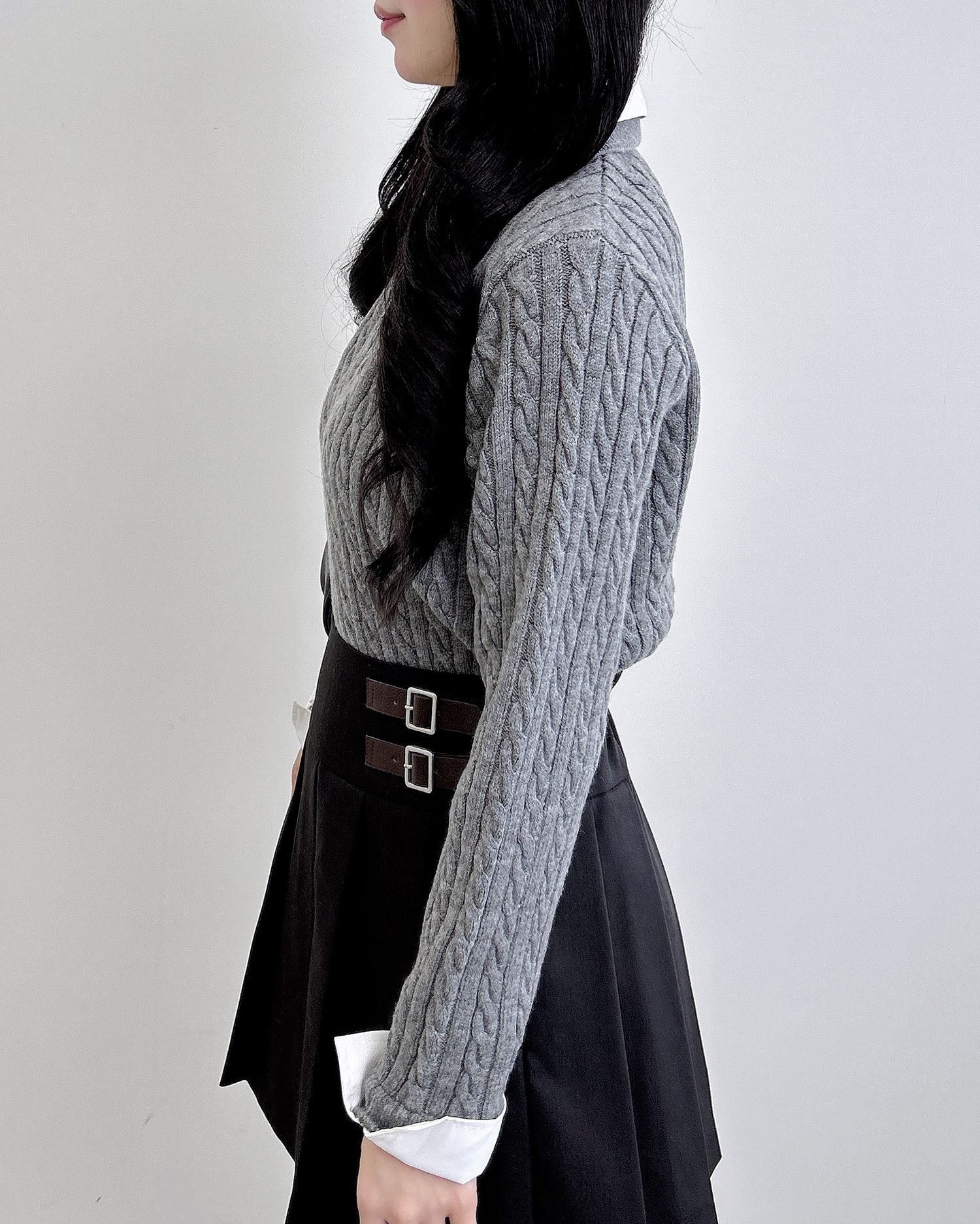 【一枚で決まる!レイヤード風ケーブルニットが登場!】
