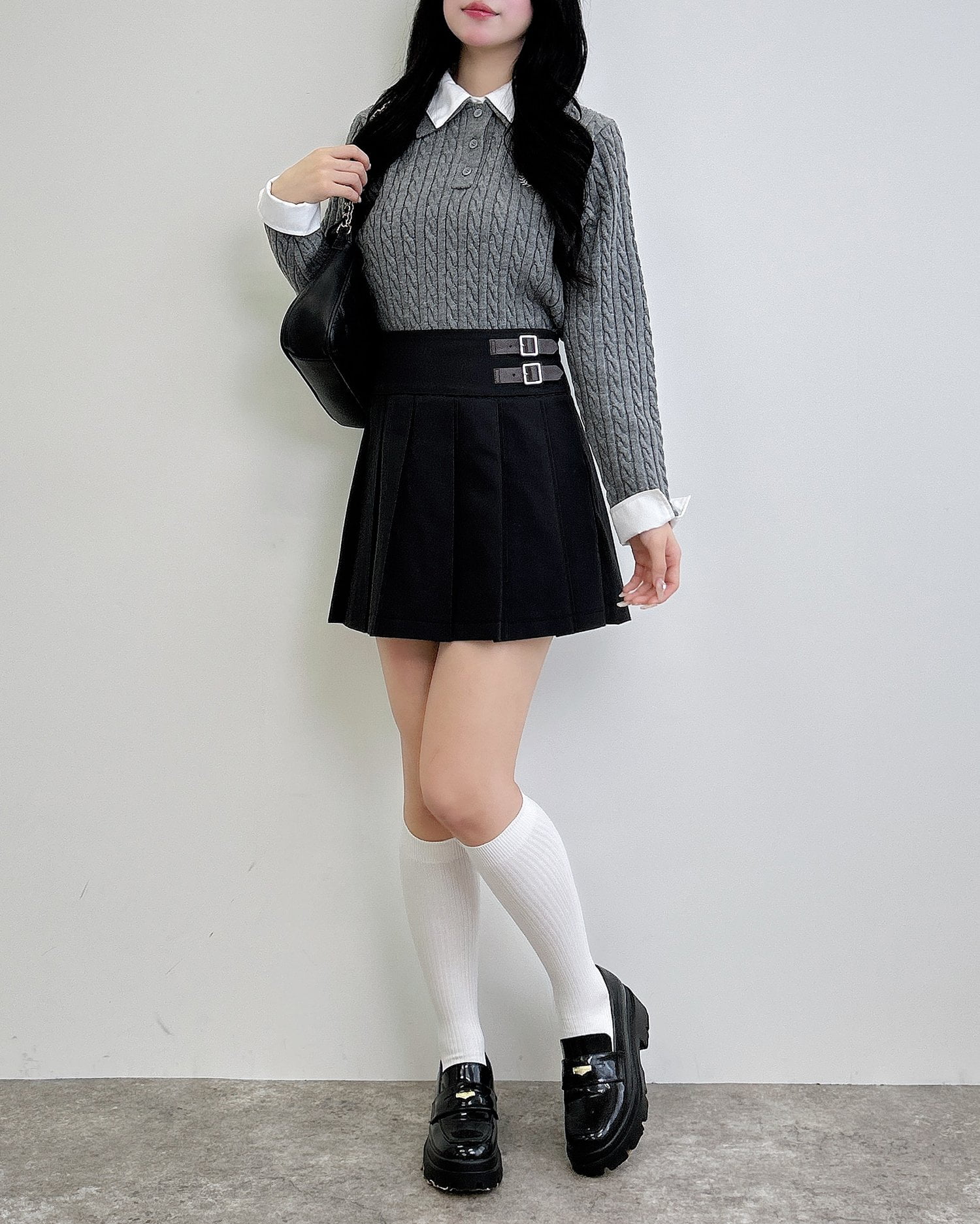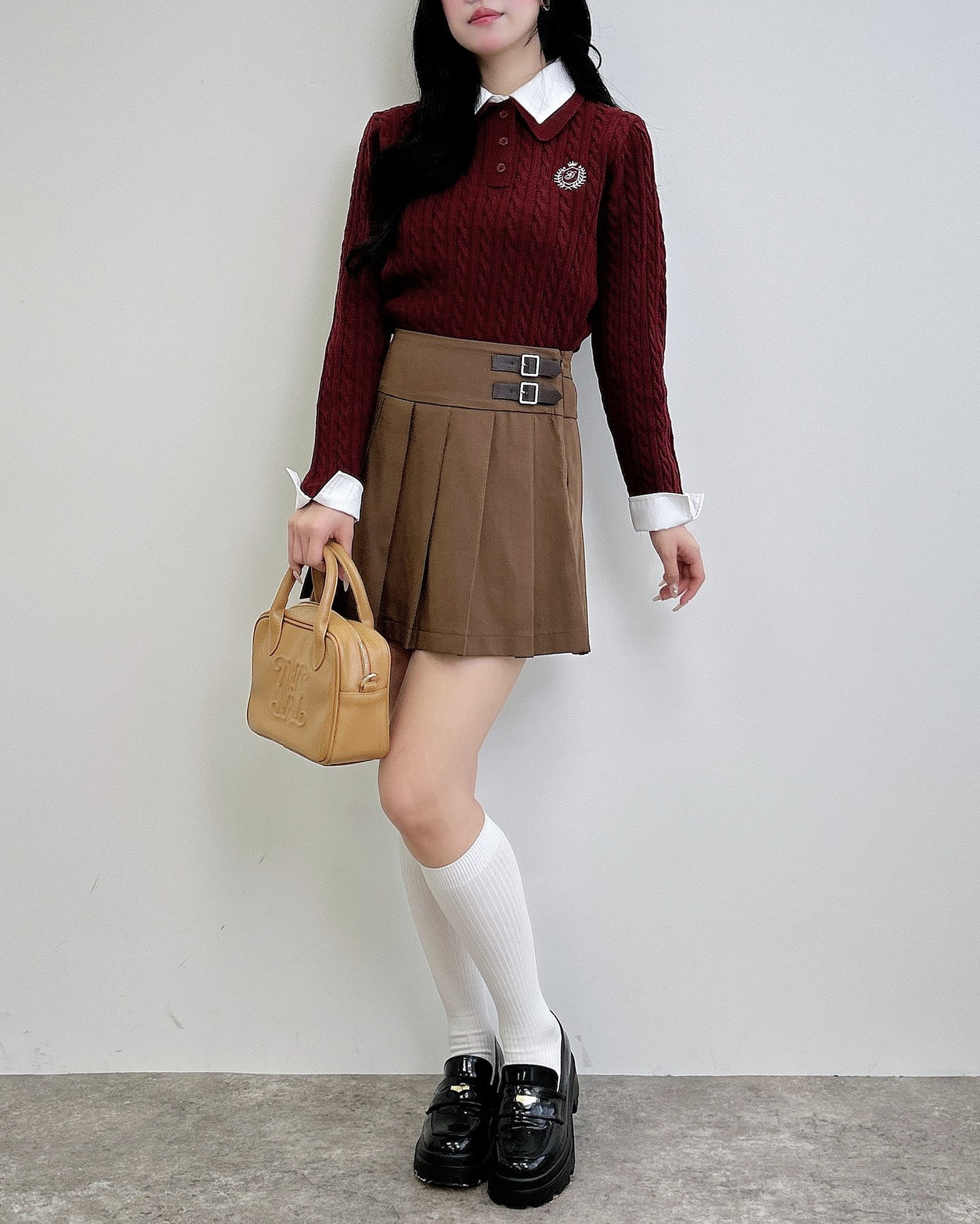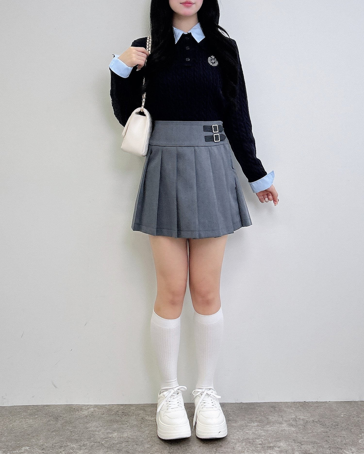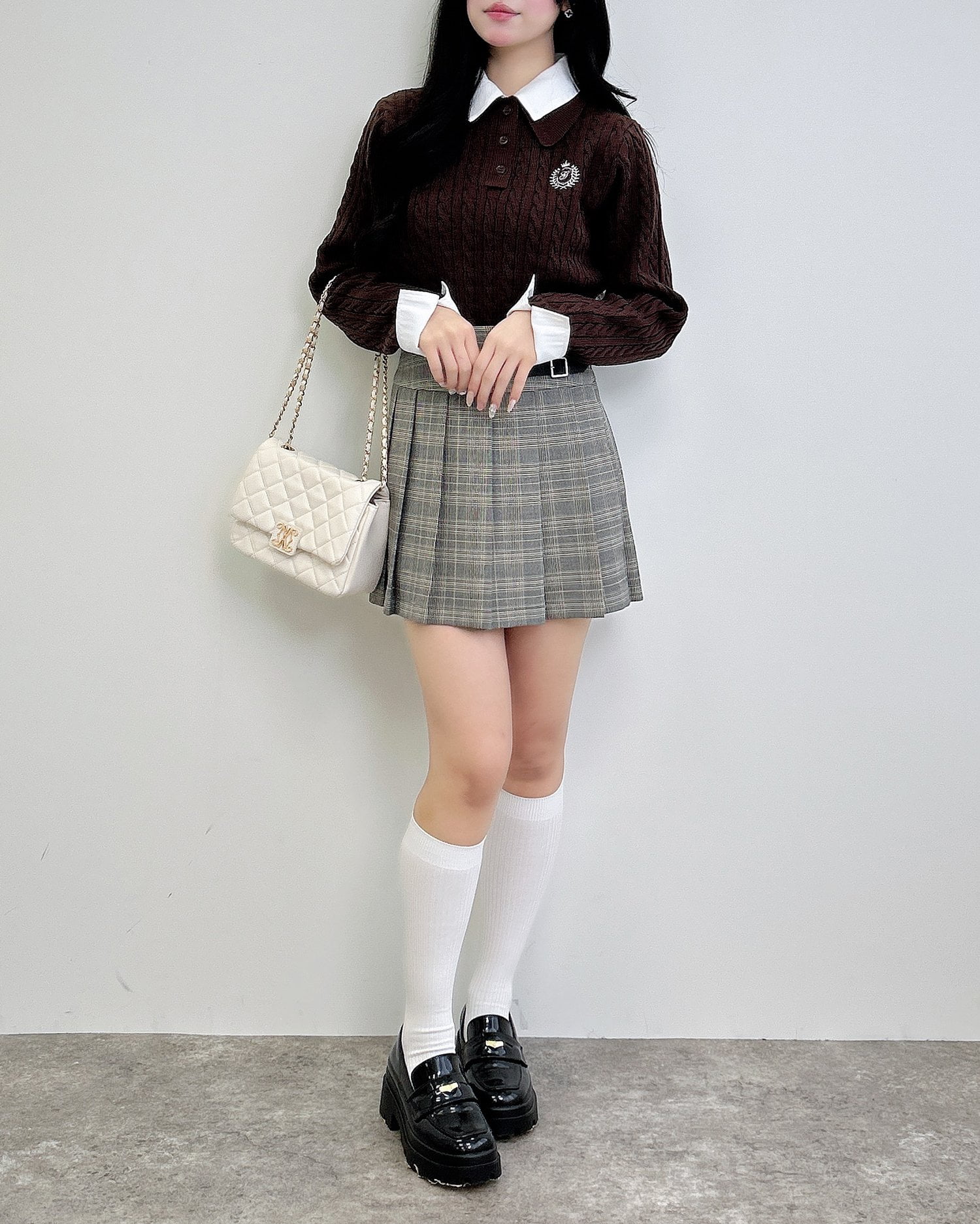 秋冬定番のミニスカート×ブーツやローファーとの相性抜群です。