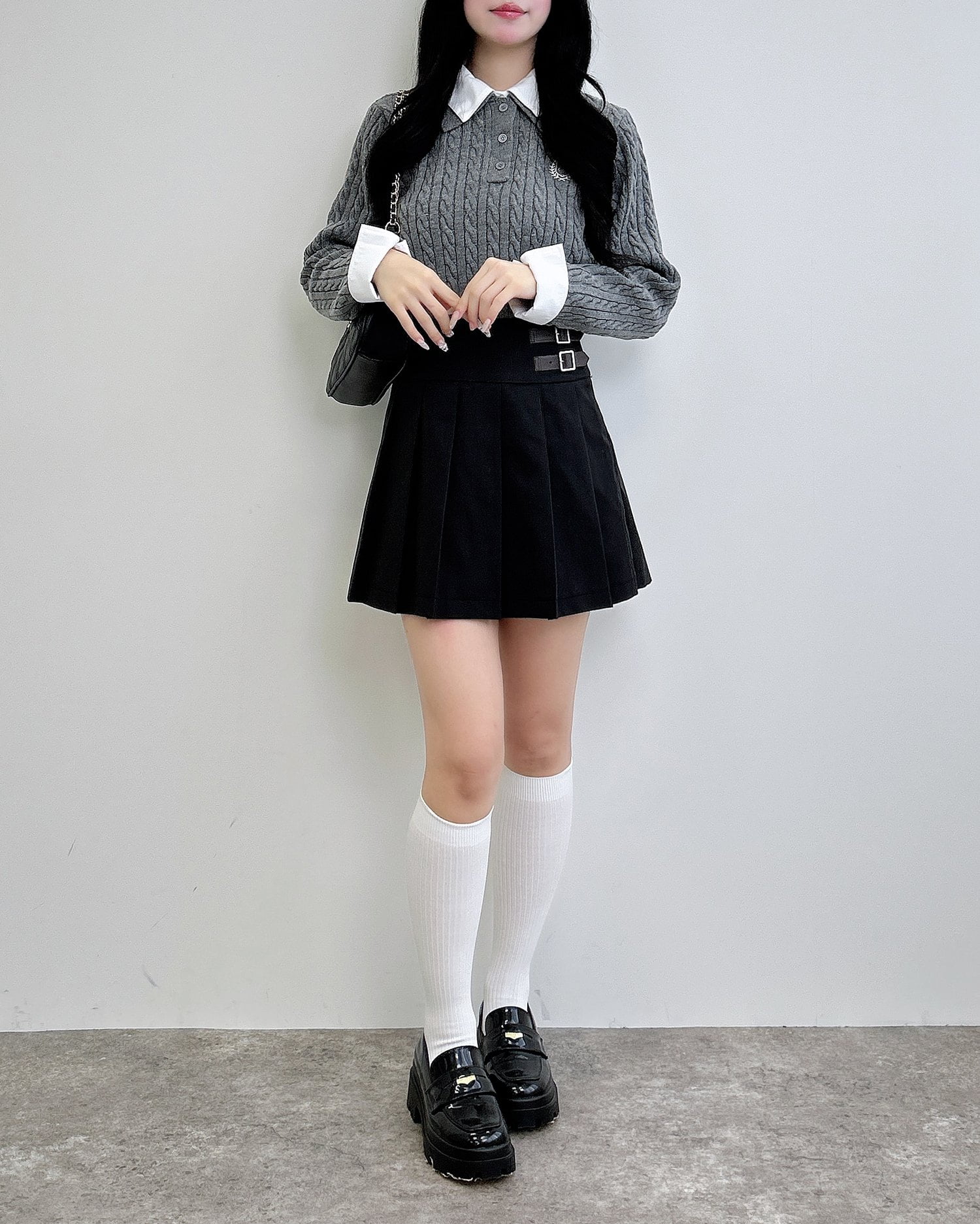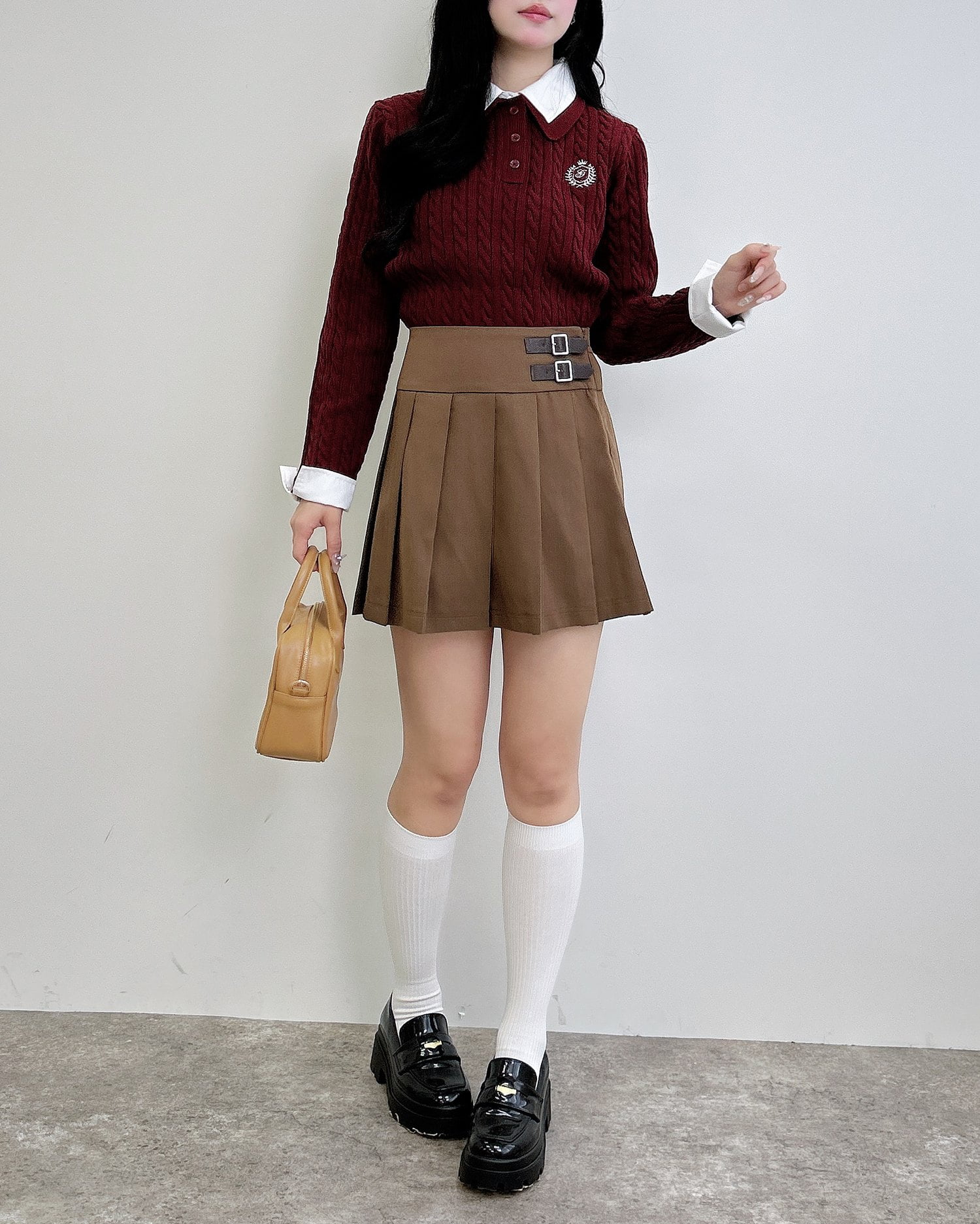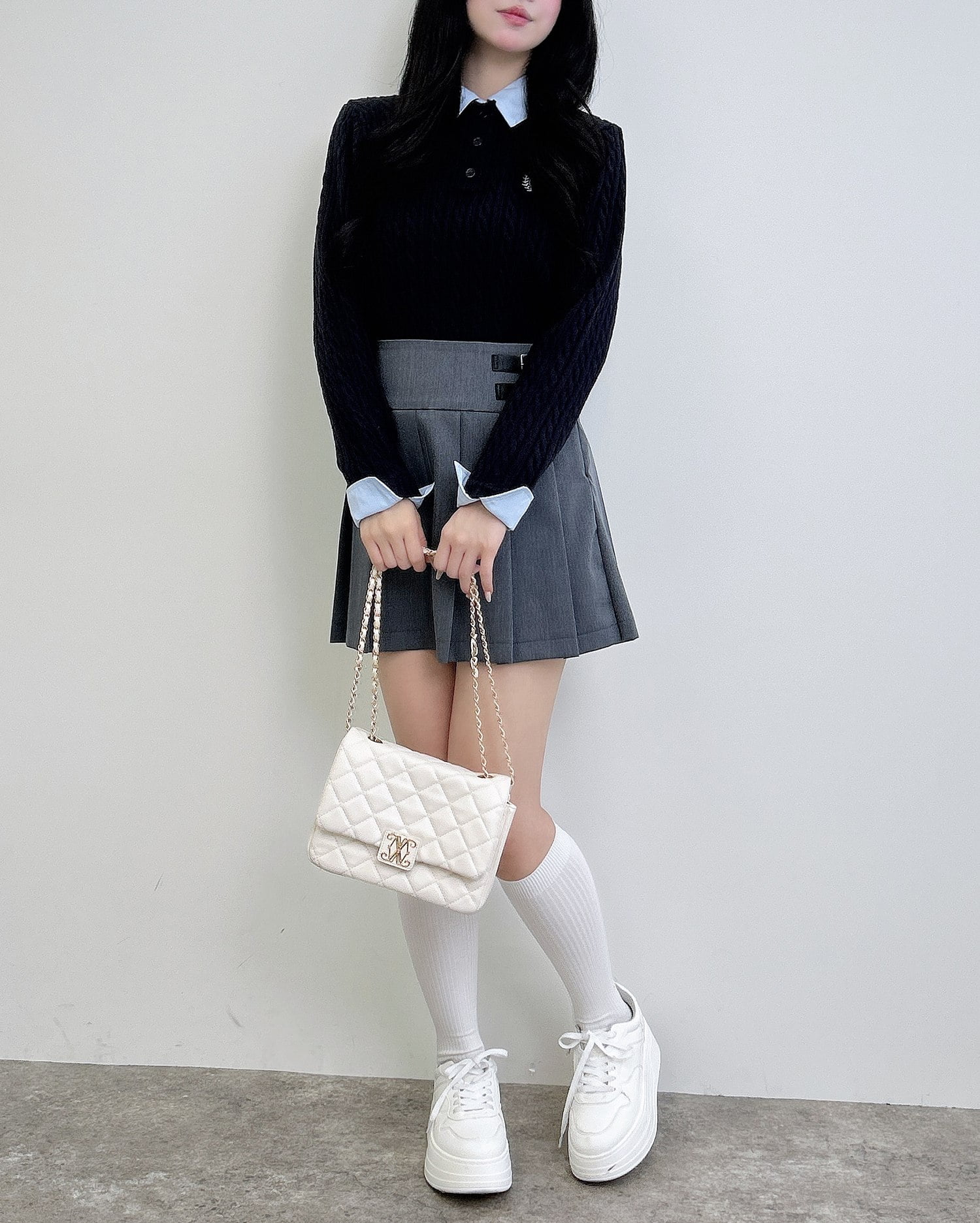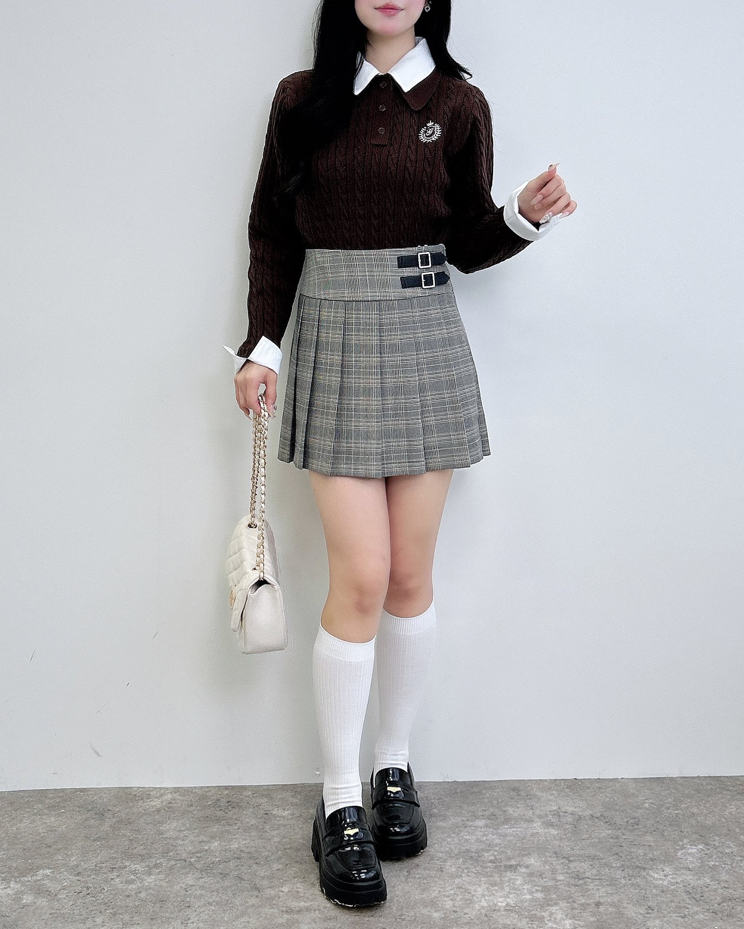 秋冬定番のミニスカート×ブーツやローファーとの相性抜群です。