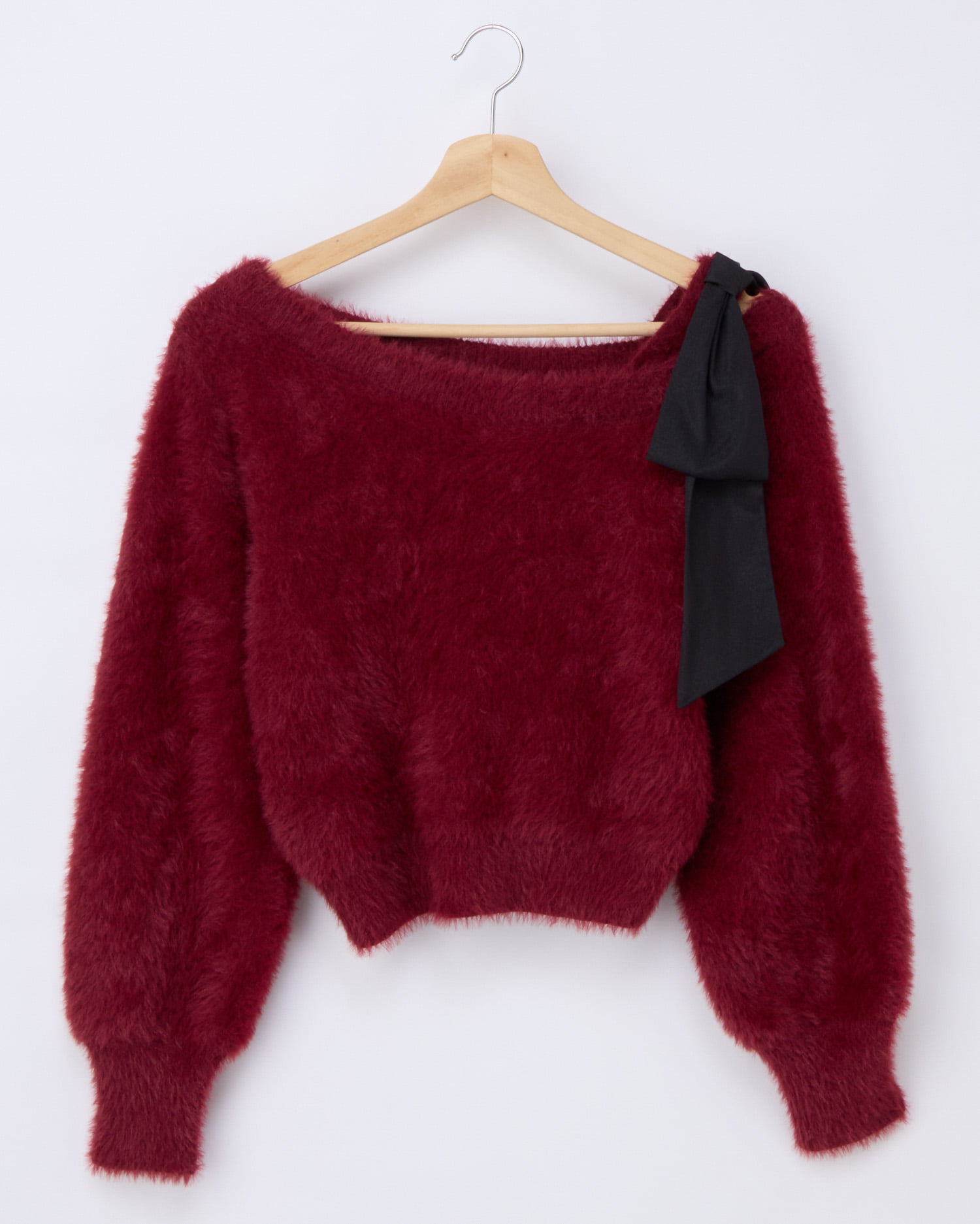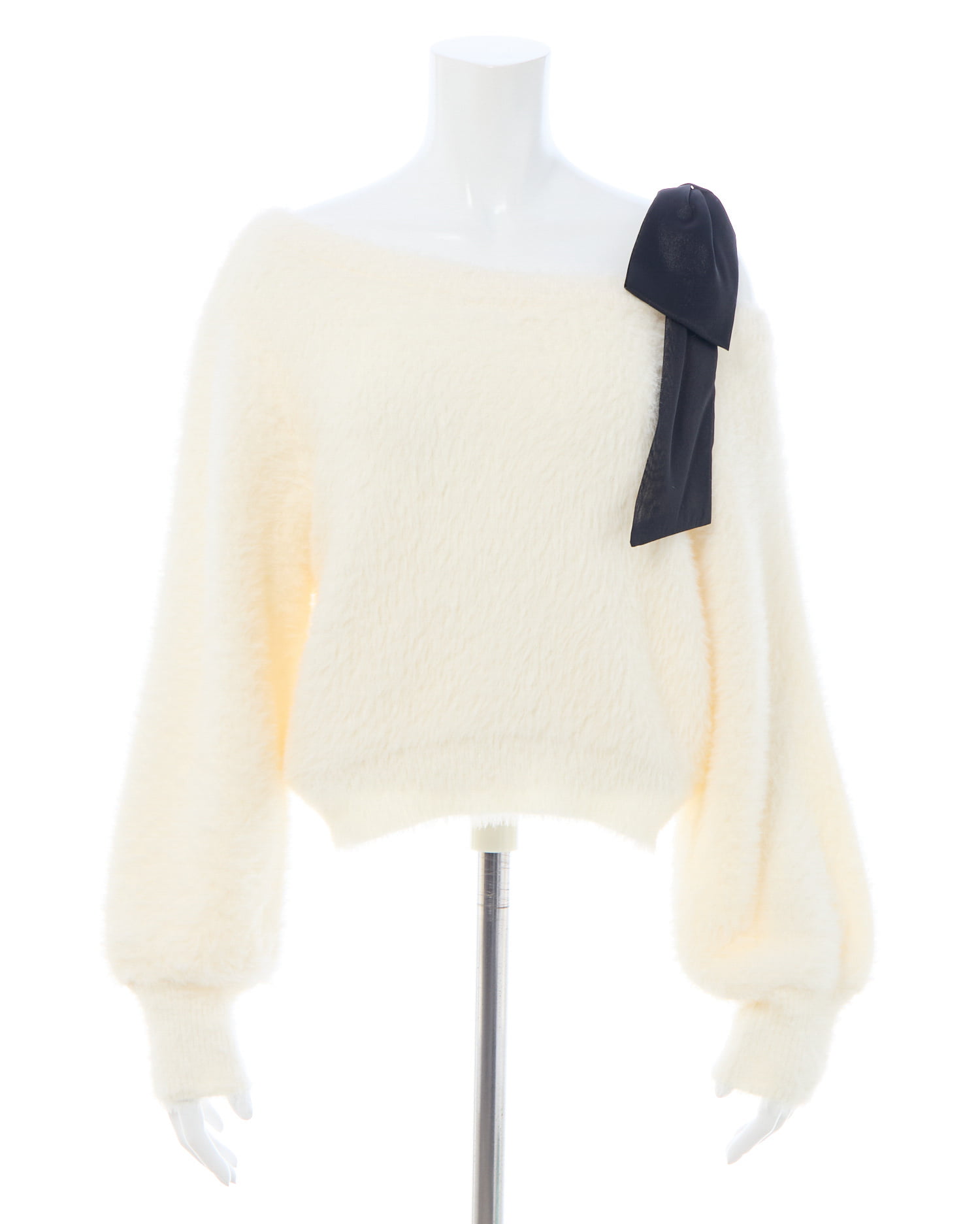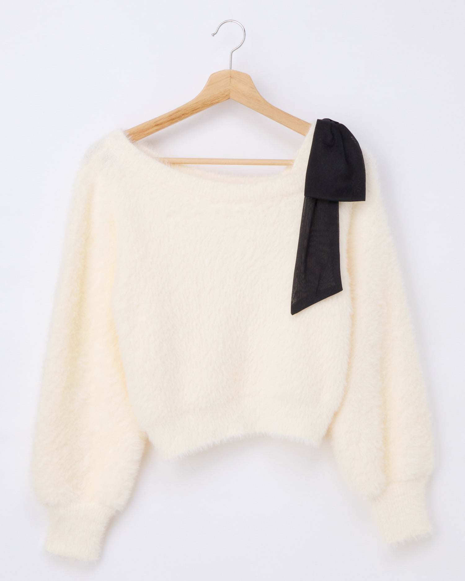人気のフェザーニット×肩リボンデザインにワンショルタイプが登場!