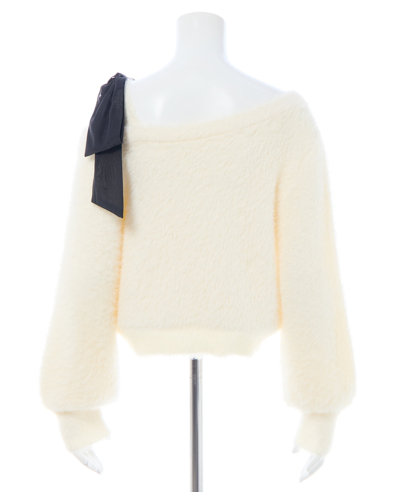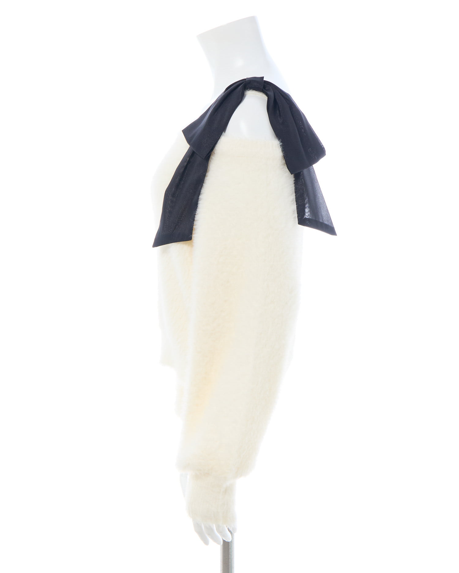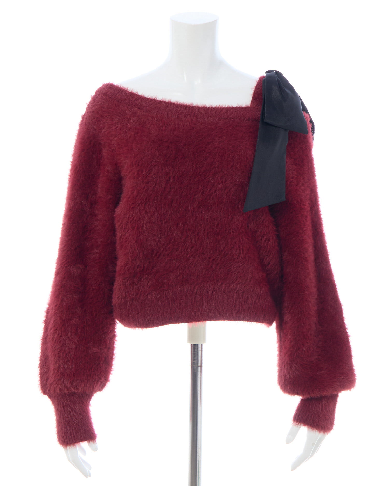 人気のフェザーニット×肩リボンデザインにワンショルタイプが登場!