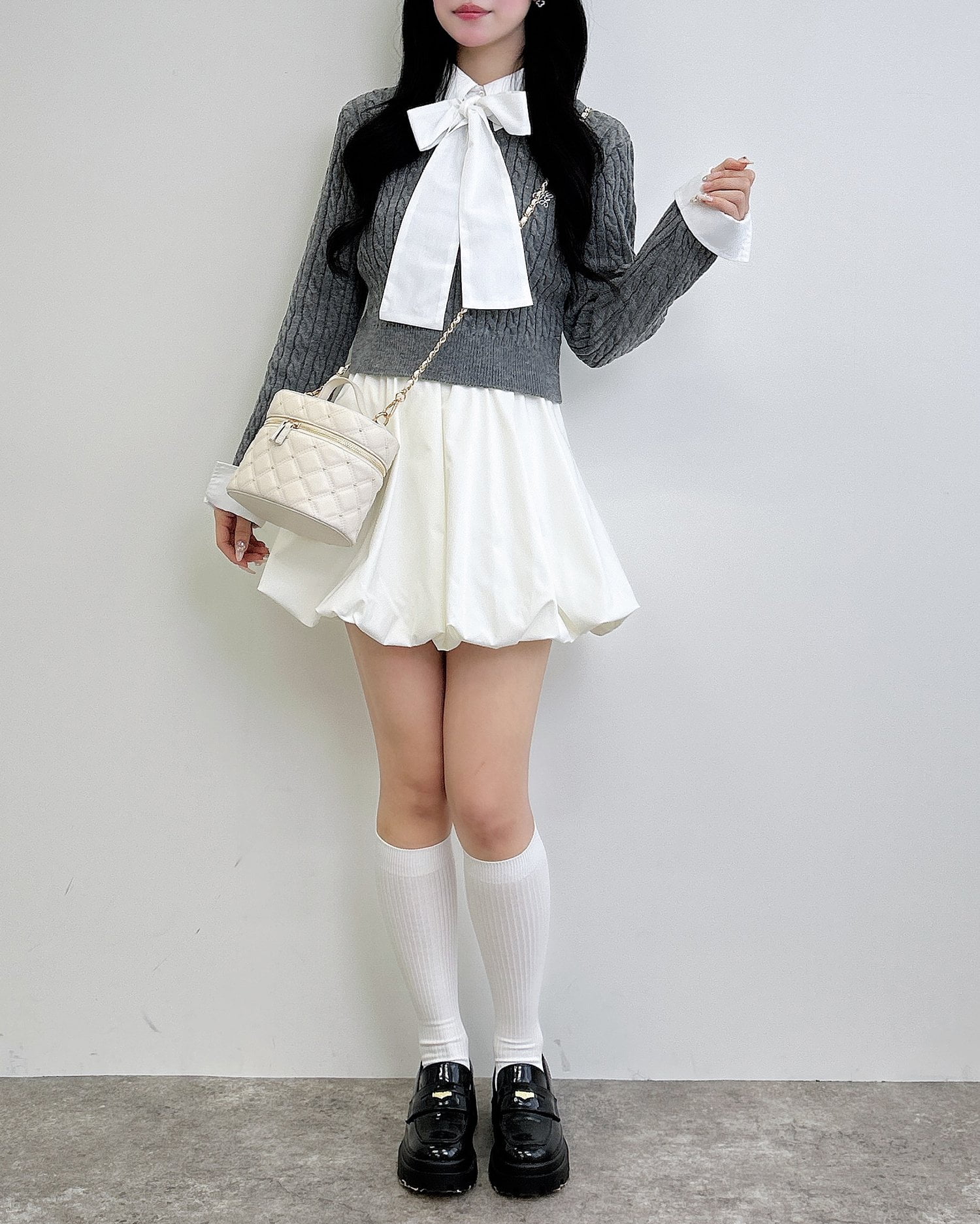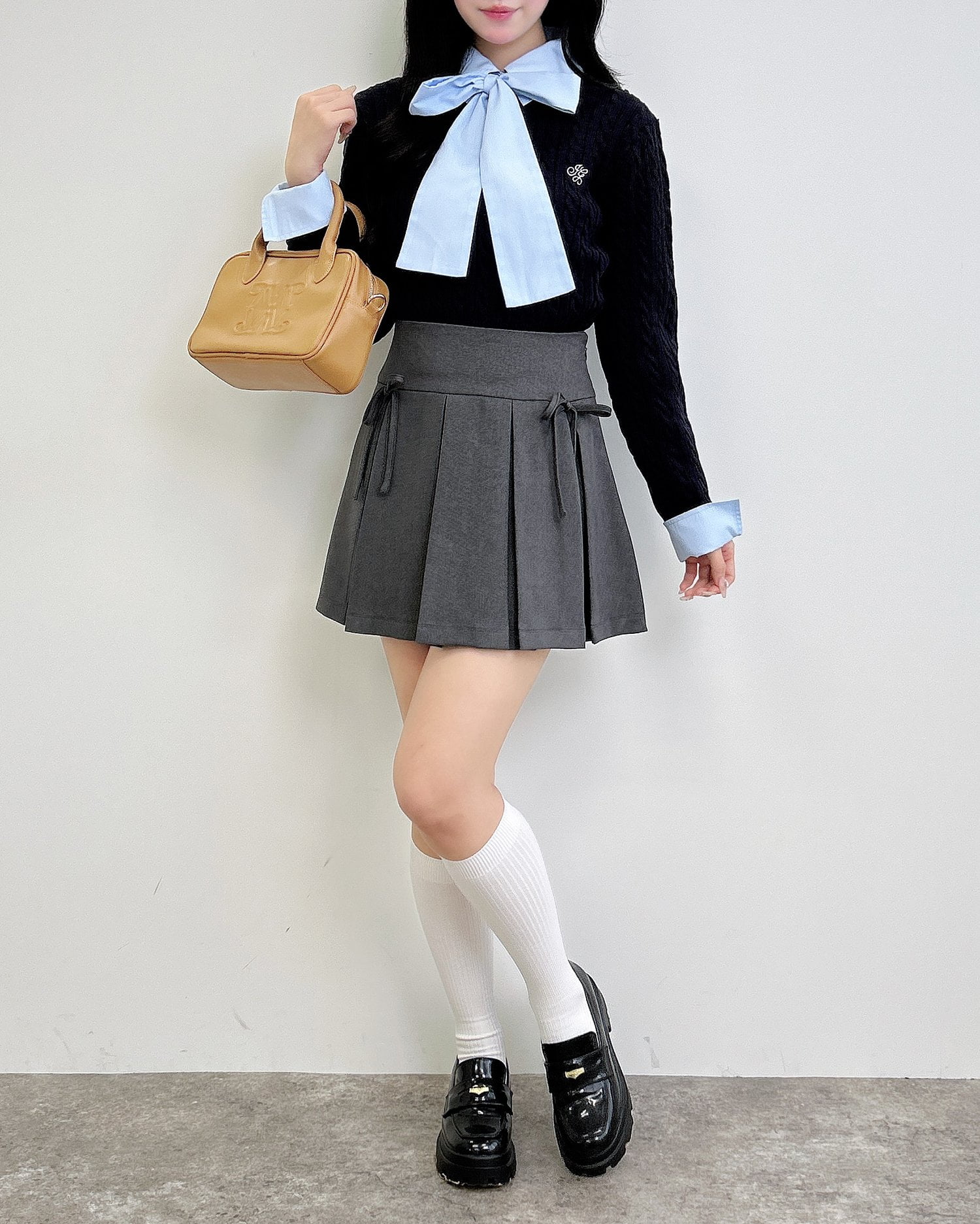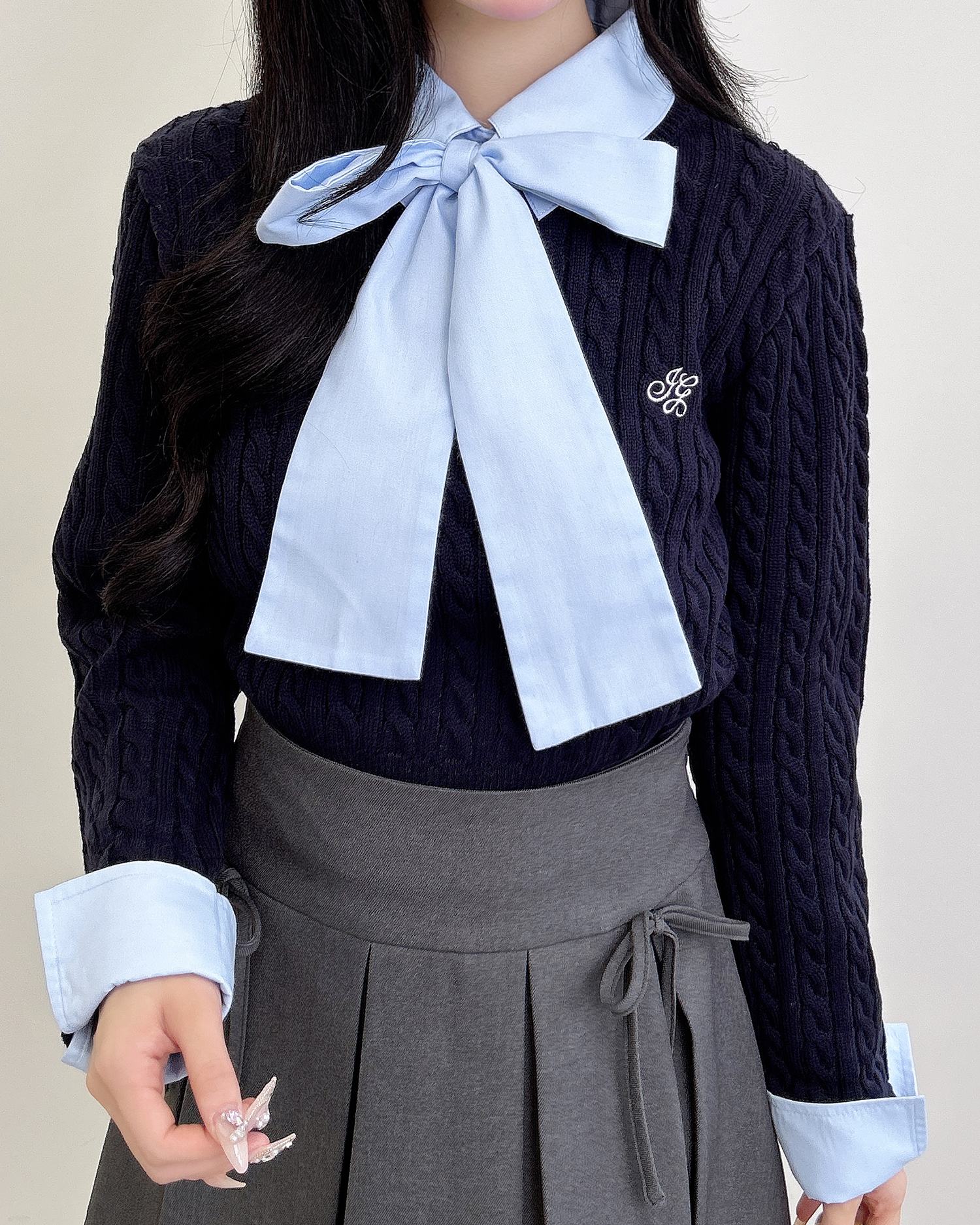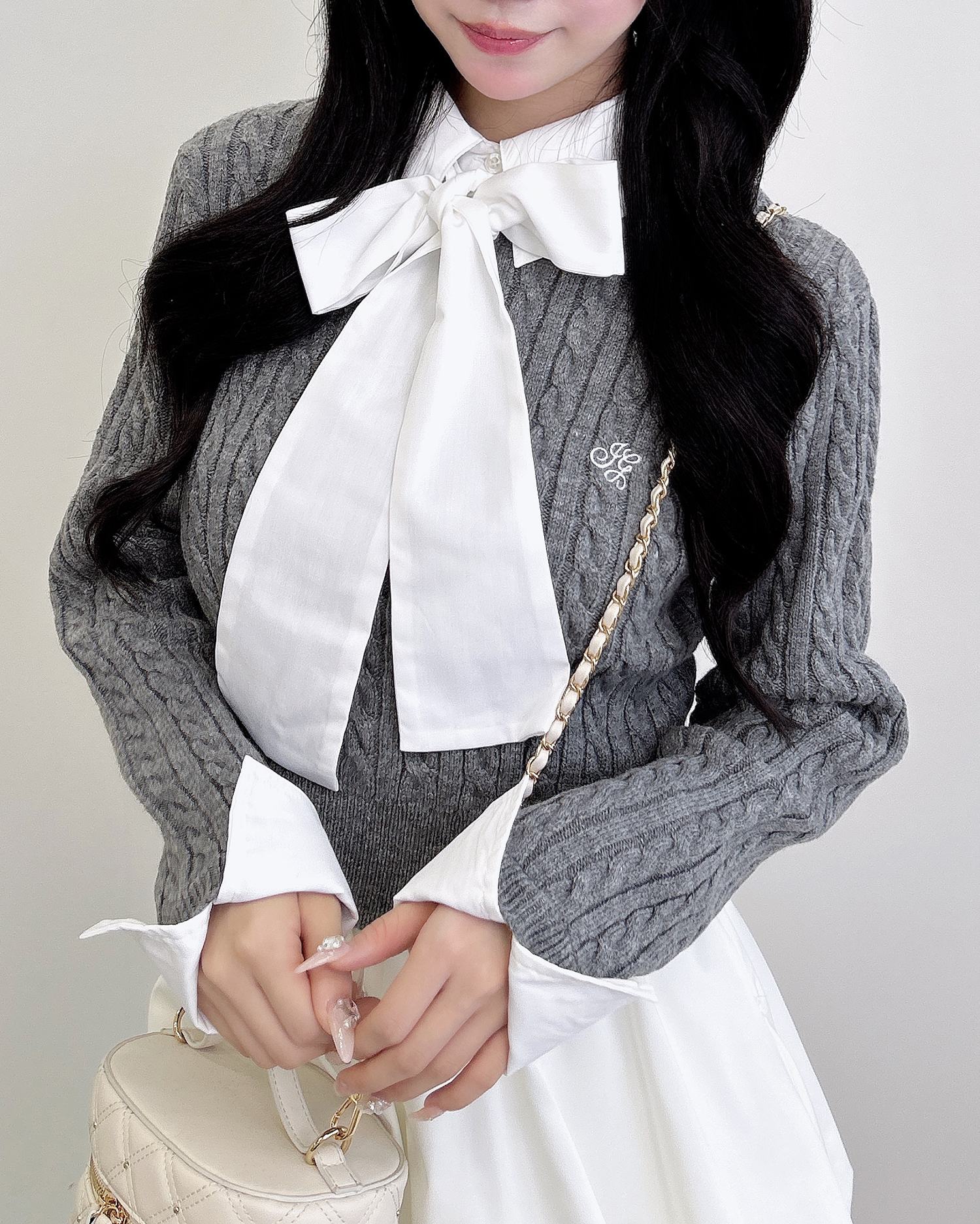 【存在感のあるボウタイリボンがかわいい!トレンドのレイヤード風ニット】