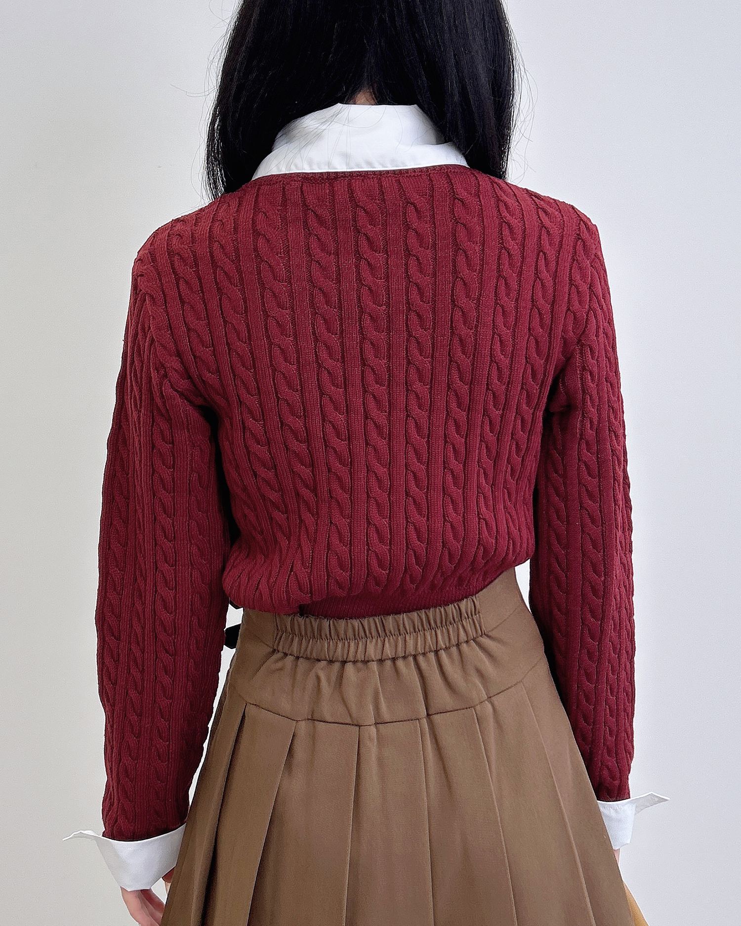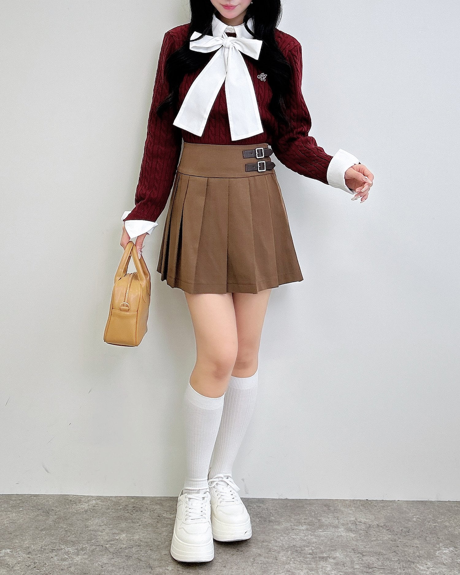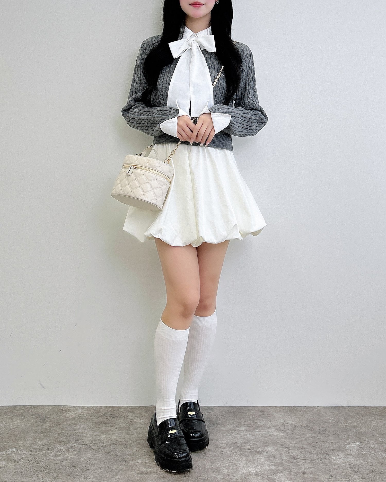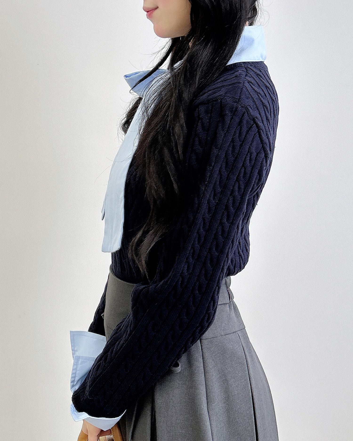 【存在感のあるボウタイリボンがかわいい!トレンドのレイヤード風ニット】