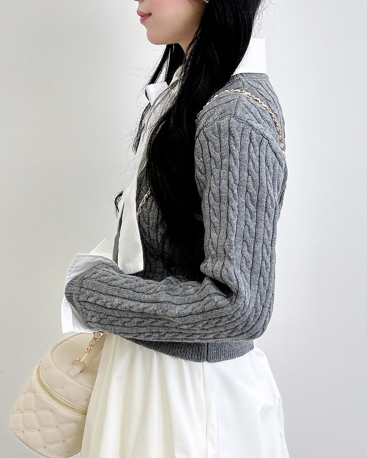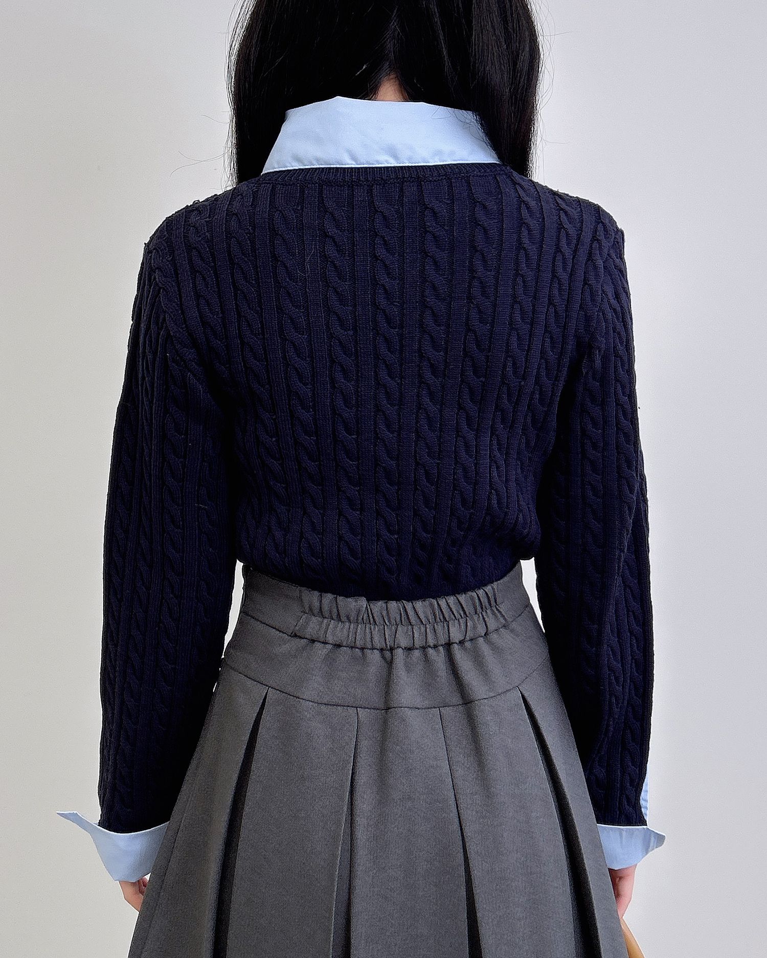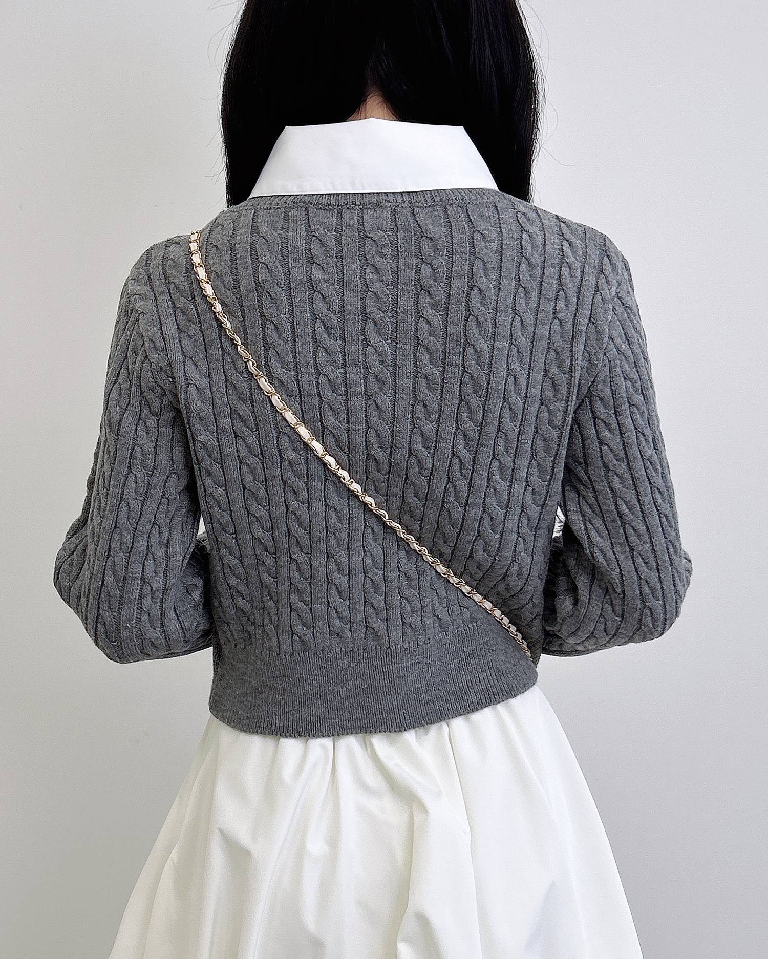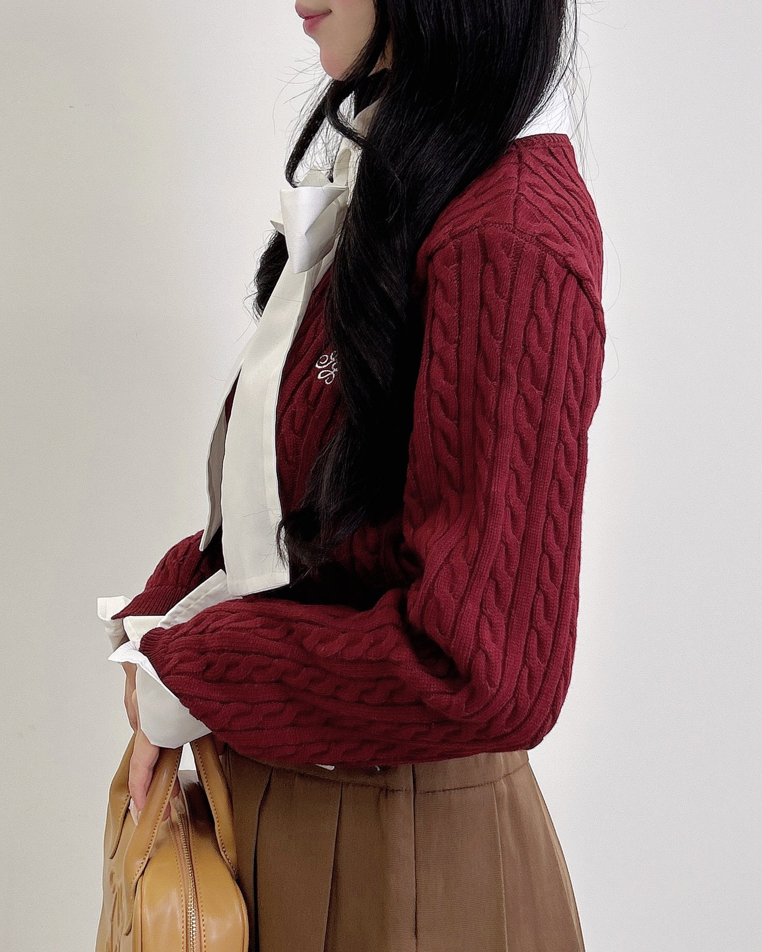 【存在感のあるボウタイリボンがかわいい!トレンドのレイヤード風ニット】