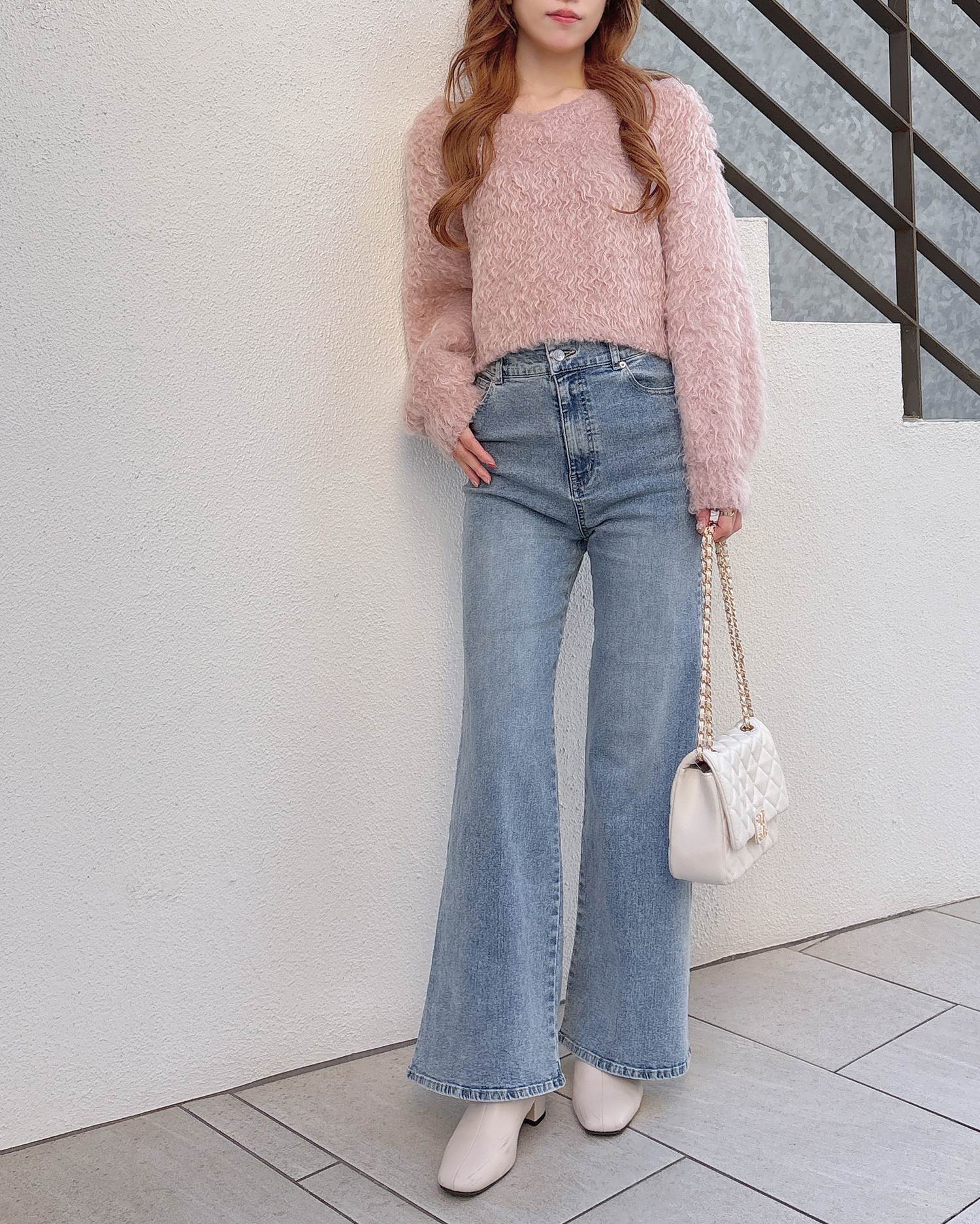 ふわふわとしたシャギーがフェミニンなシルエットを演出。