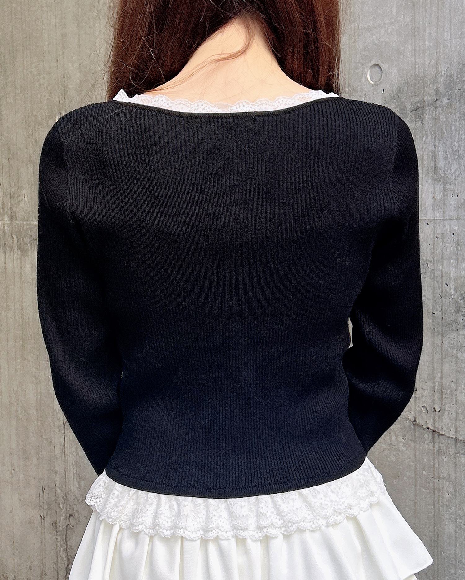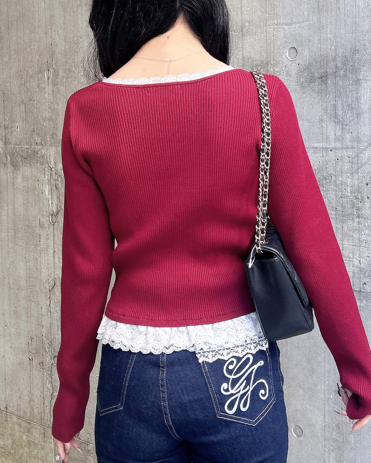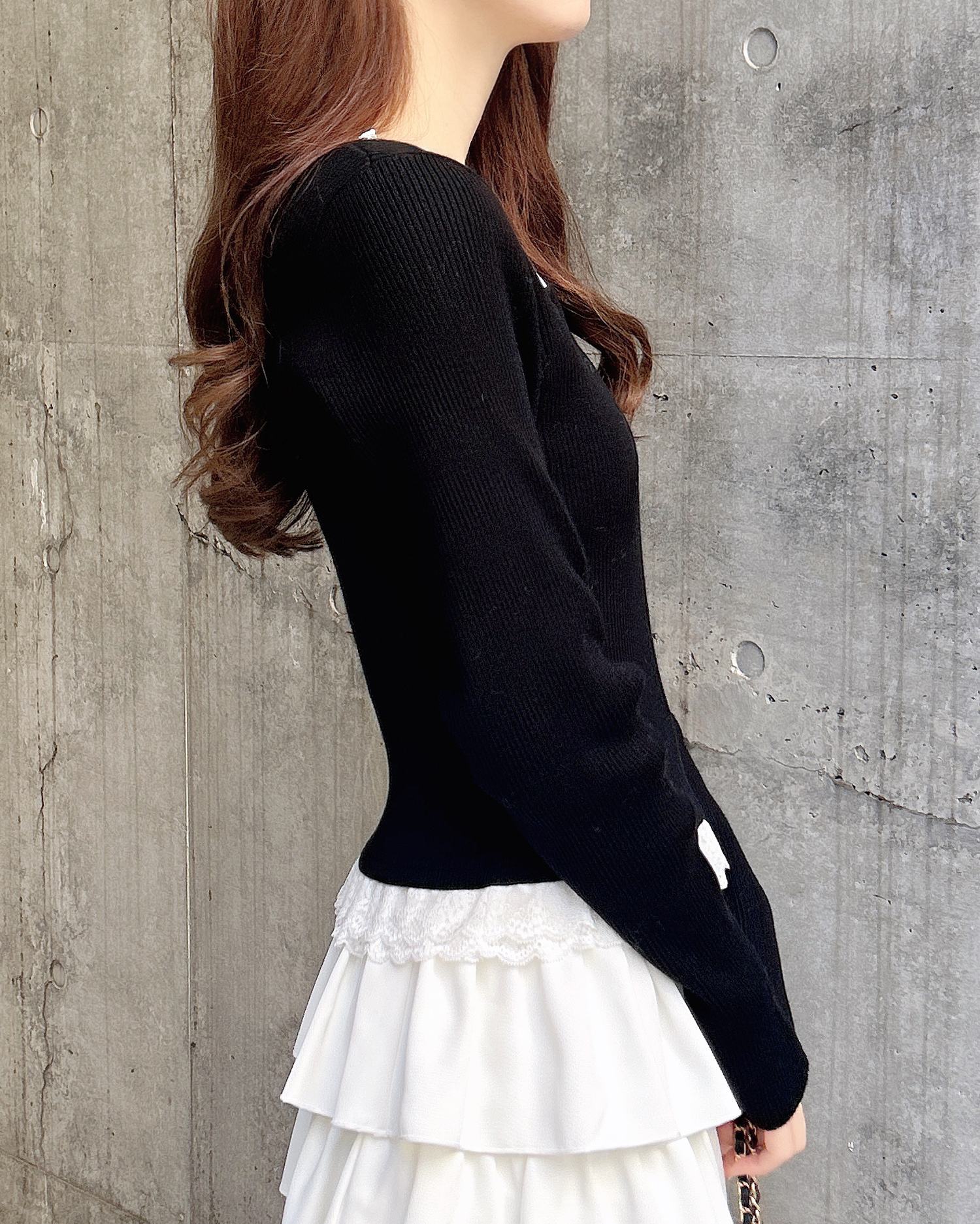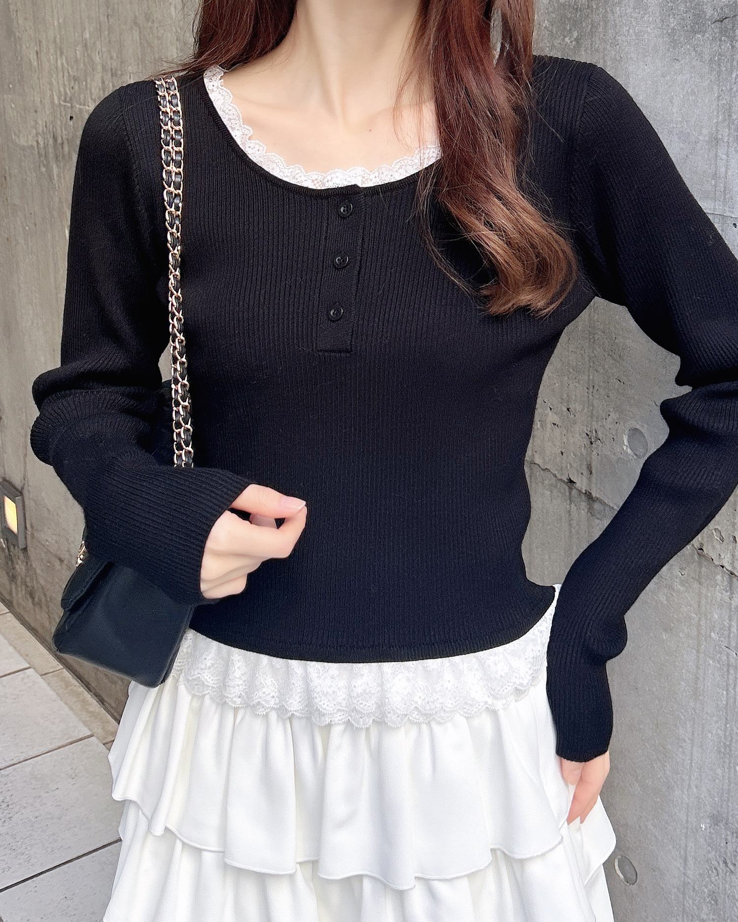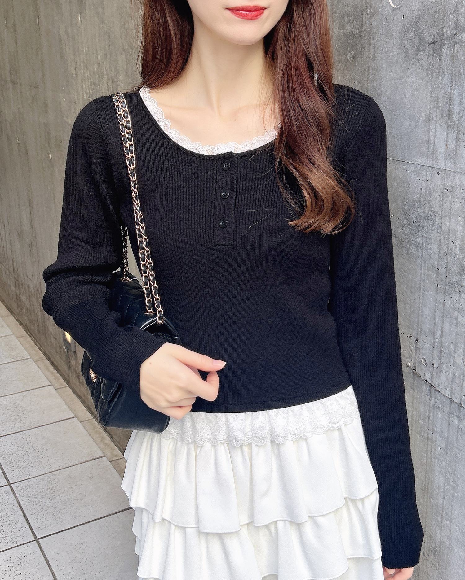 【人気のフリルレーストップスから長袖ニットタイプが登場♡】