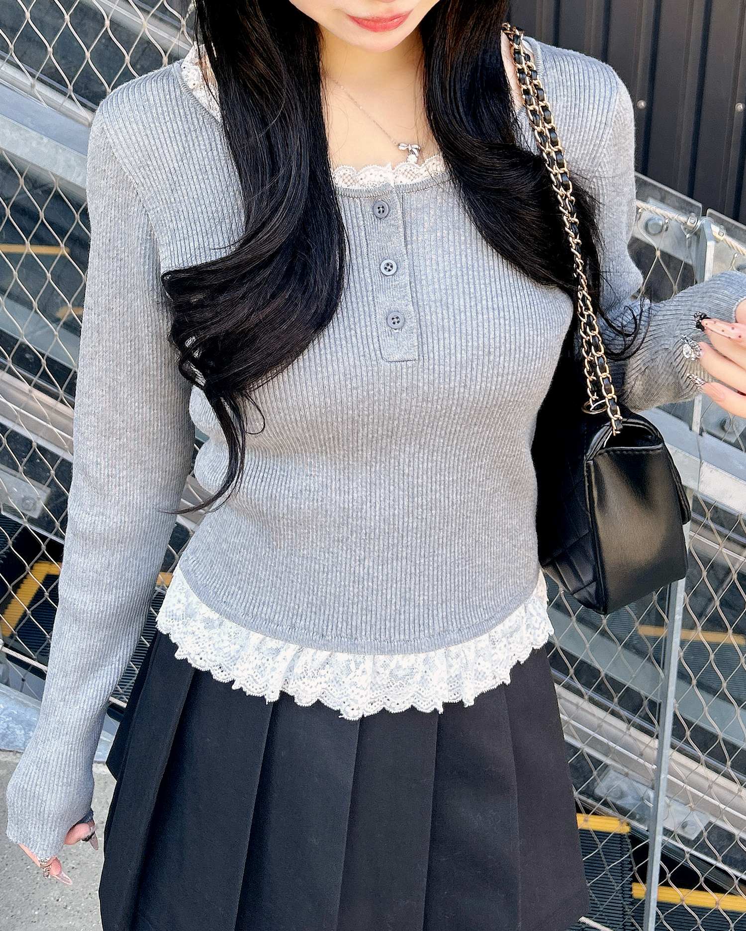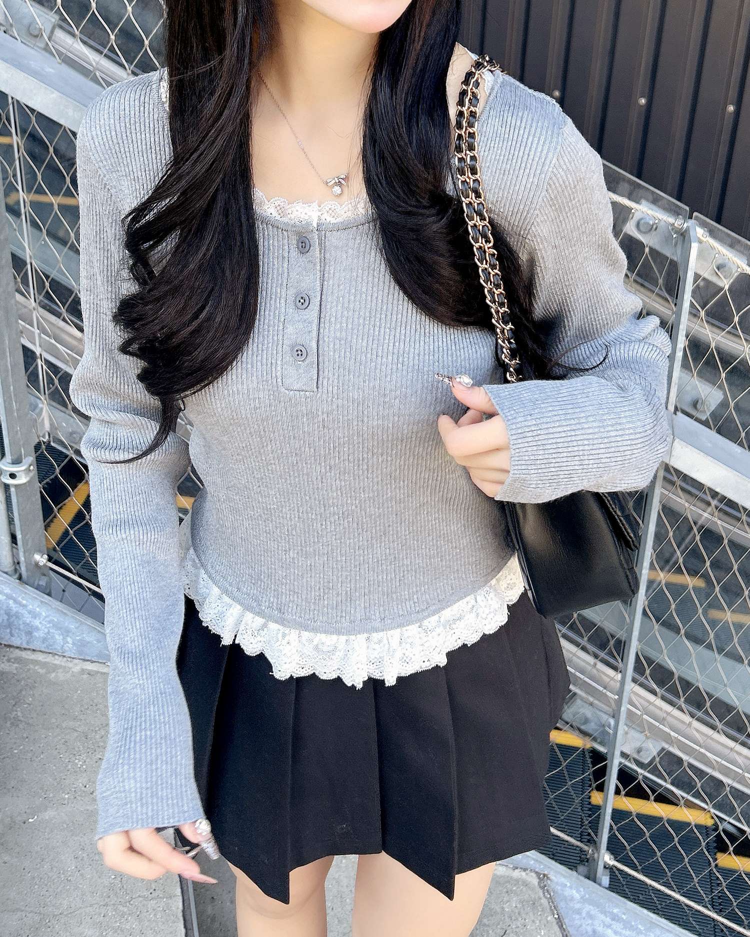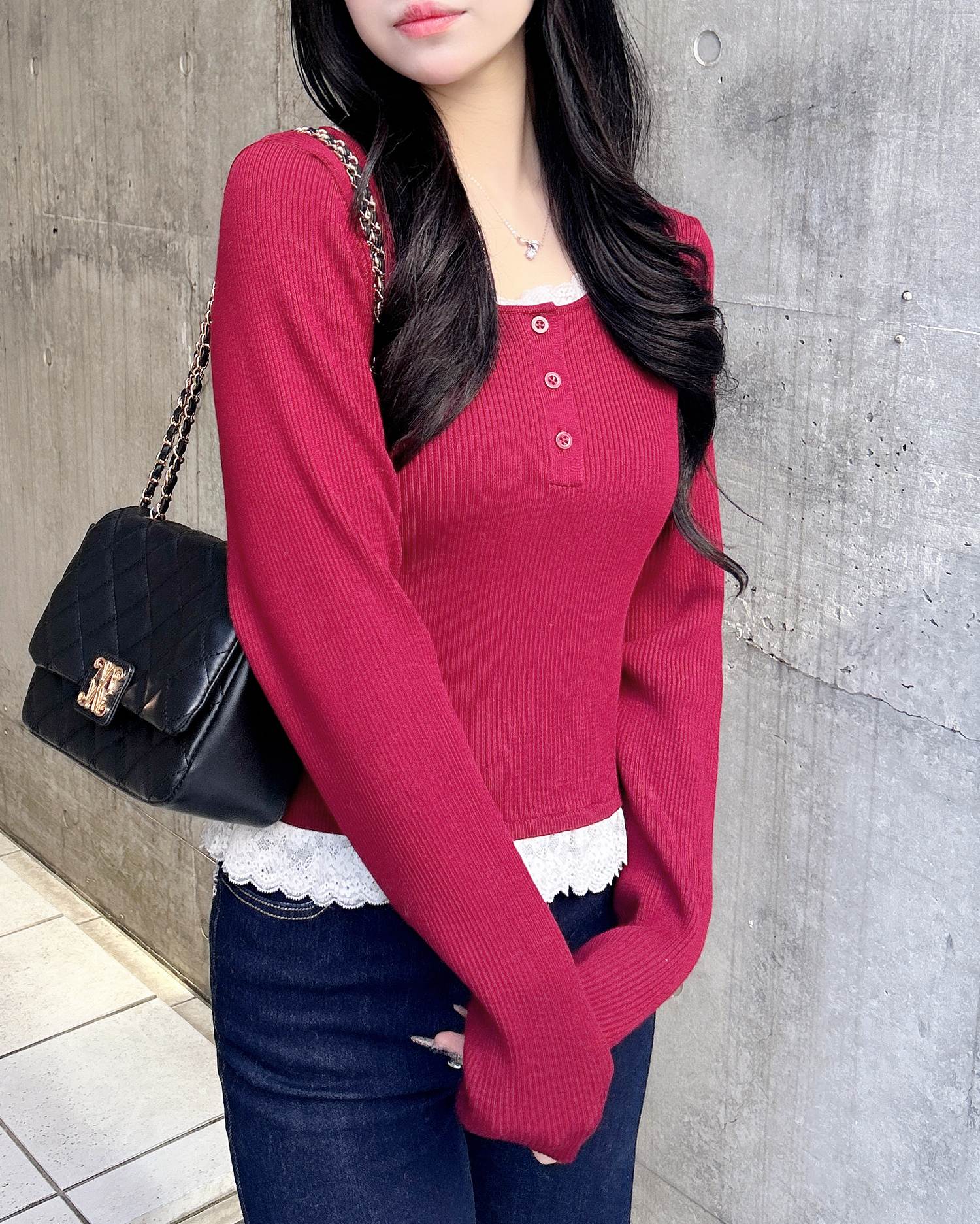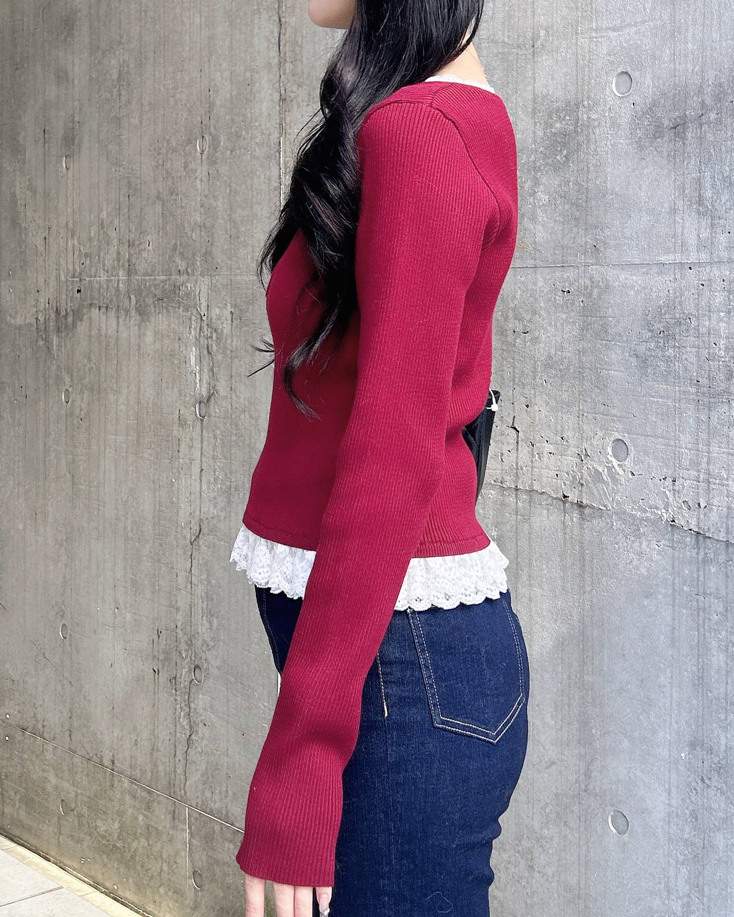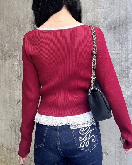 【人気のフリルレーストップスから長袖ニットタイプが登場♡】