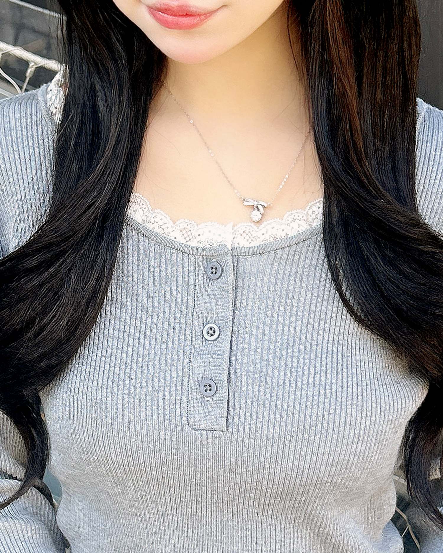 胸元と裾にあしらわれたレースがトレンド感と可愛らしさを演出♡