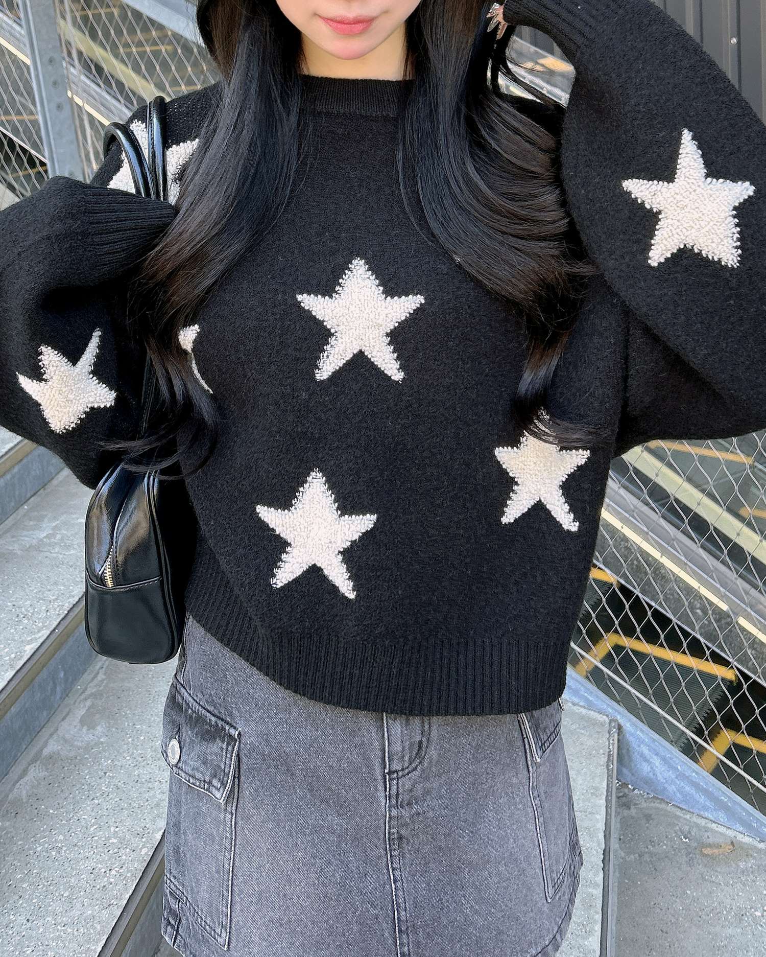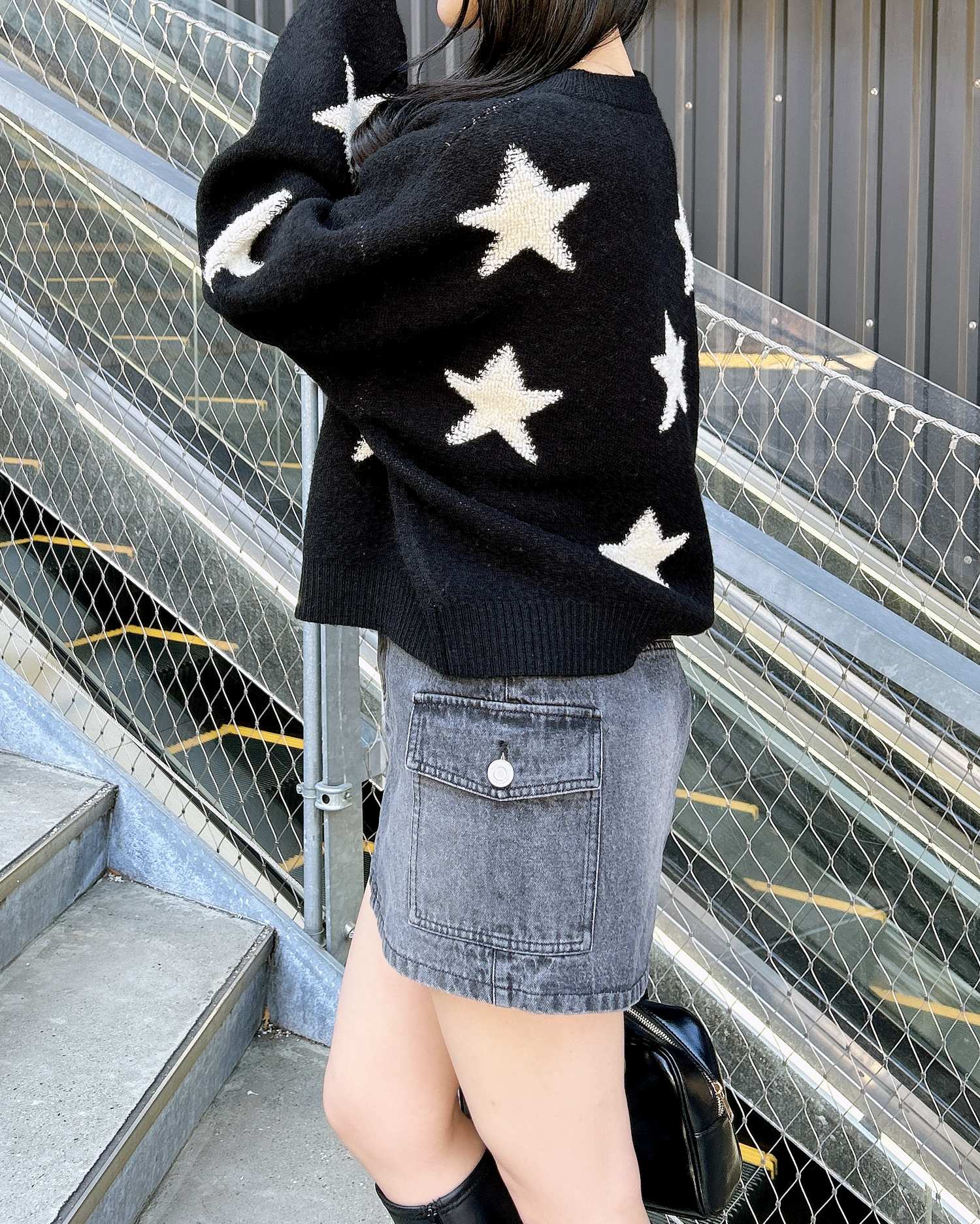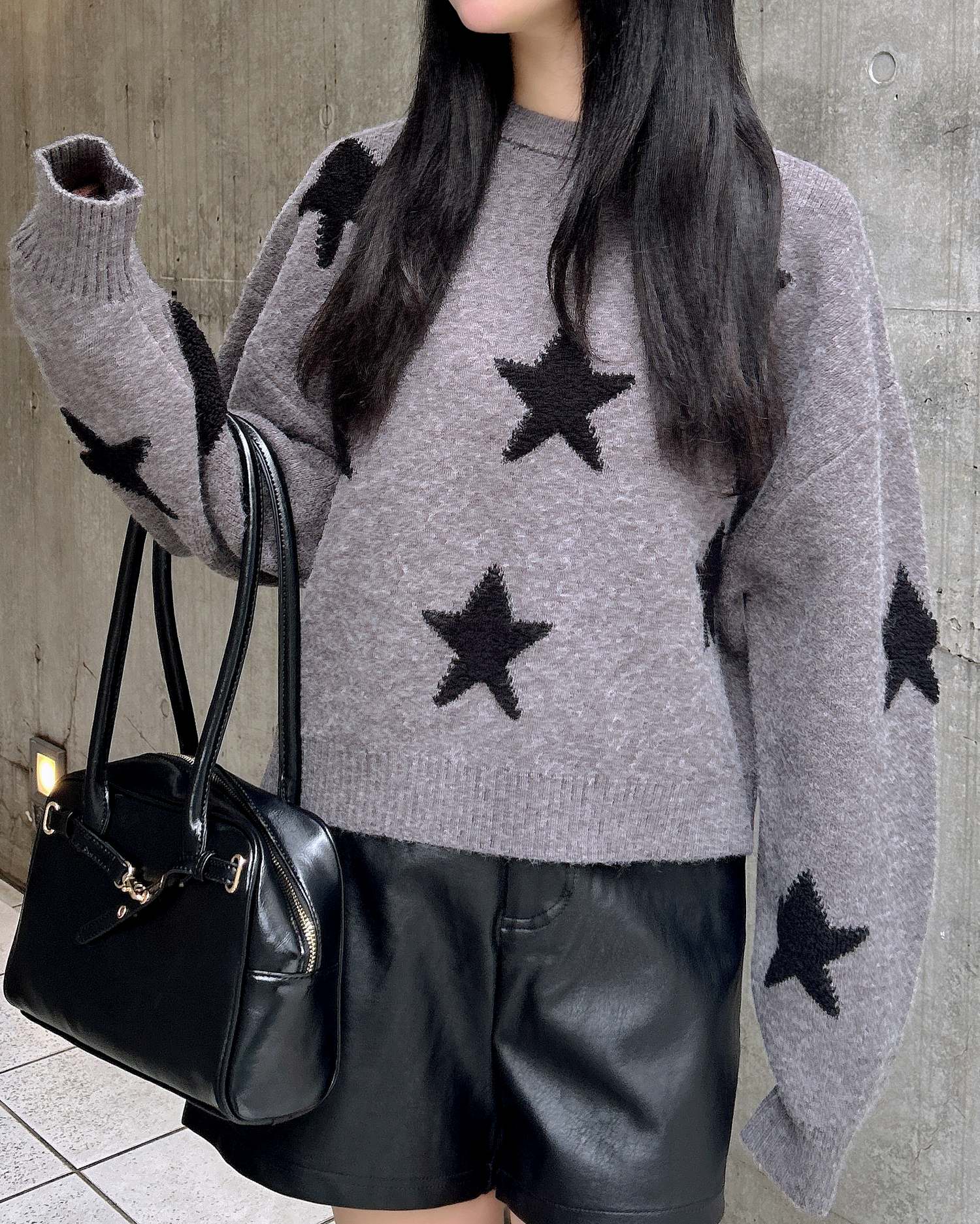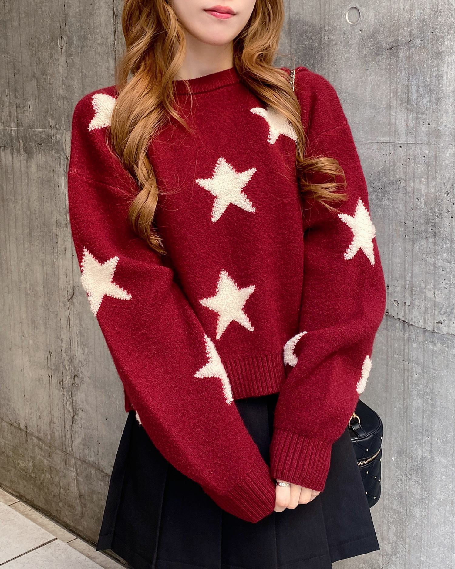 ふわもこの立体感ある星柄がインパクト抜群なニットトップス。