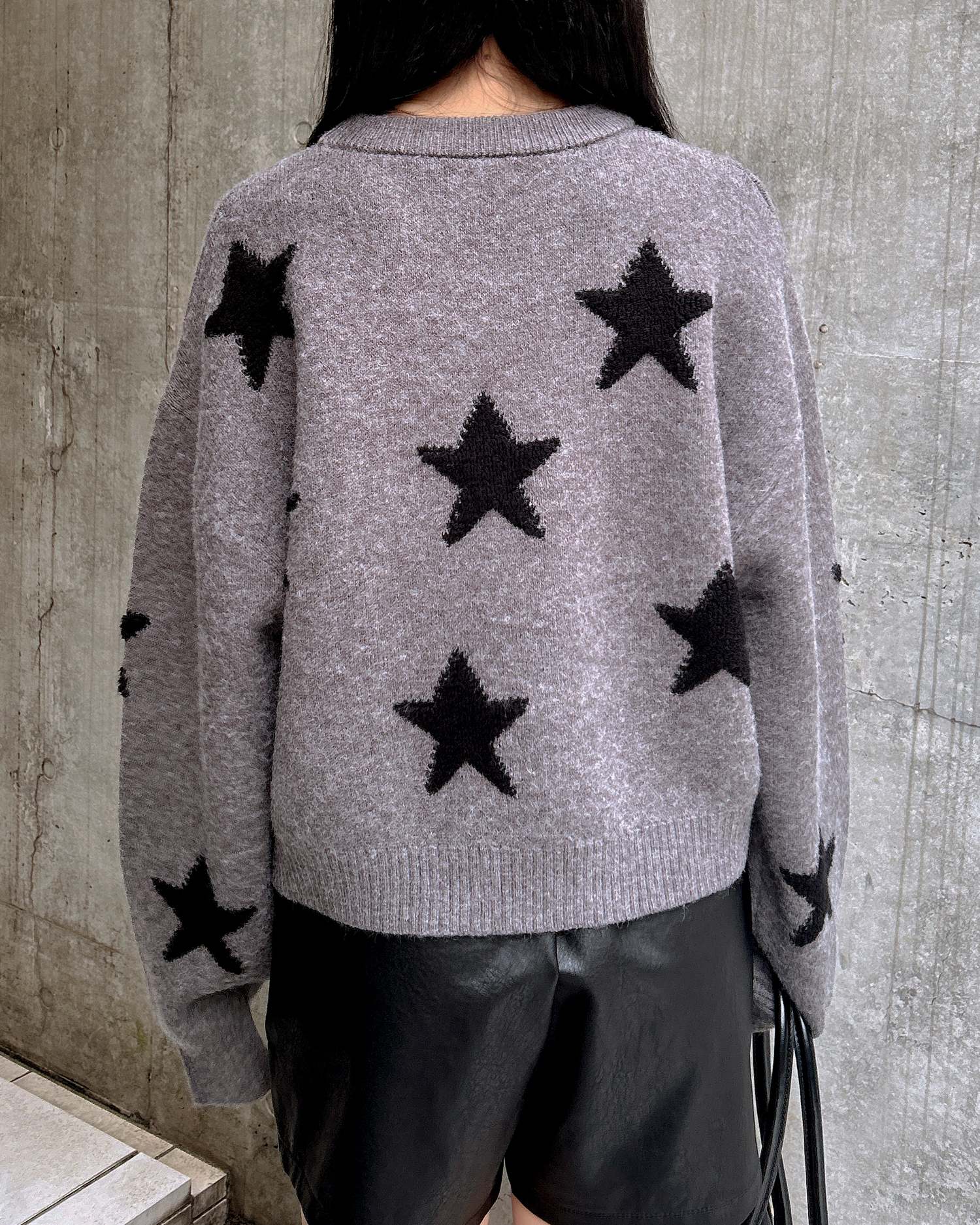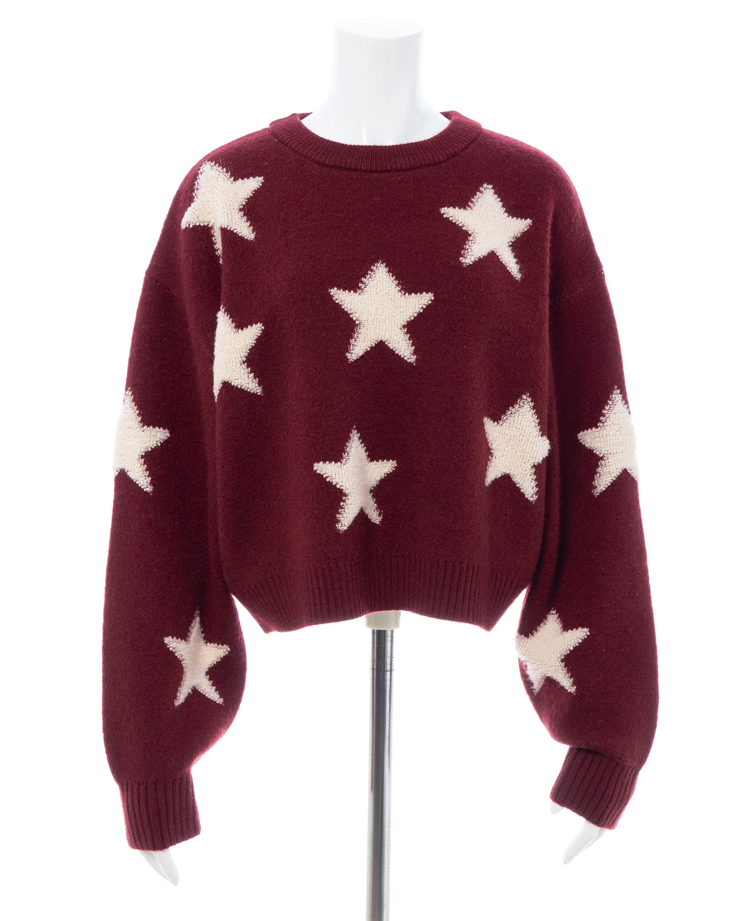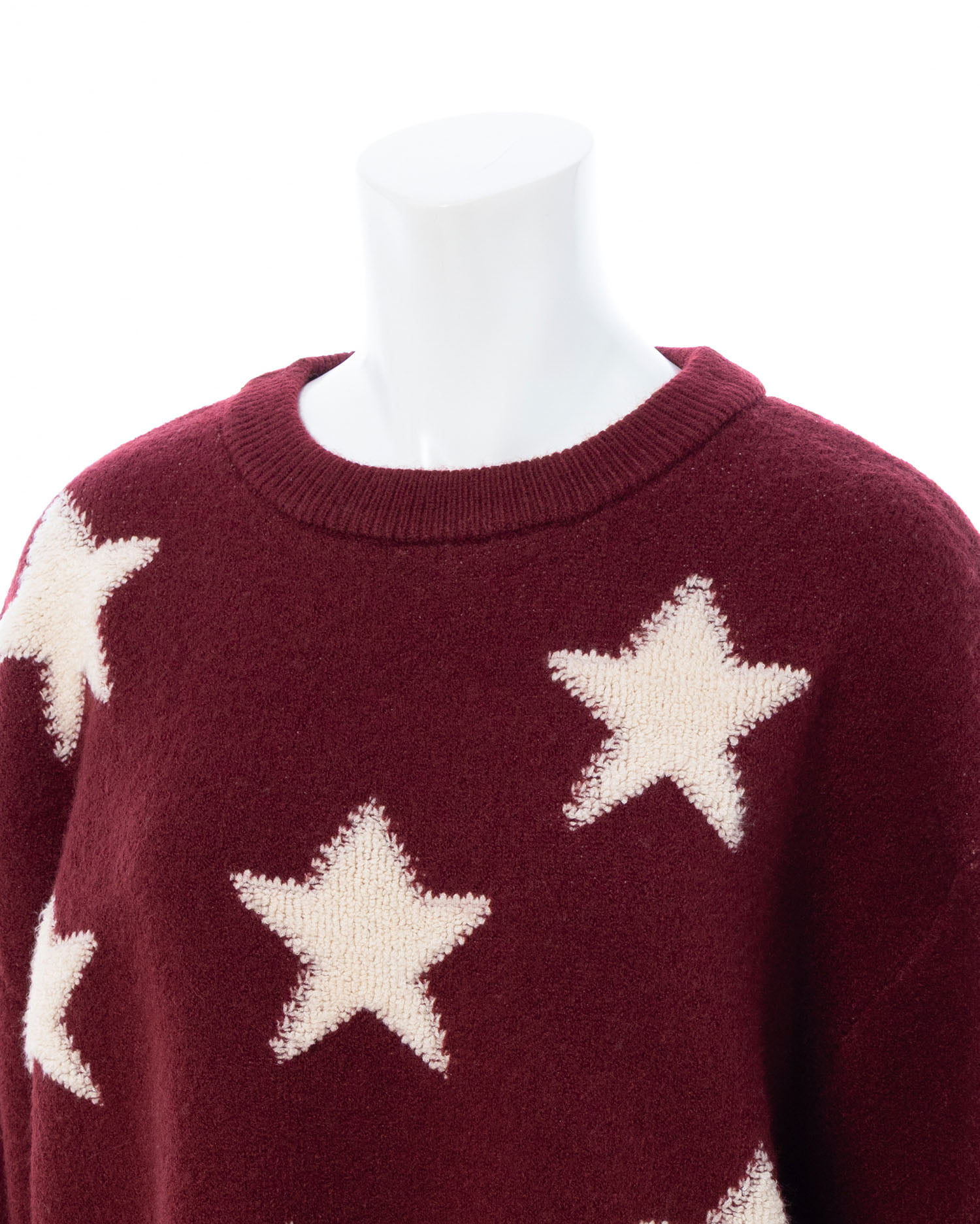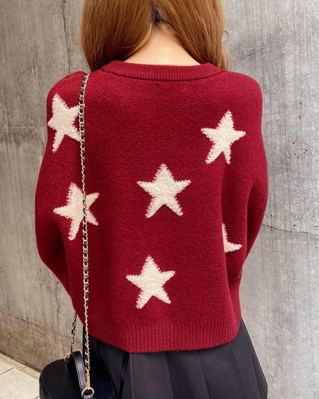 ふわもこの立体感ある星柄がインパクト抜群なニットトップス。