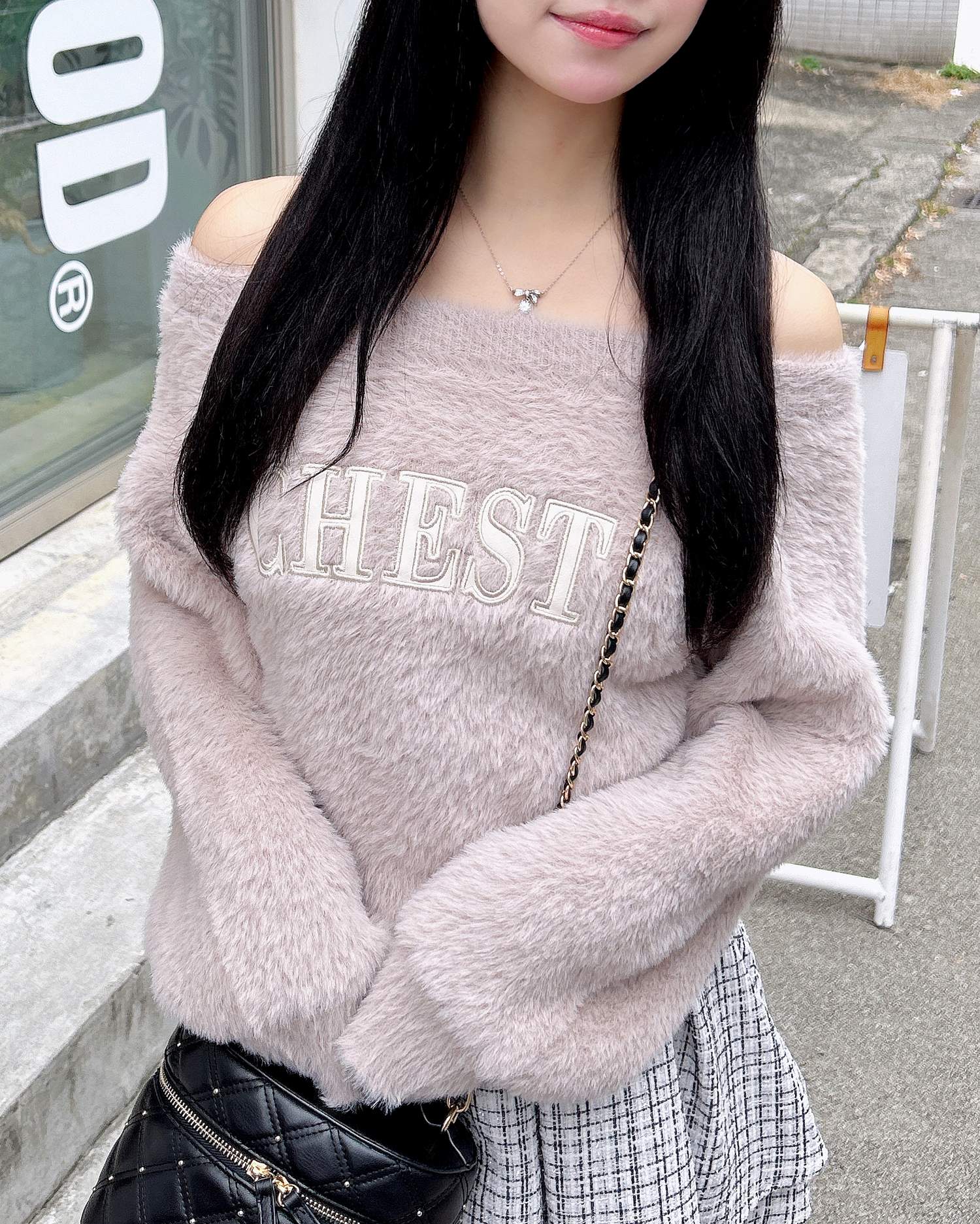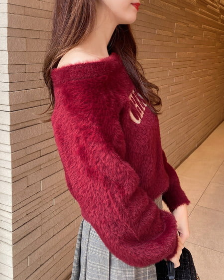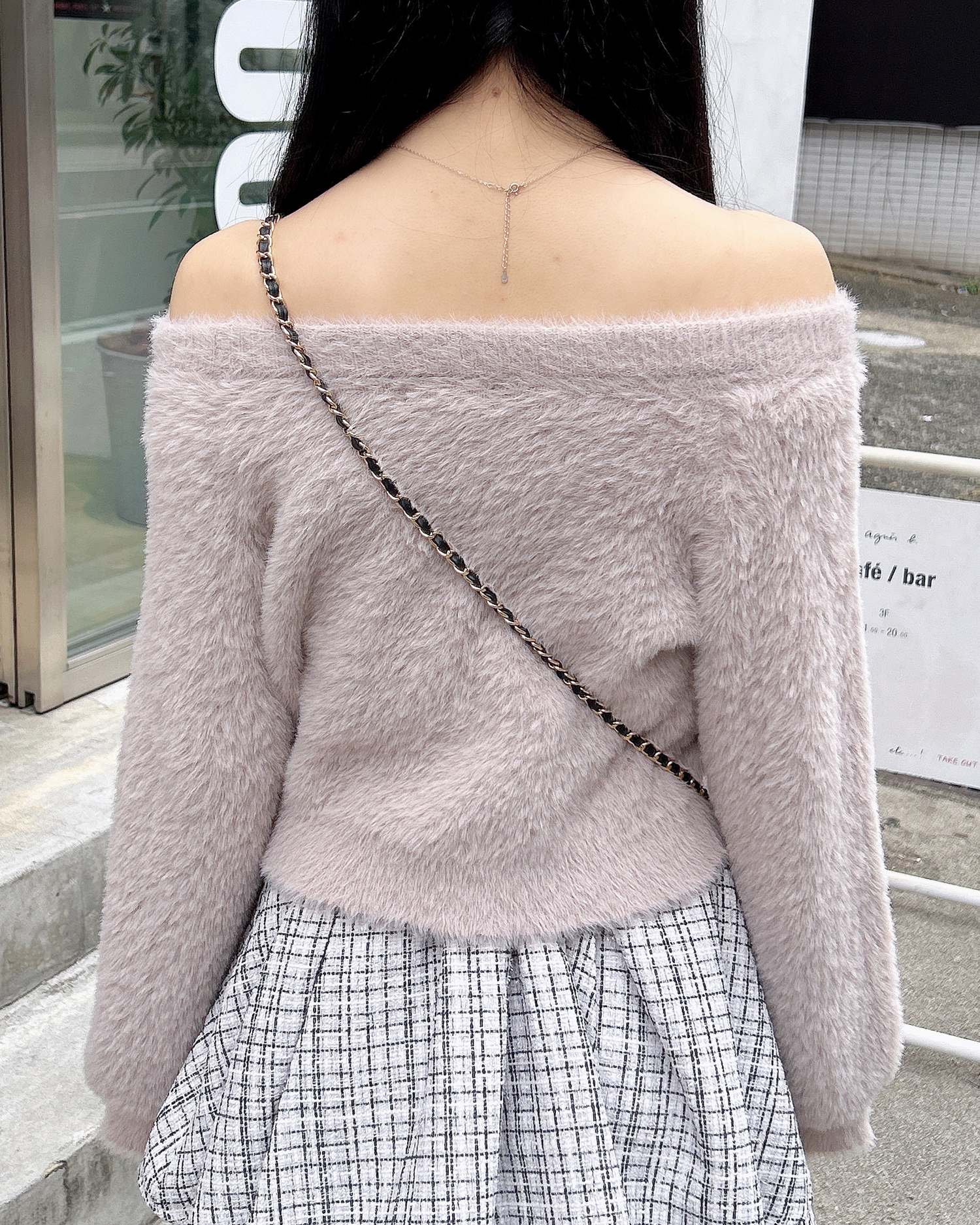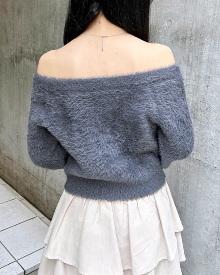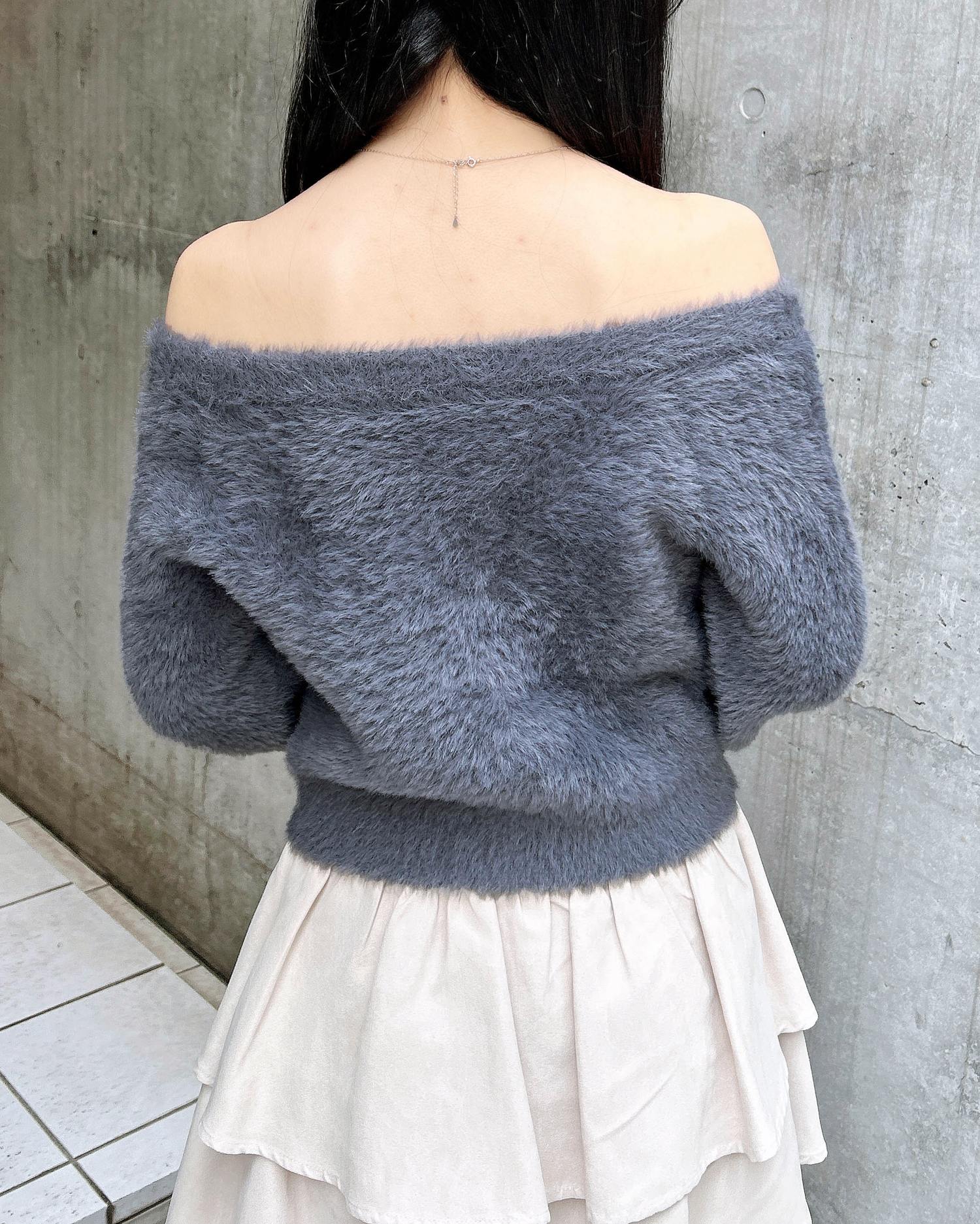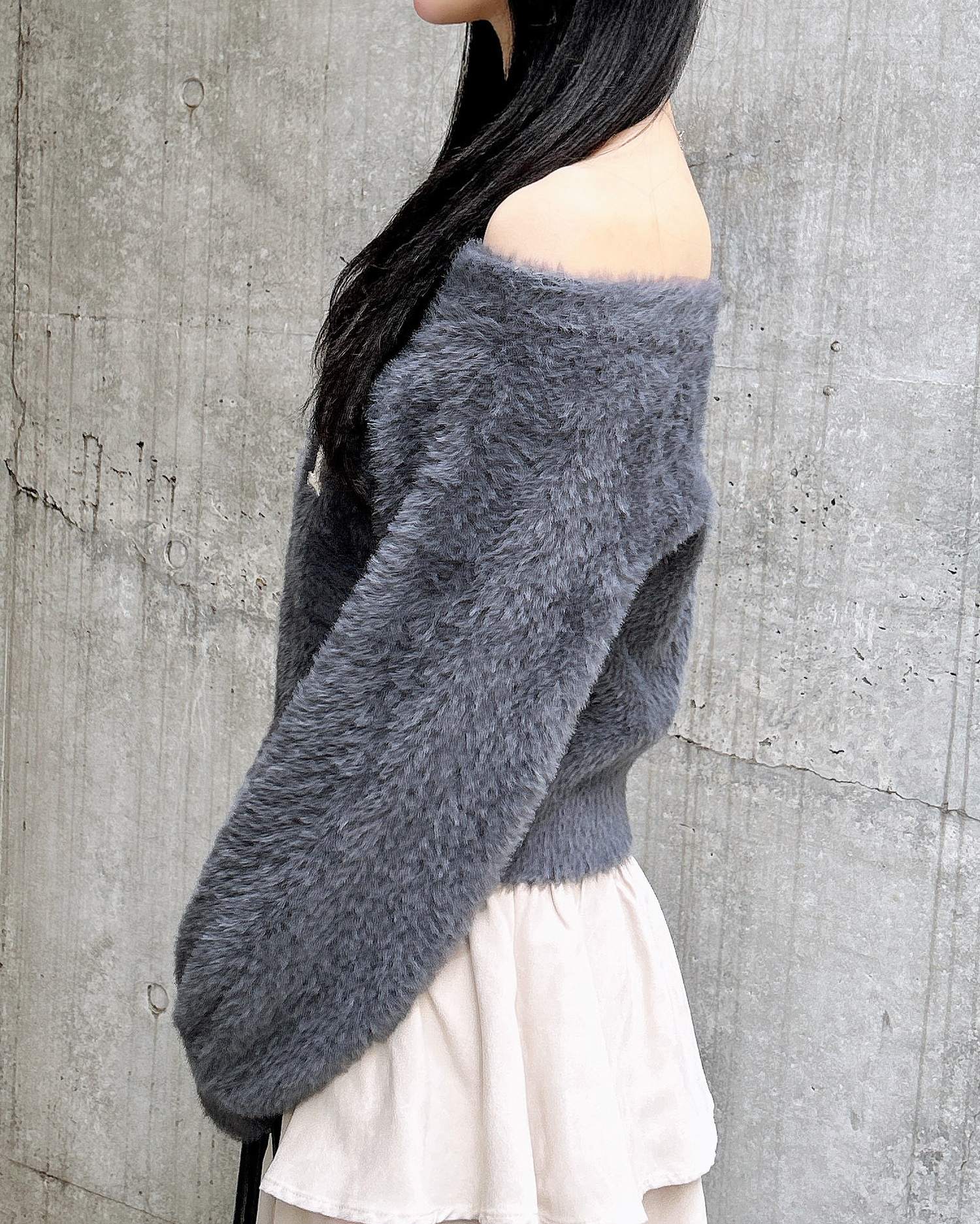 オフショルデザインが大人かわいい雰囲気を演出してくれるシャギーニットです。