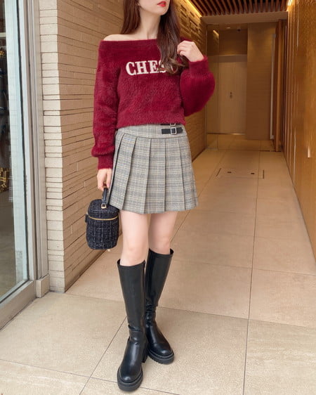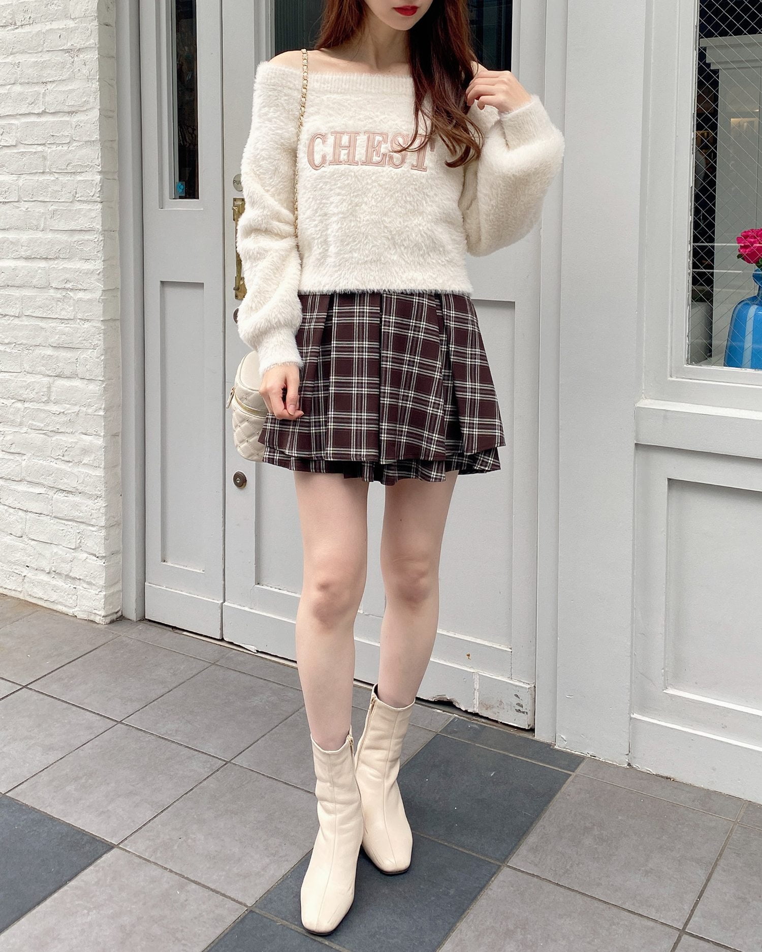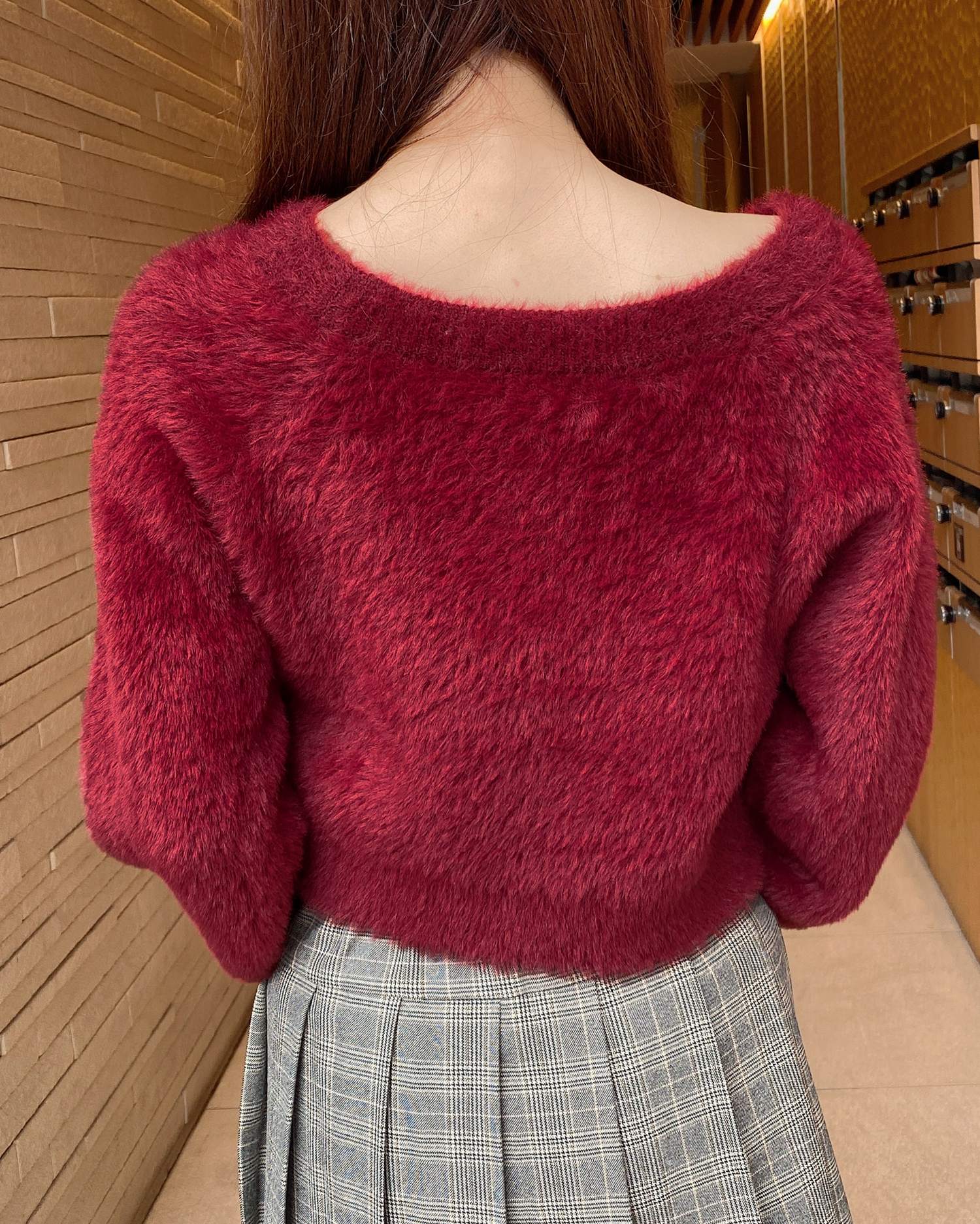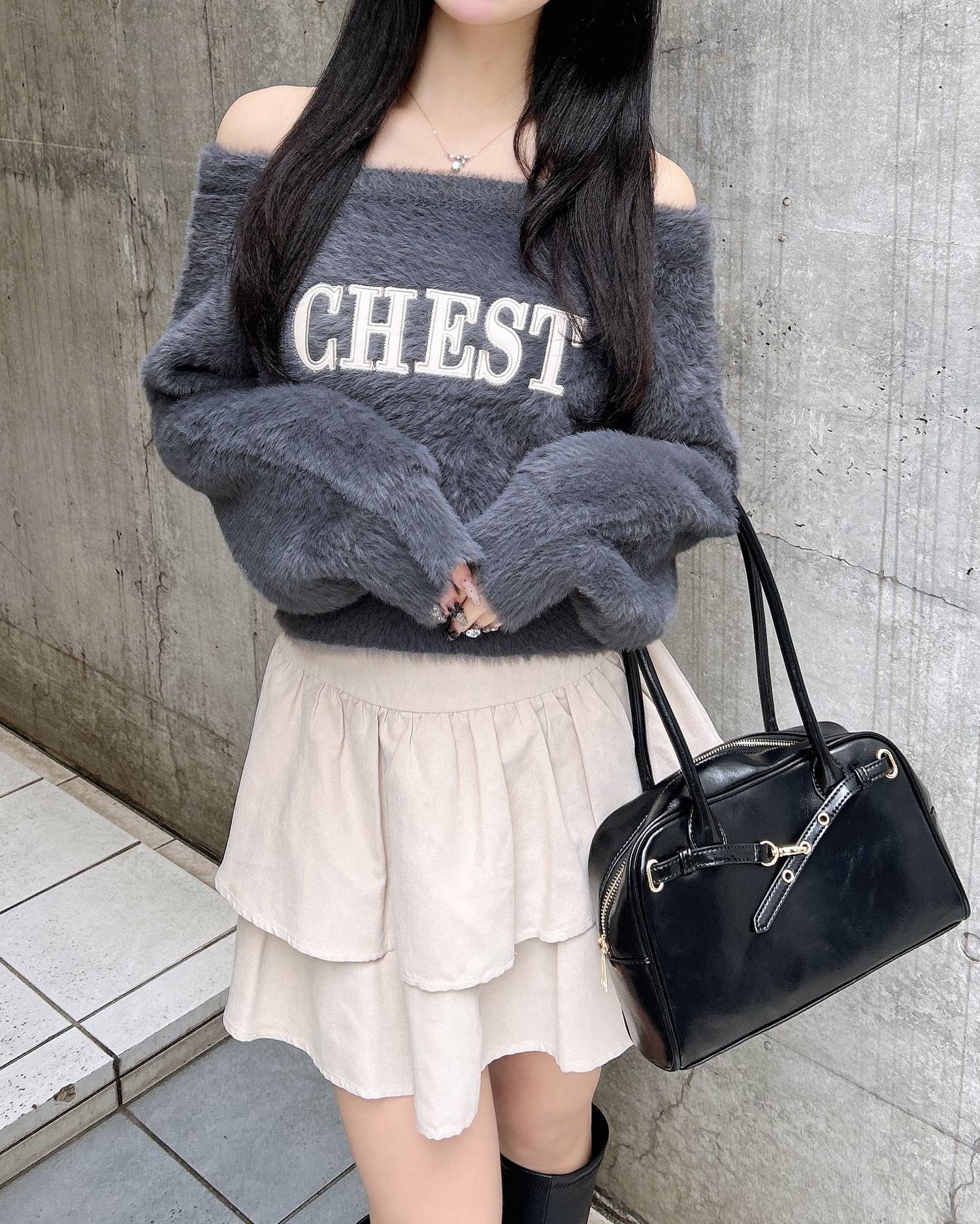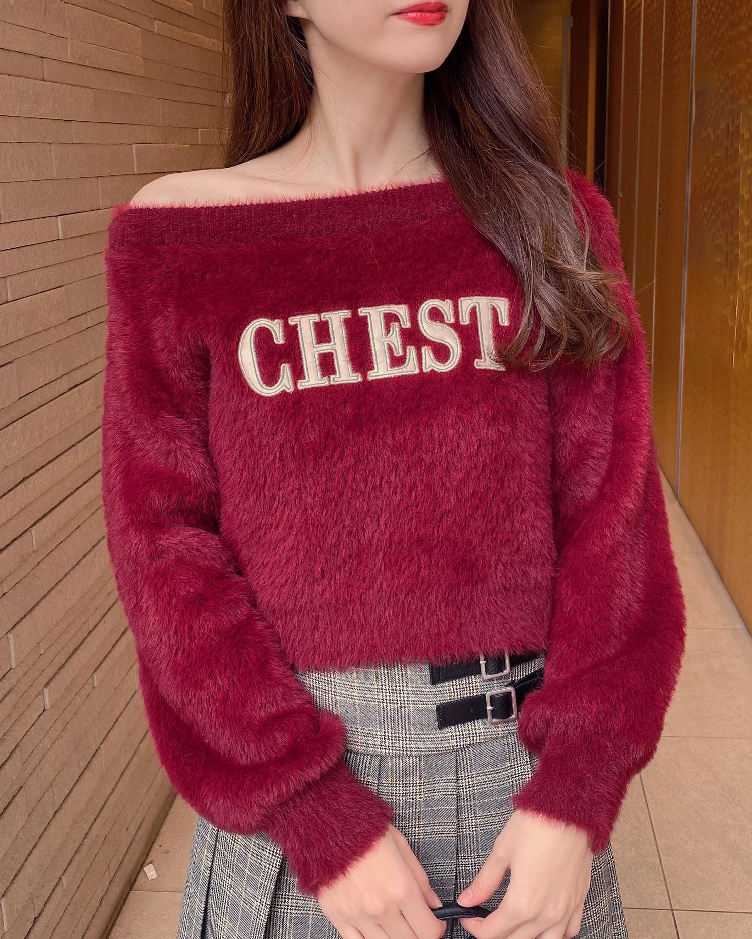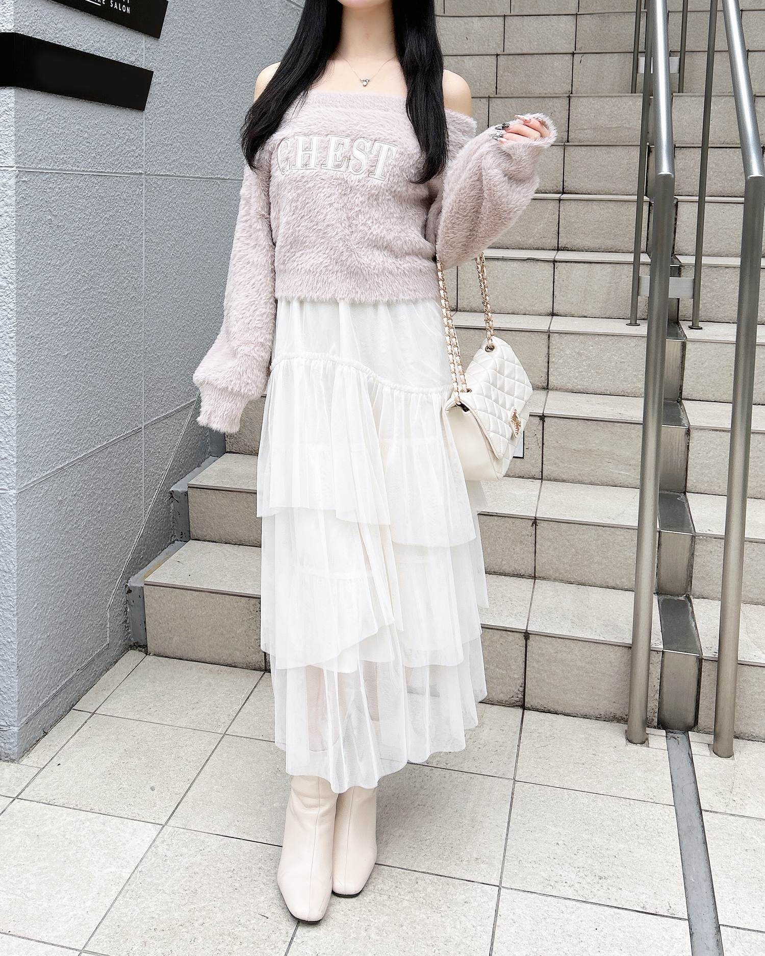 オフショルデザインが大人かわいい雰囲気を演出してくれるシャギーニットです。