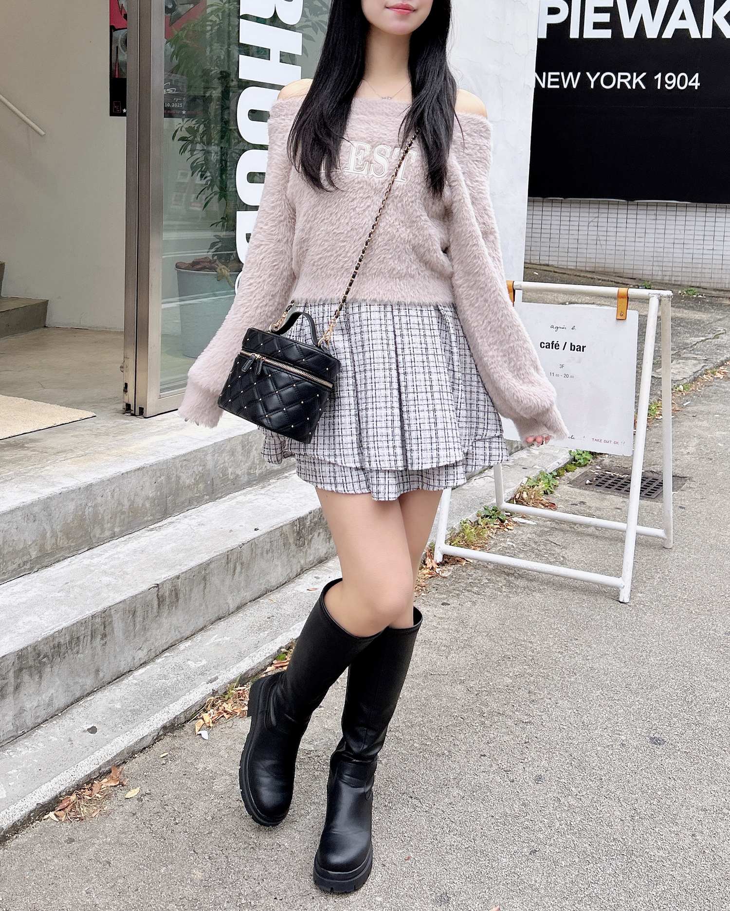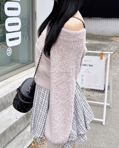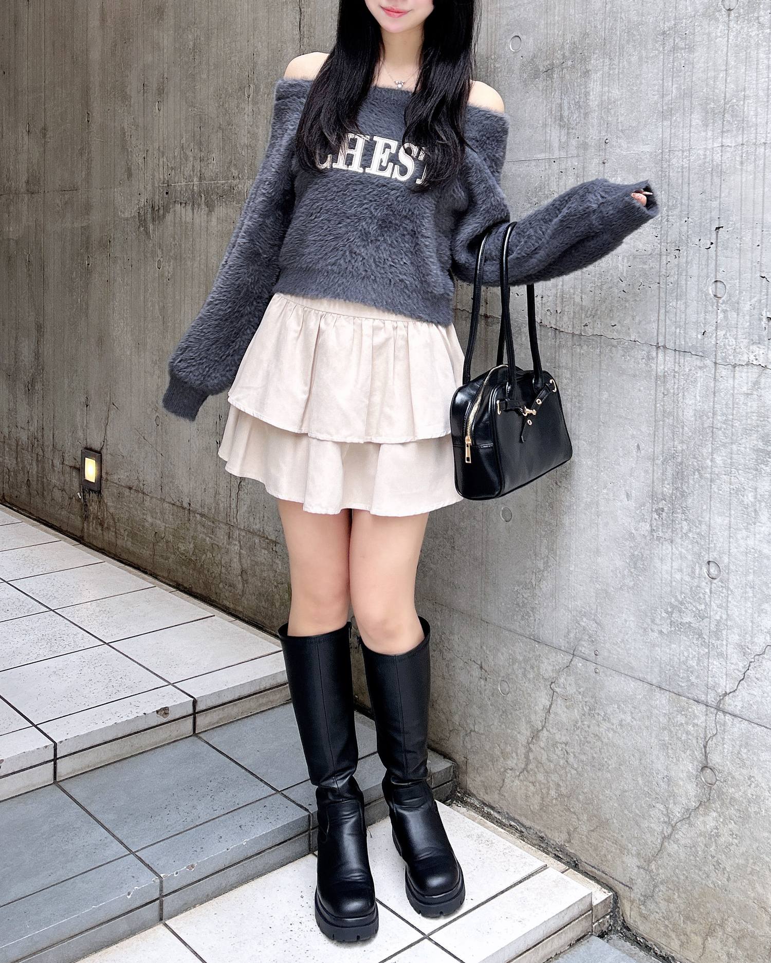 【ふわふわ感がたまらない!大人かわいいオフショルシャギーニット】