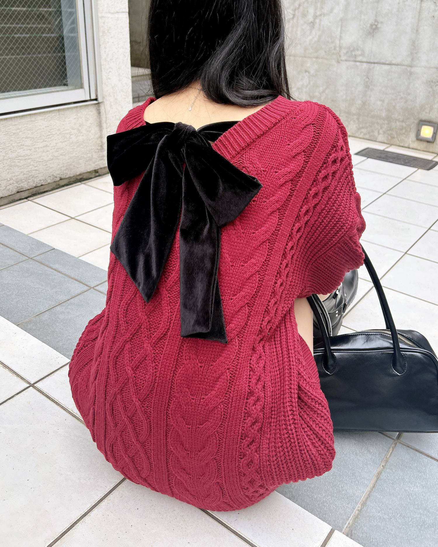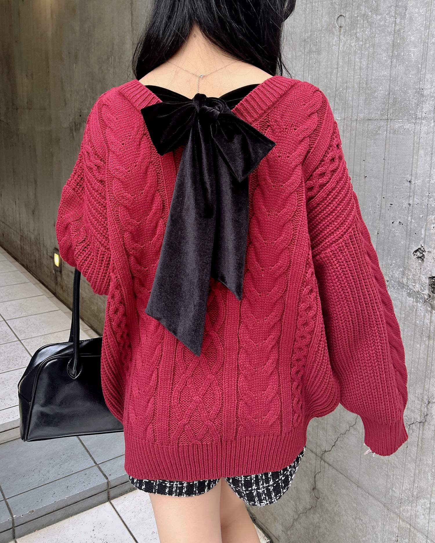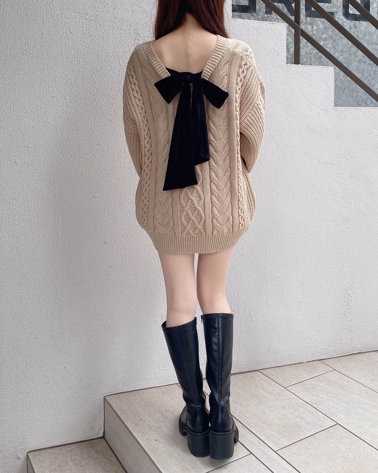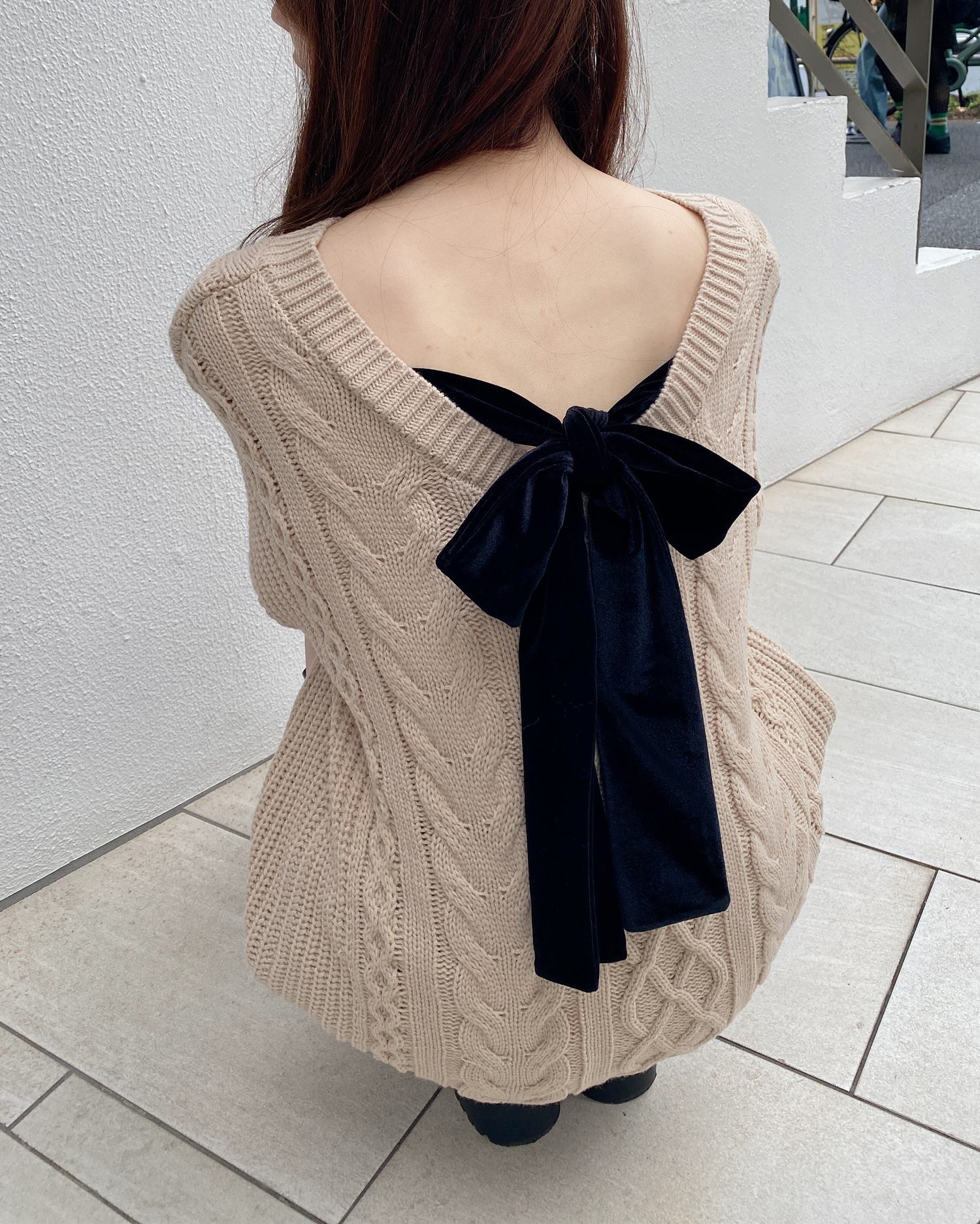 背面のベロアリボンがポイントの冬らしさ満載のチュニックニットです。