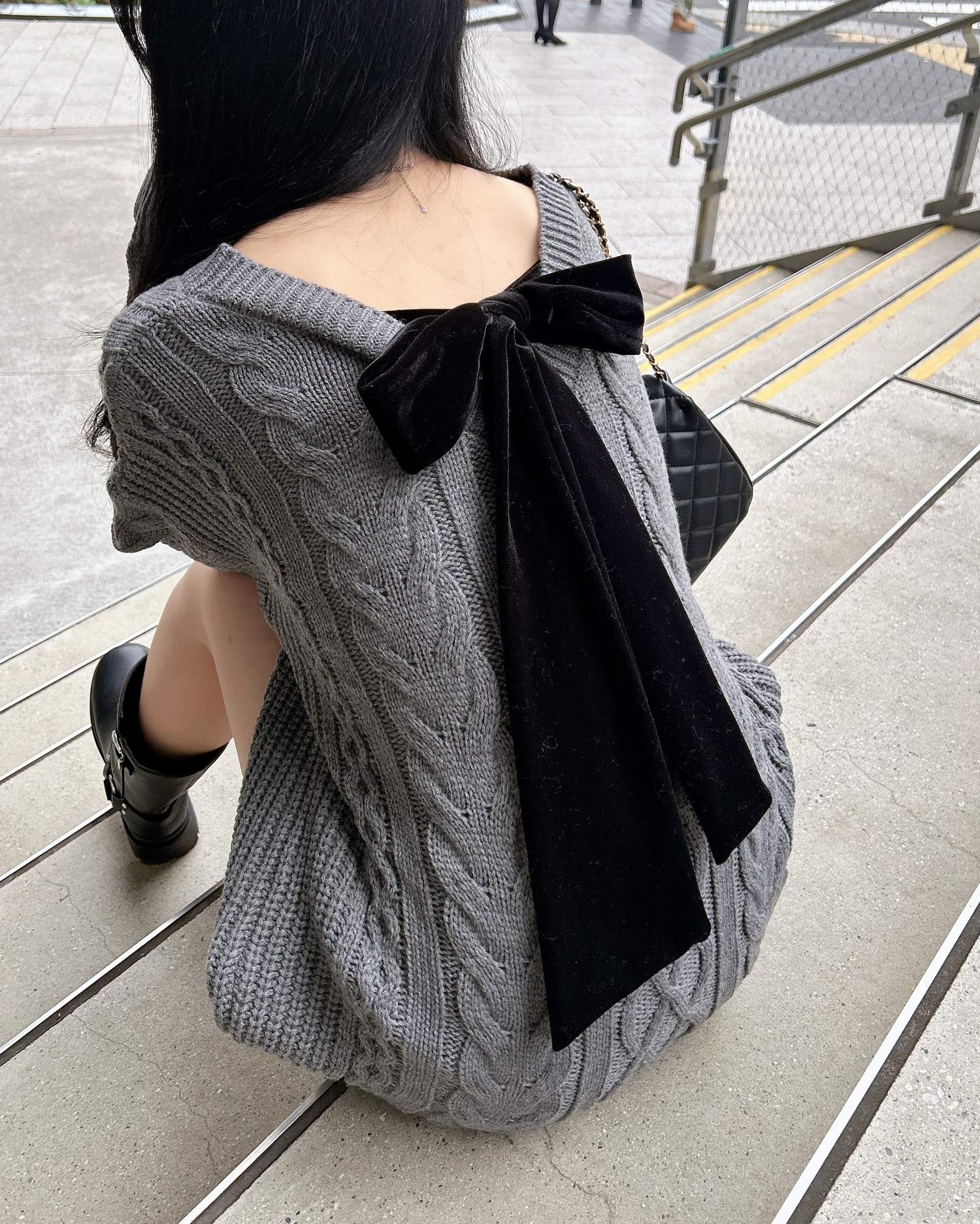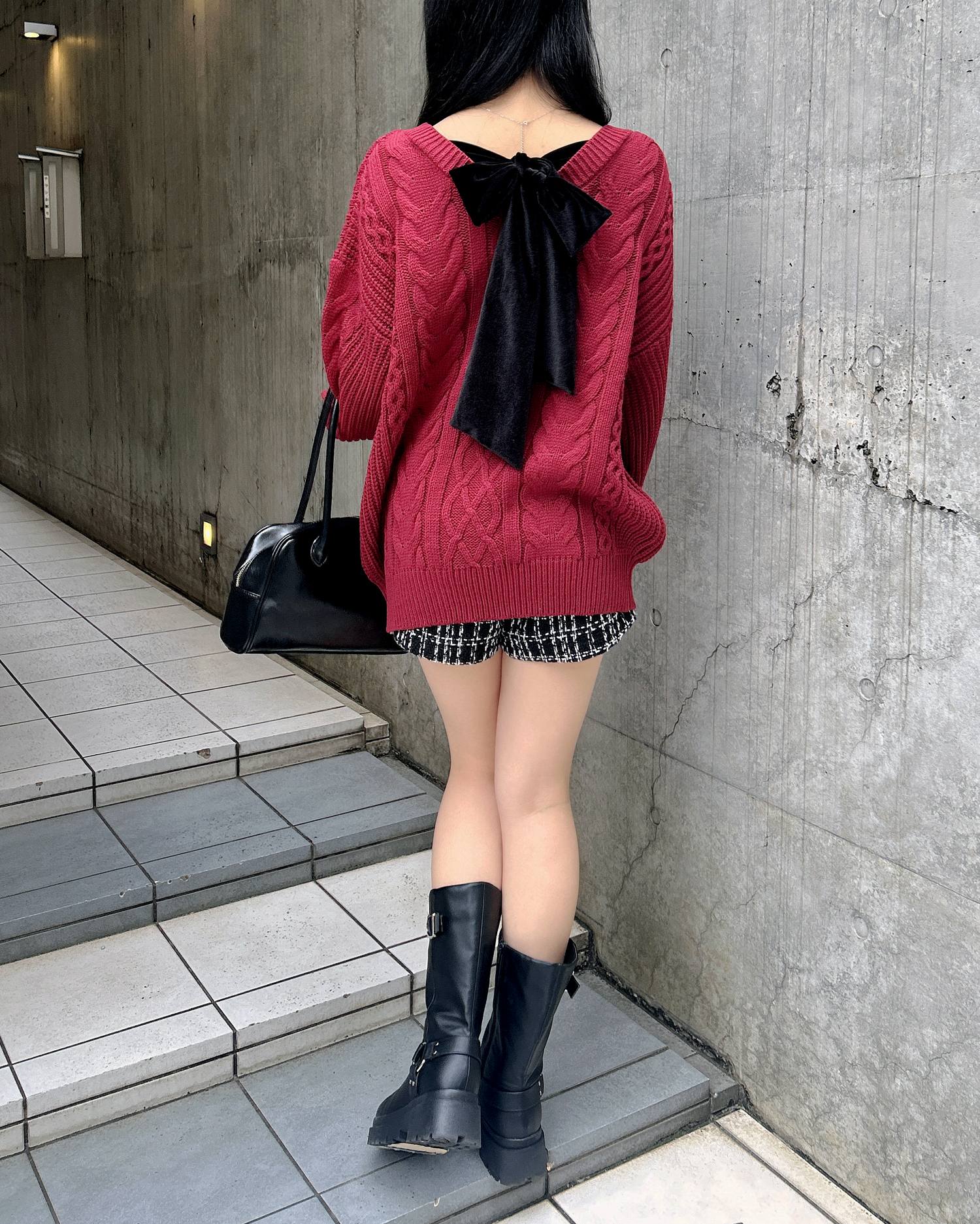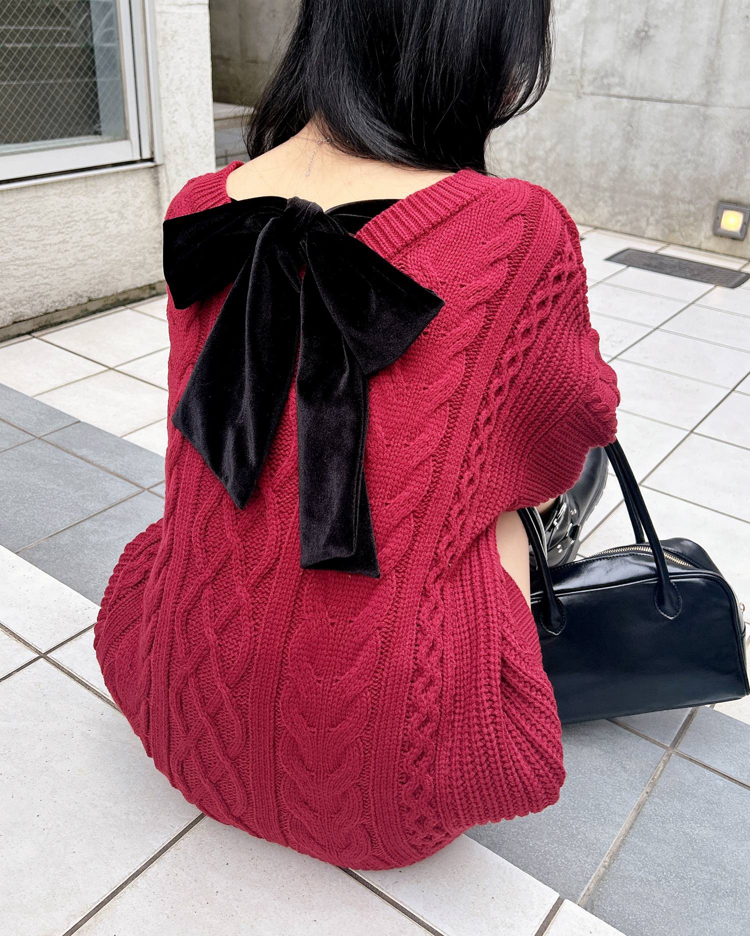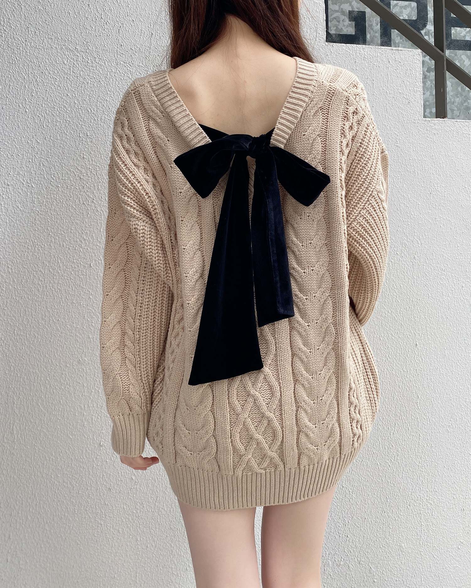 背面のベロアリボンがポイントの冬らしさ満載のチュニックニットです。
