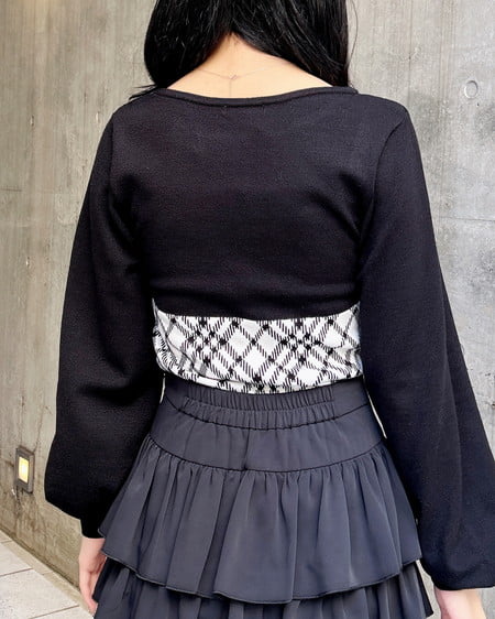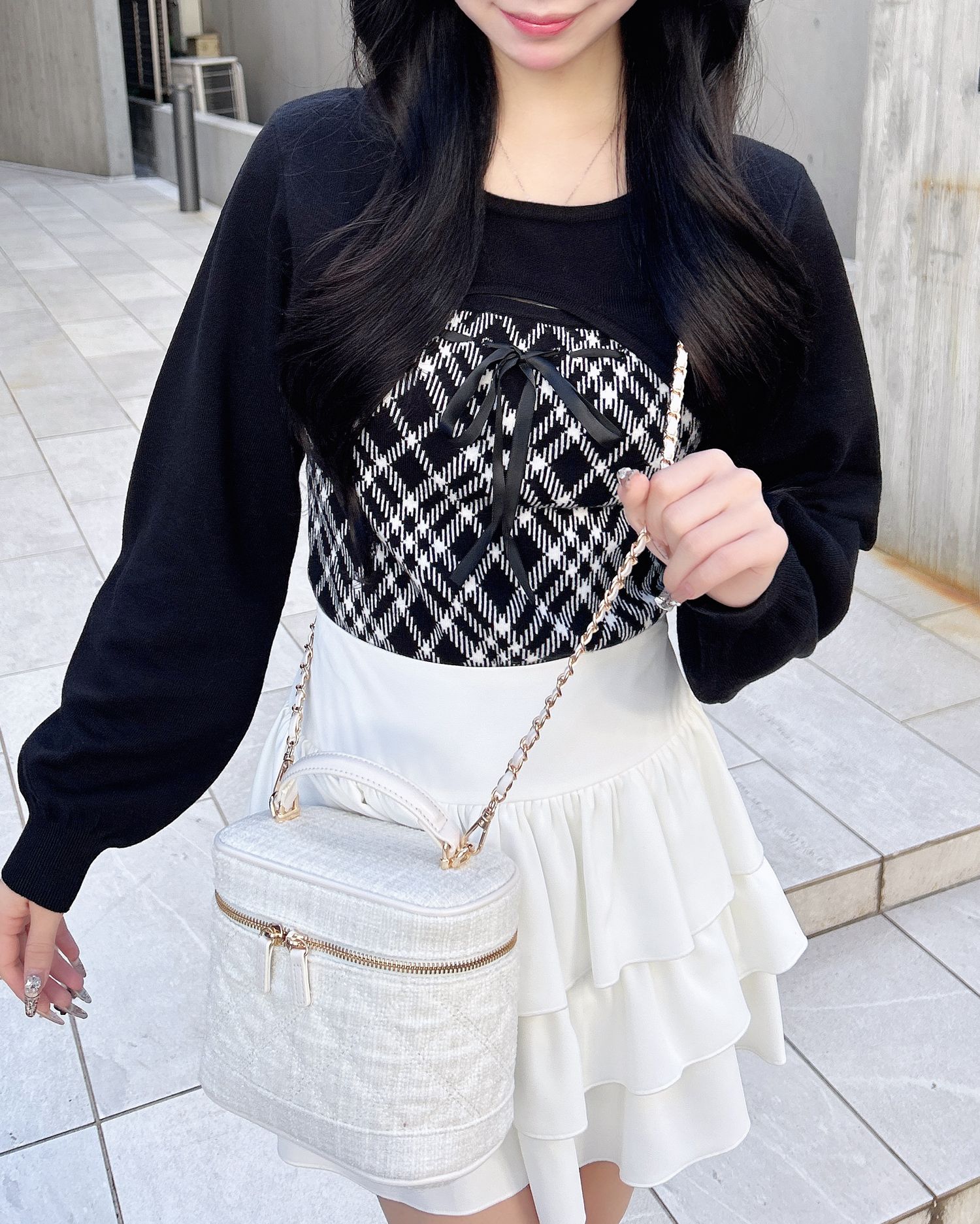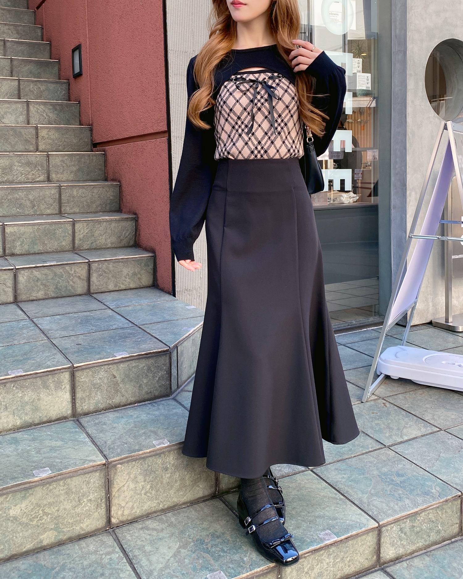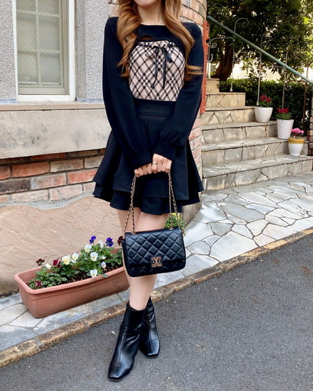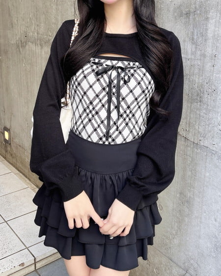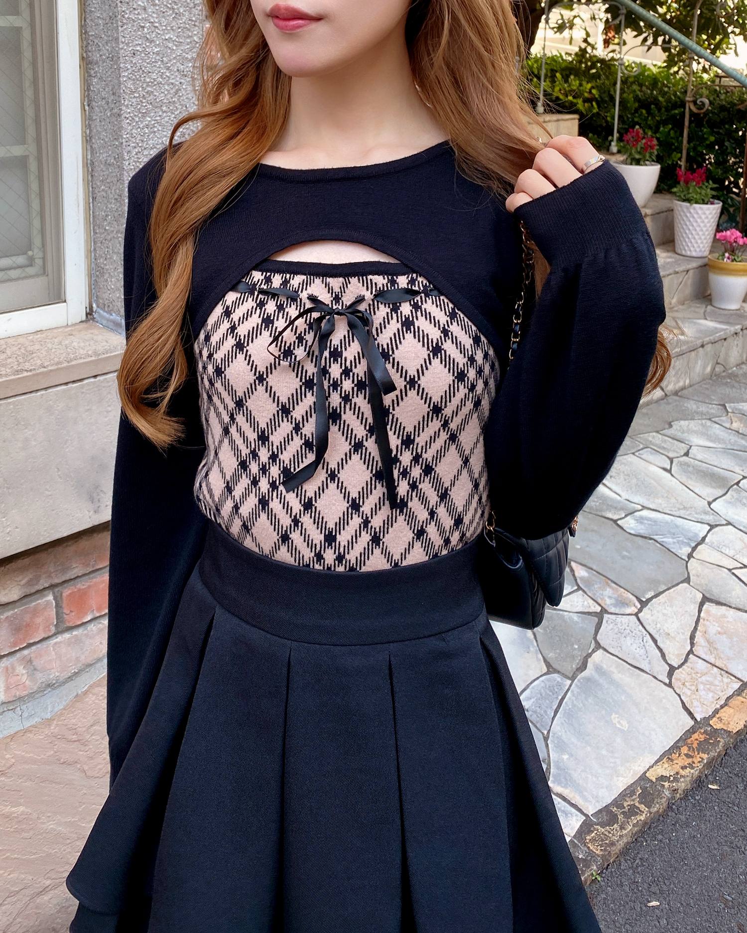 胸元のリボンとチェック柄がコーデのアクセントになり、これを着るだけで