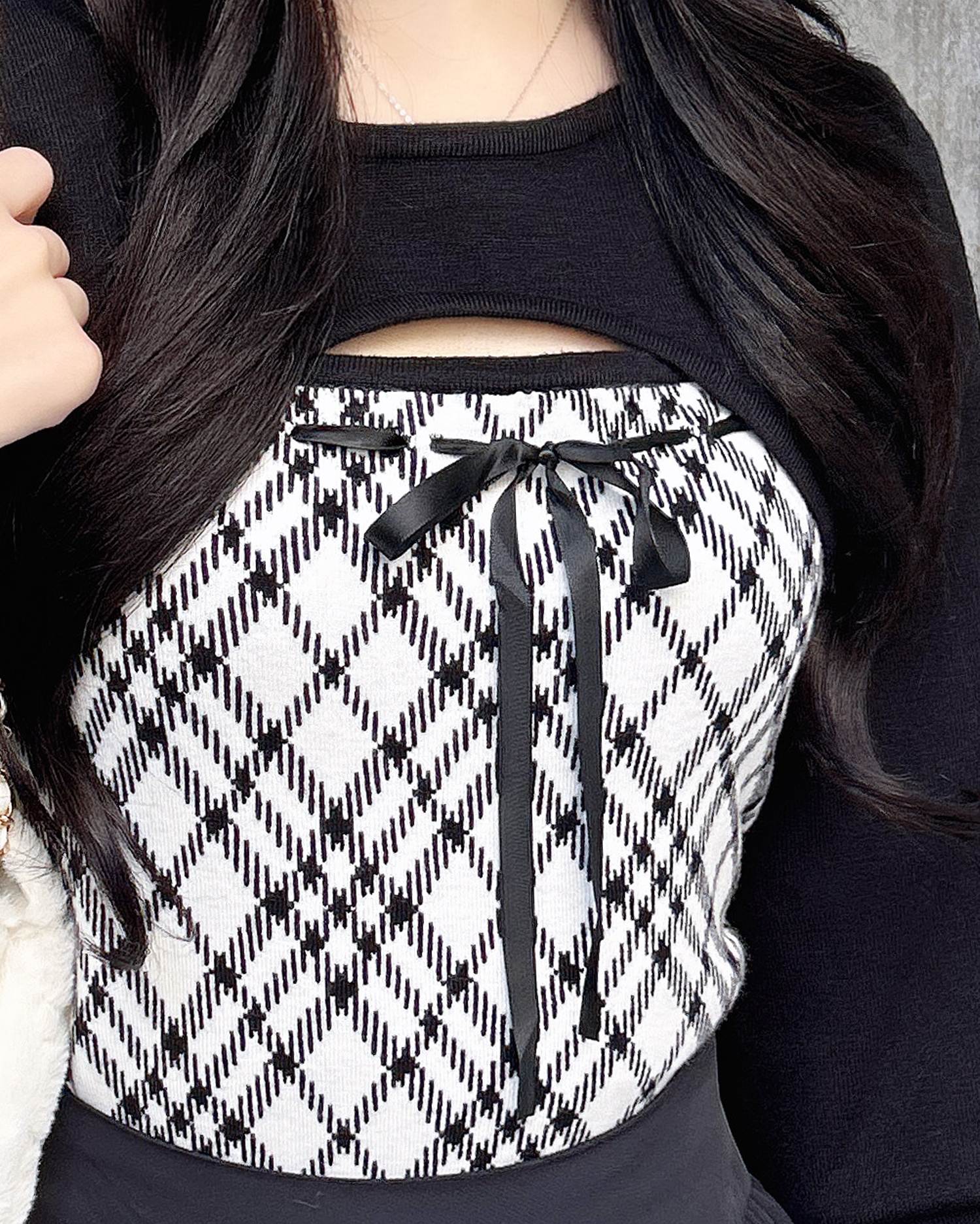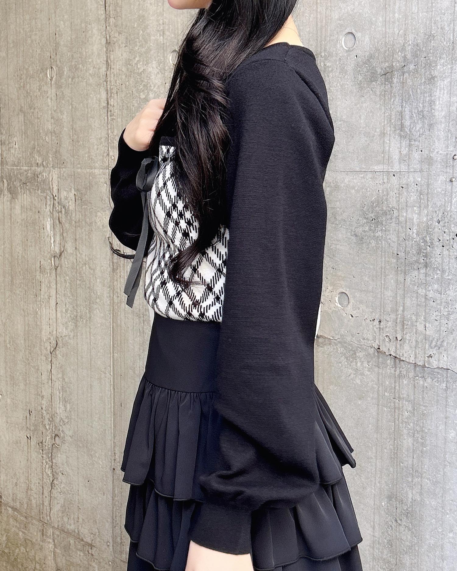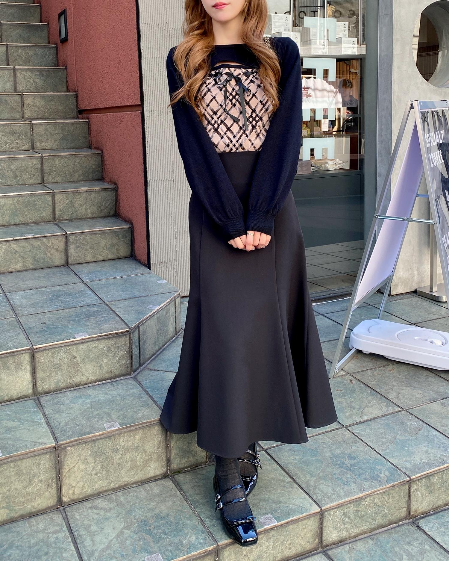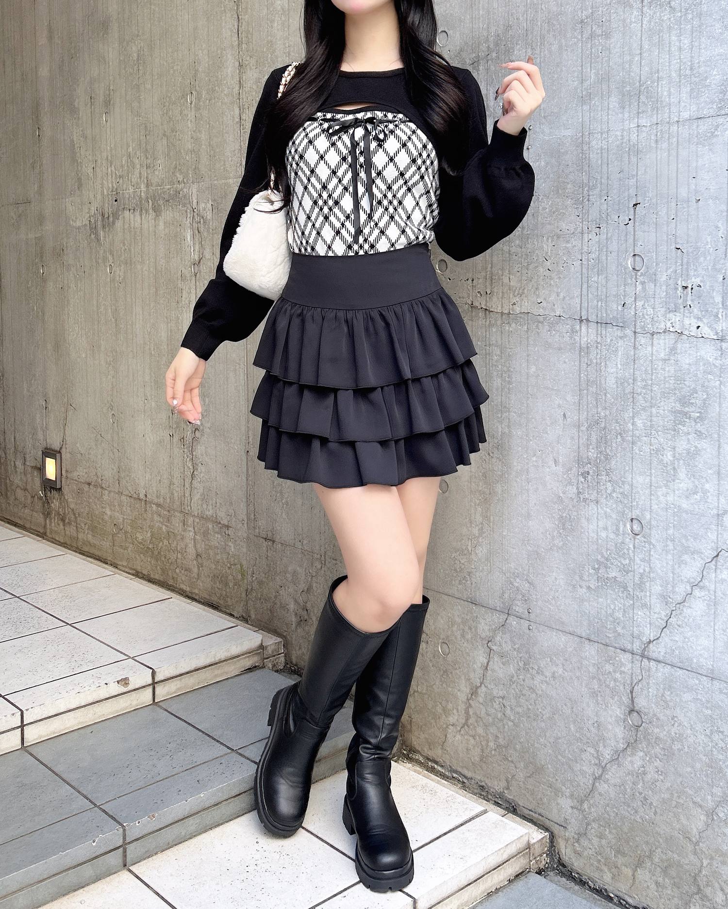 胸元のリボンとチェック柄がコーデのアクセントになり、これを着るだけで