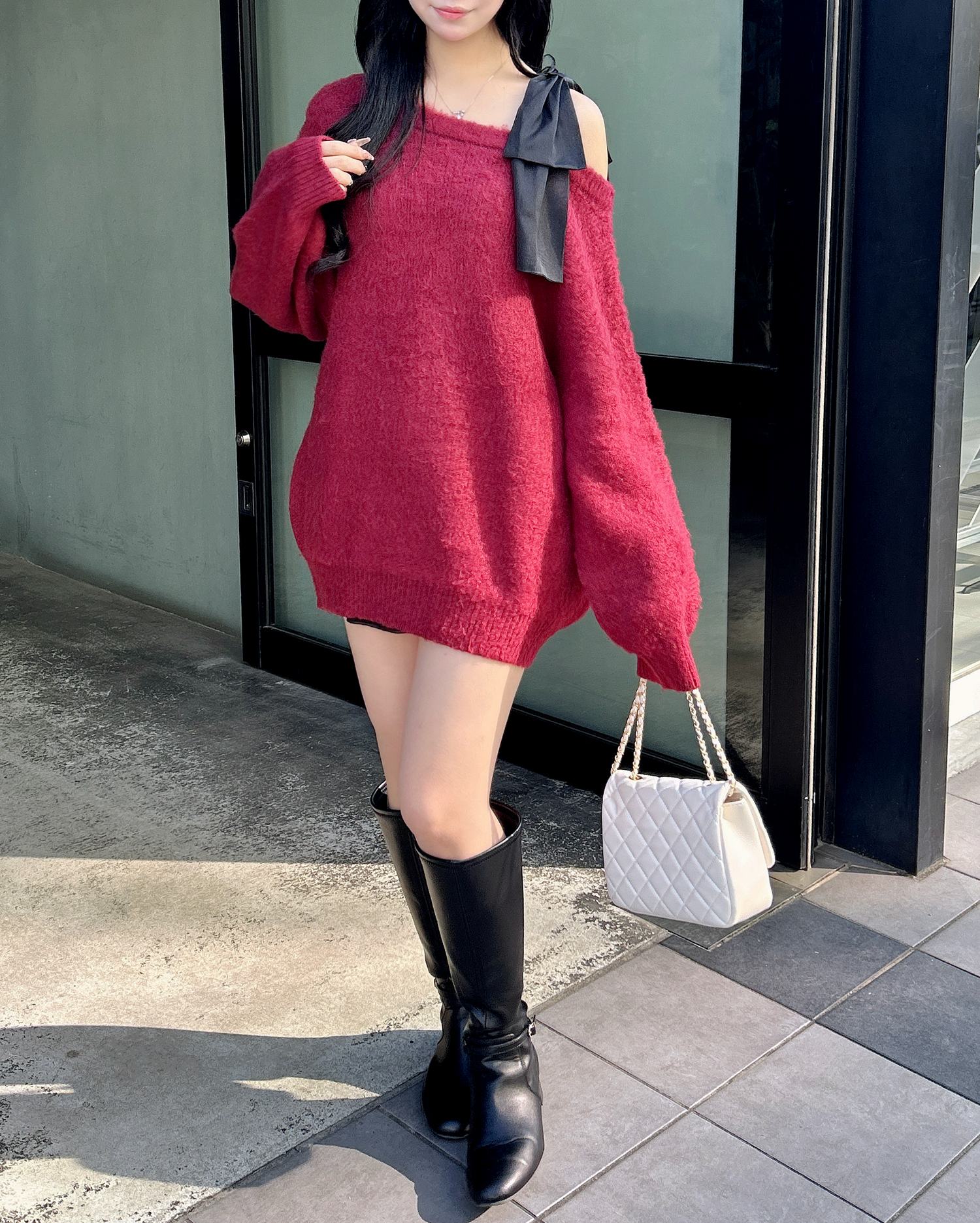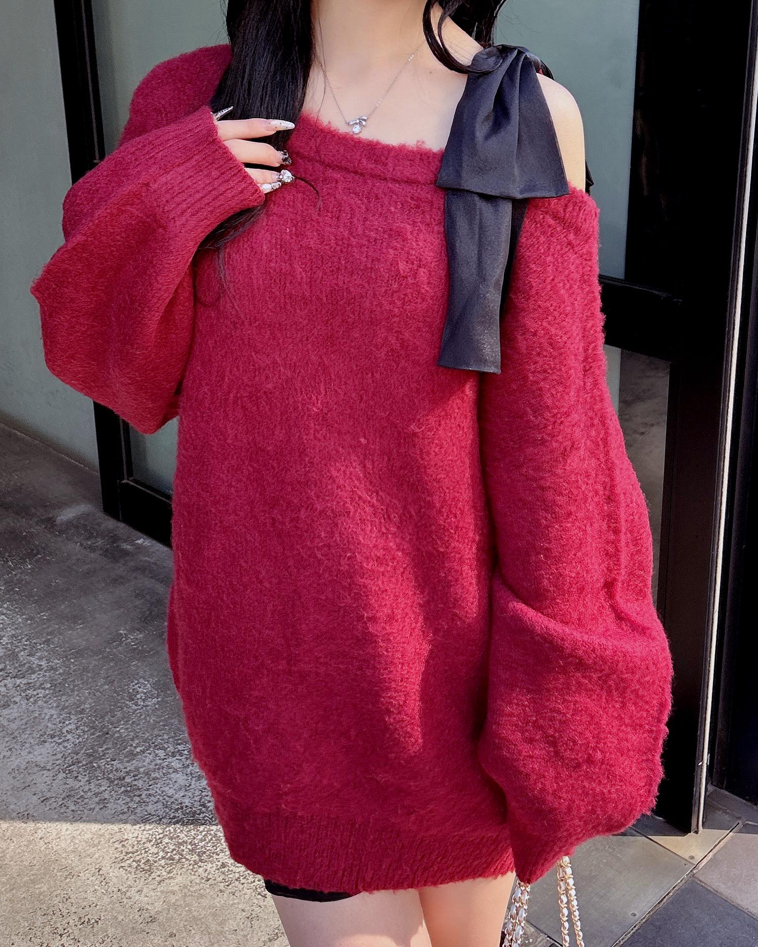 【定番の肩リボンデザインにチュニックニットタイプが登場!】