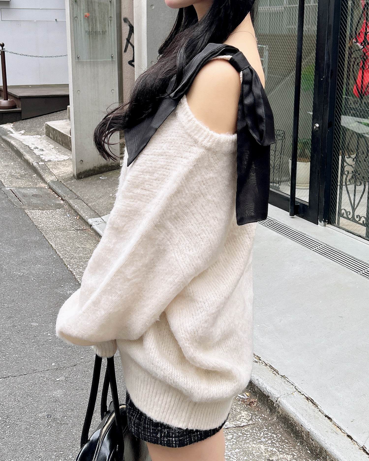 ・1254-900253【肩リボンワンショルフェザーニット】⇒こちら