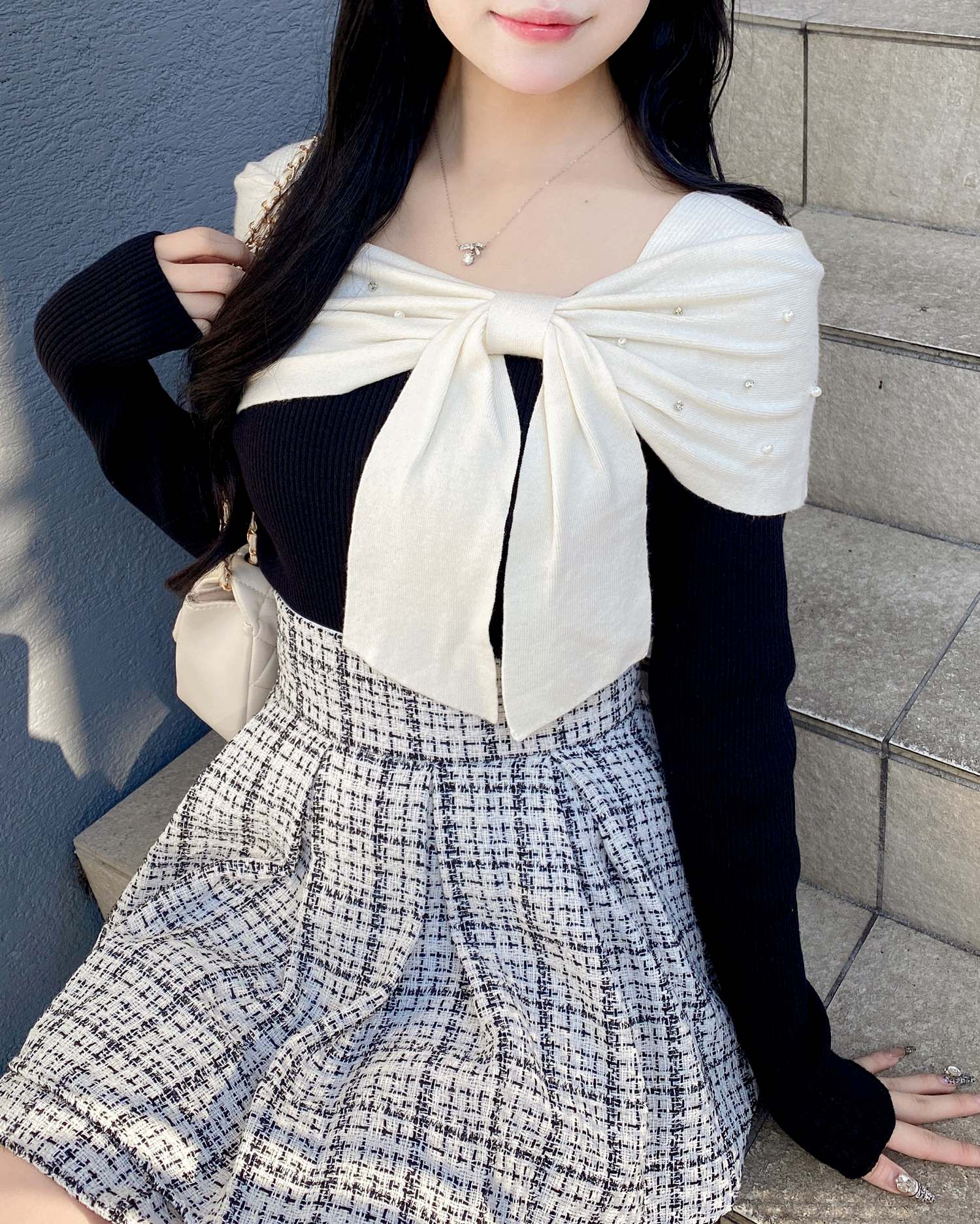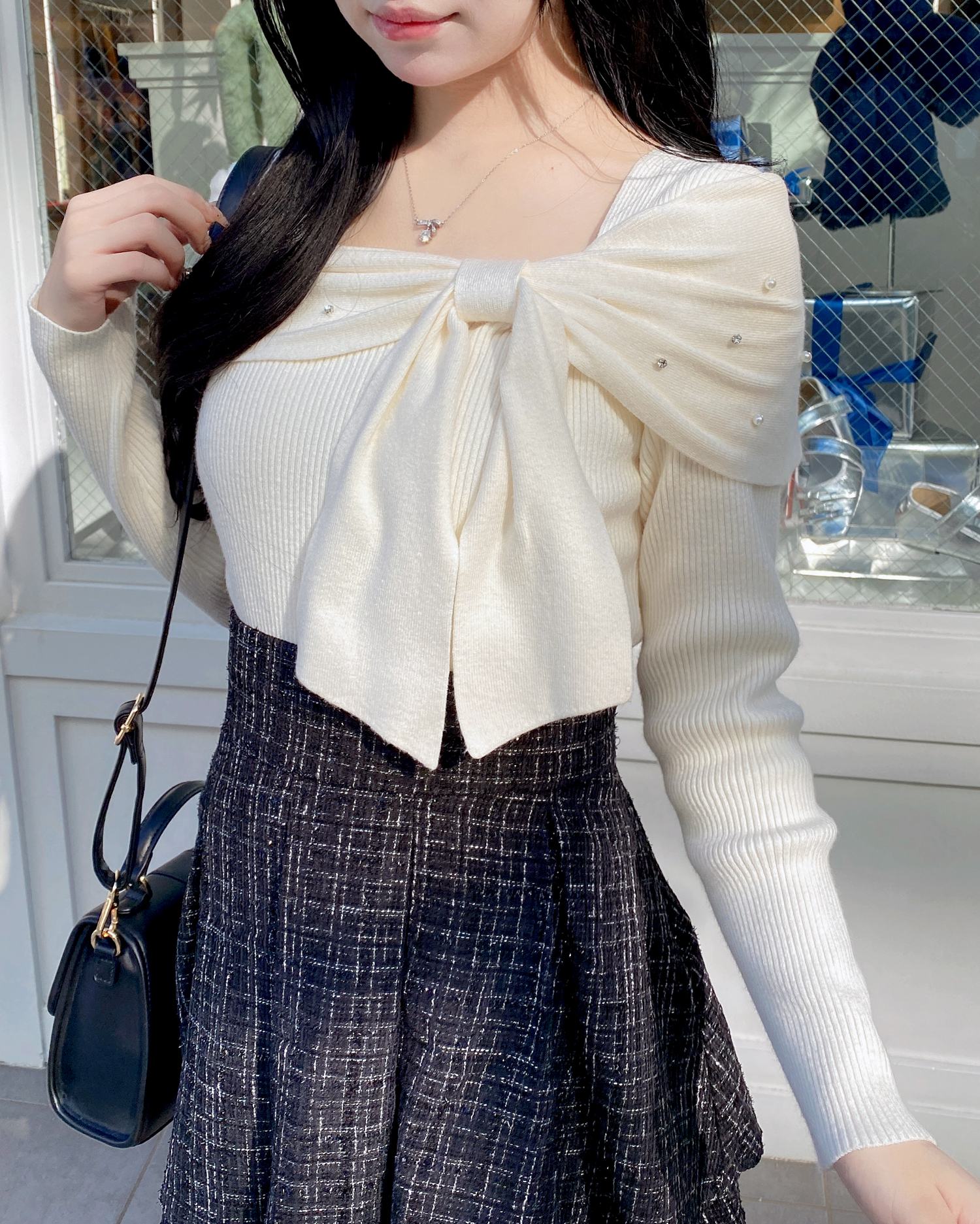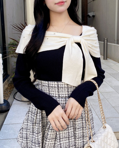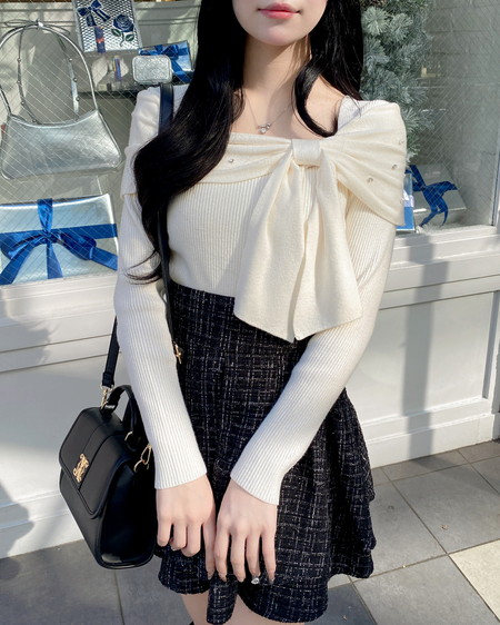 オフショルデザインと大きなリボンが特徴のニットが登場!