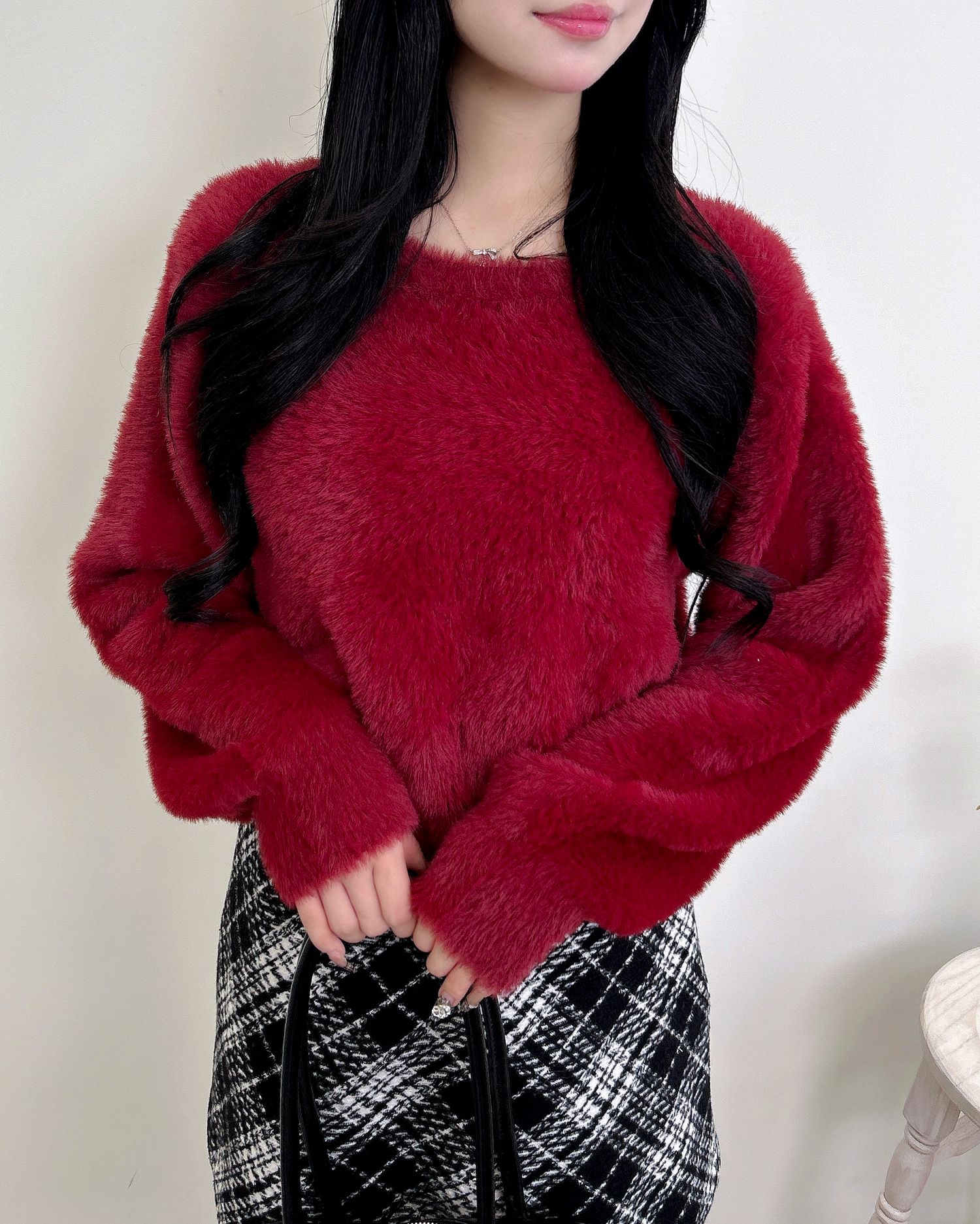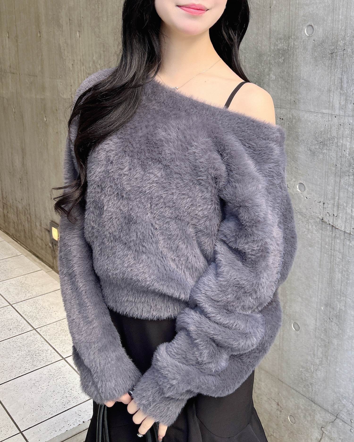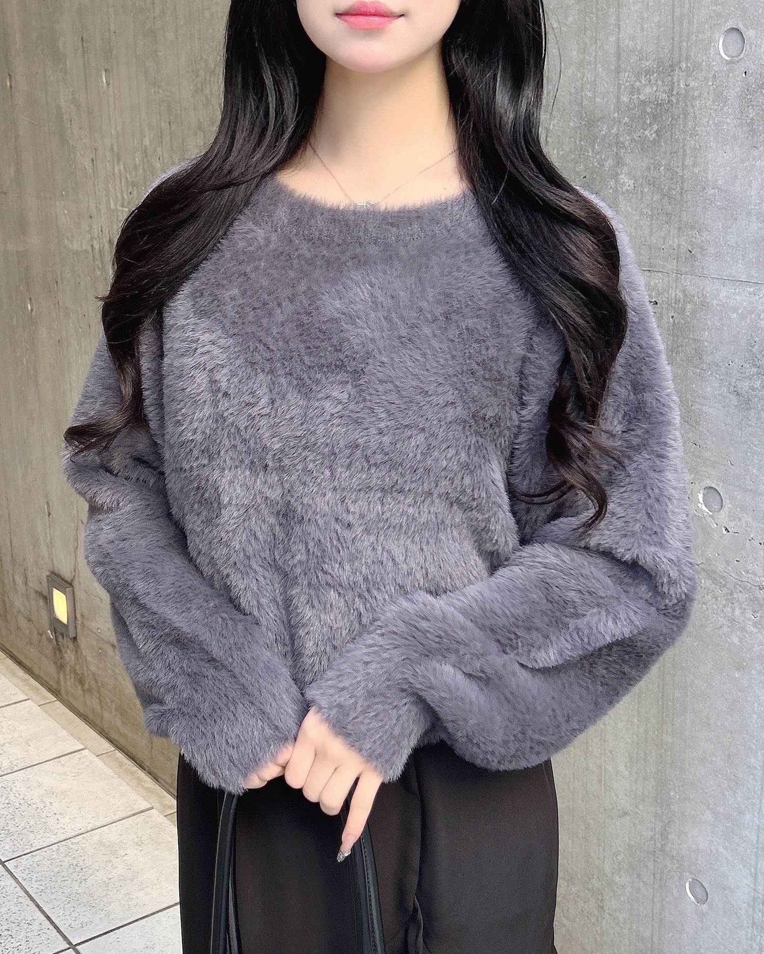 毛足の長いふわふわのシャギーニットが