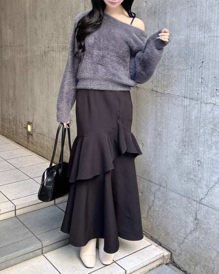 ロング丈のボトムスと合わせれば大人っぽいフェミニンな仕上がりに。