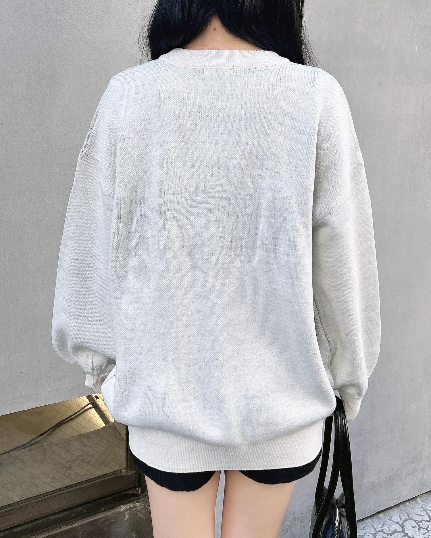 ゆったりとした身頃とヒップにかかる長めのチュニック丈でラフコーデが完成。