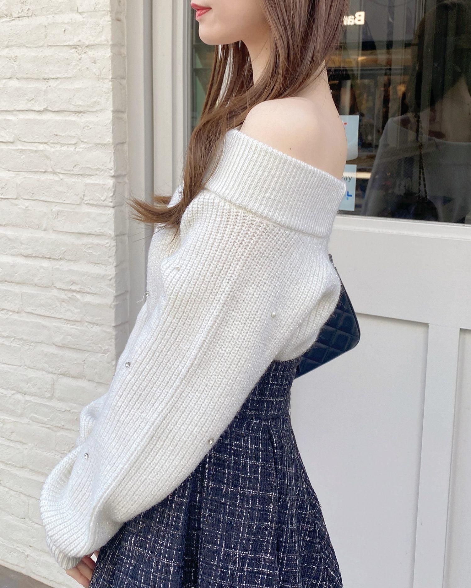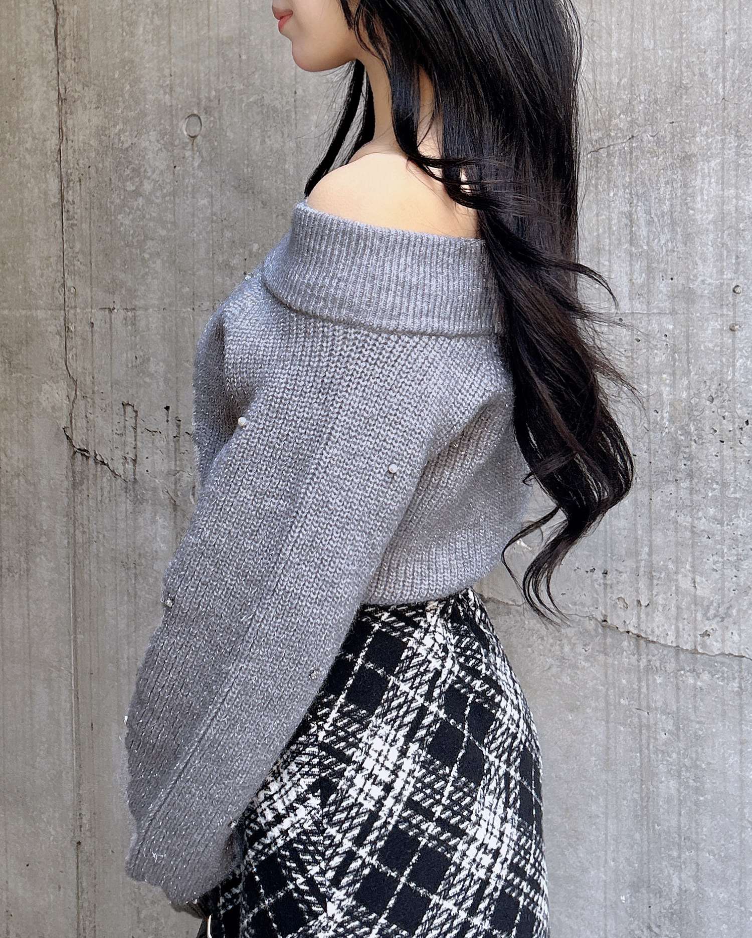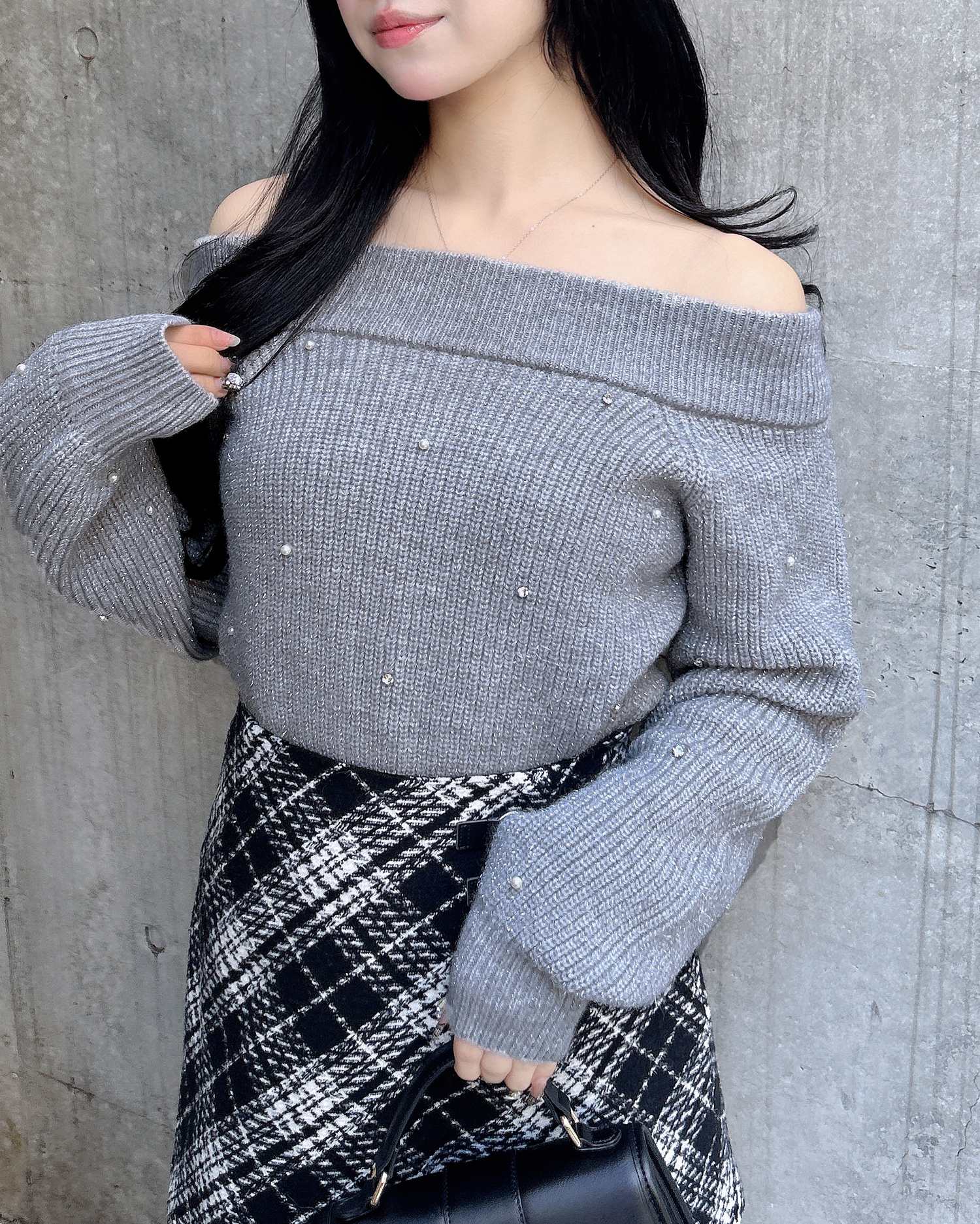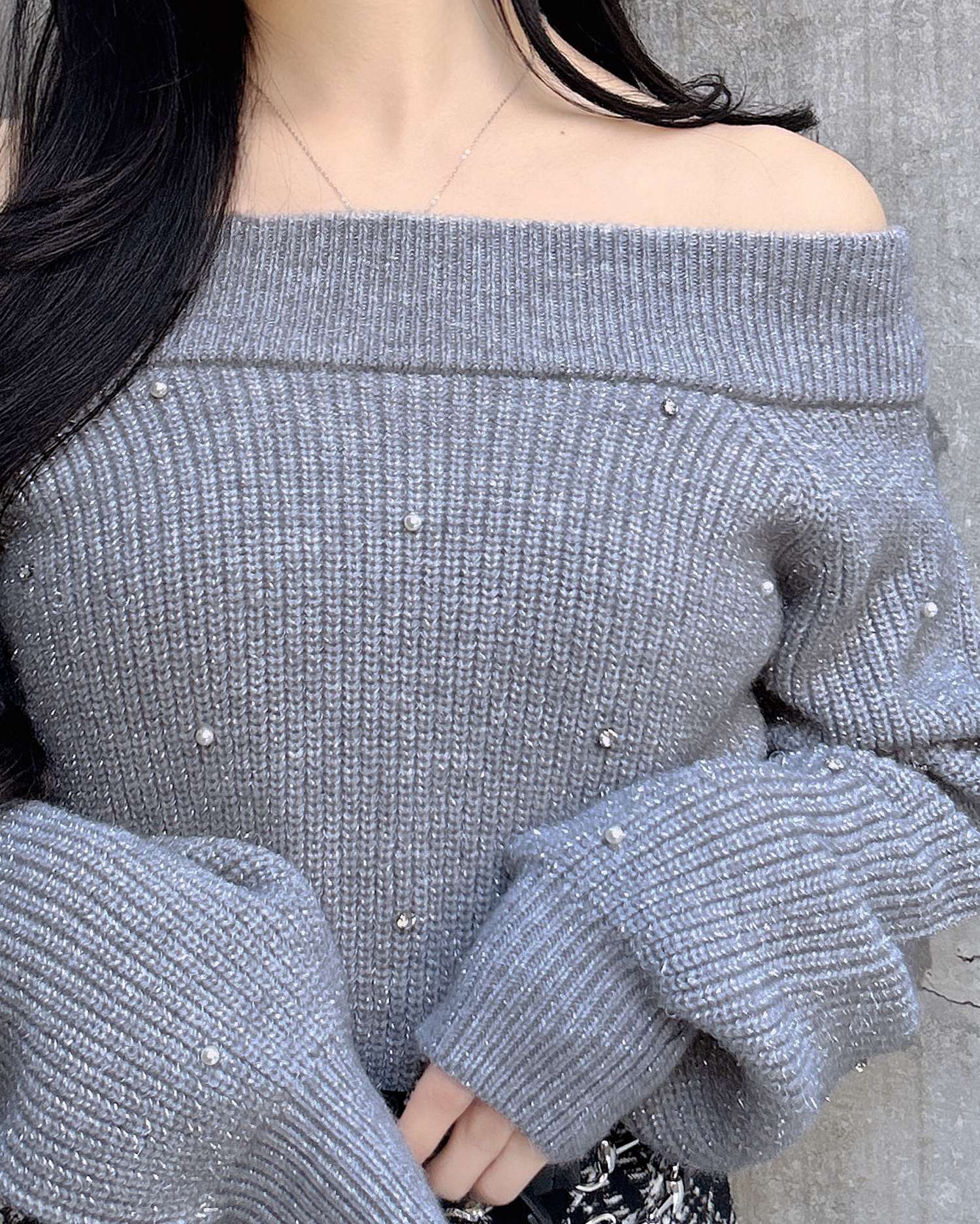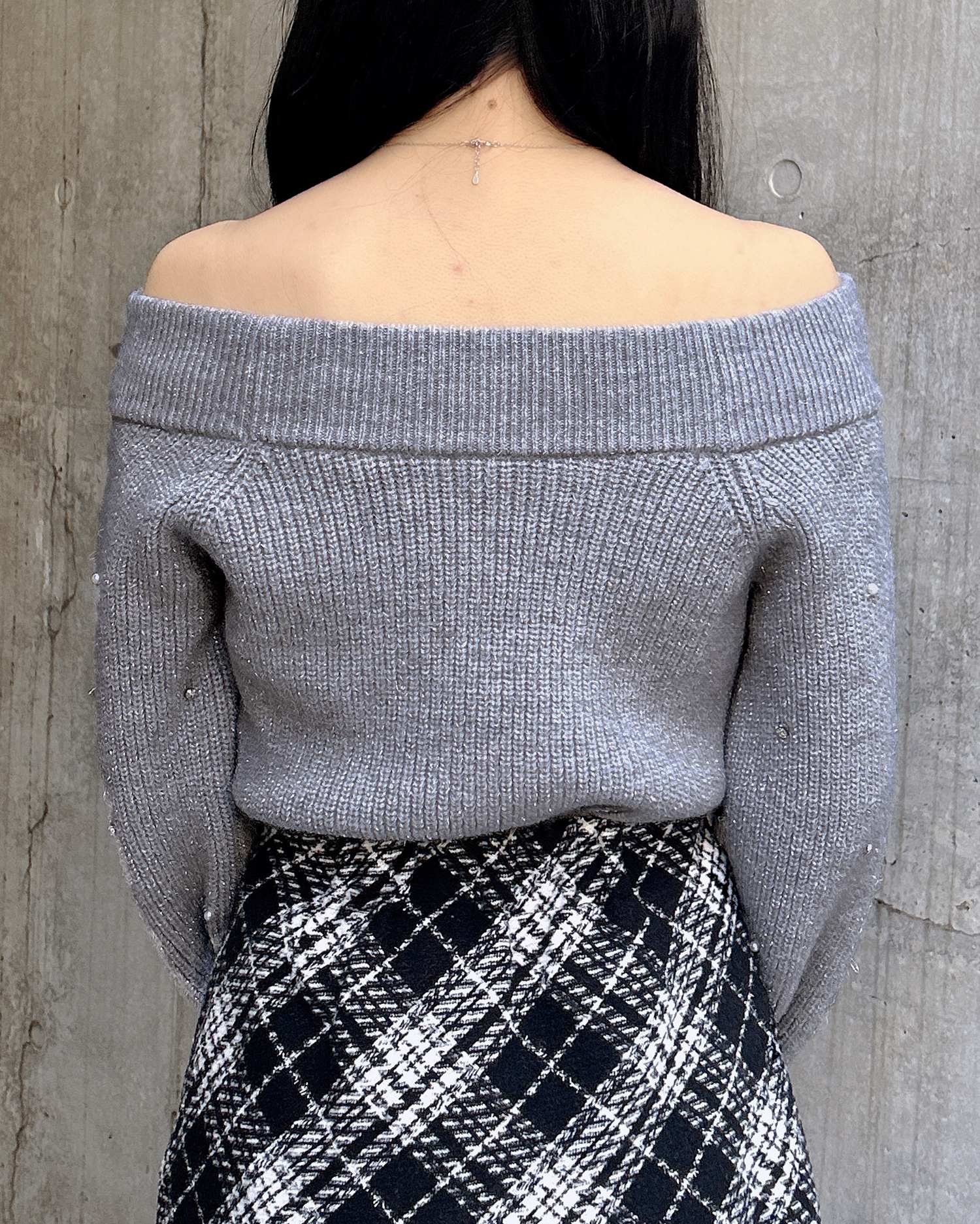 【キラキラのビジューがかわいい♡オフショルニット】