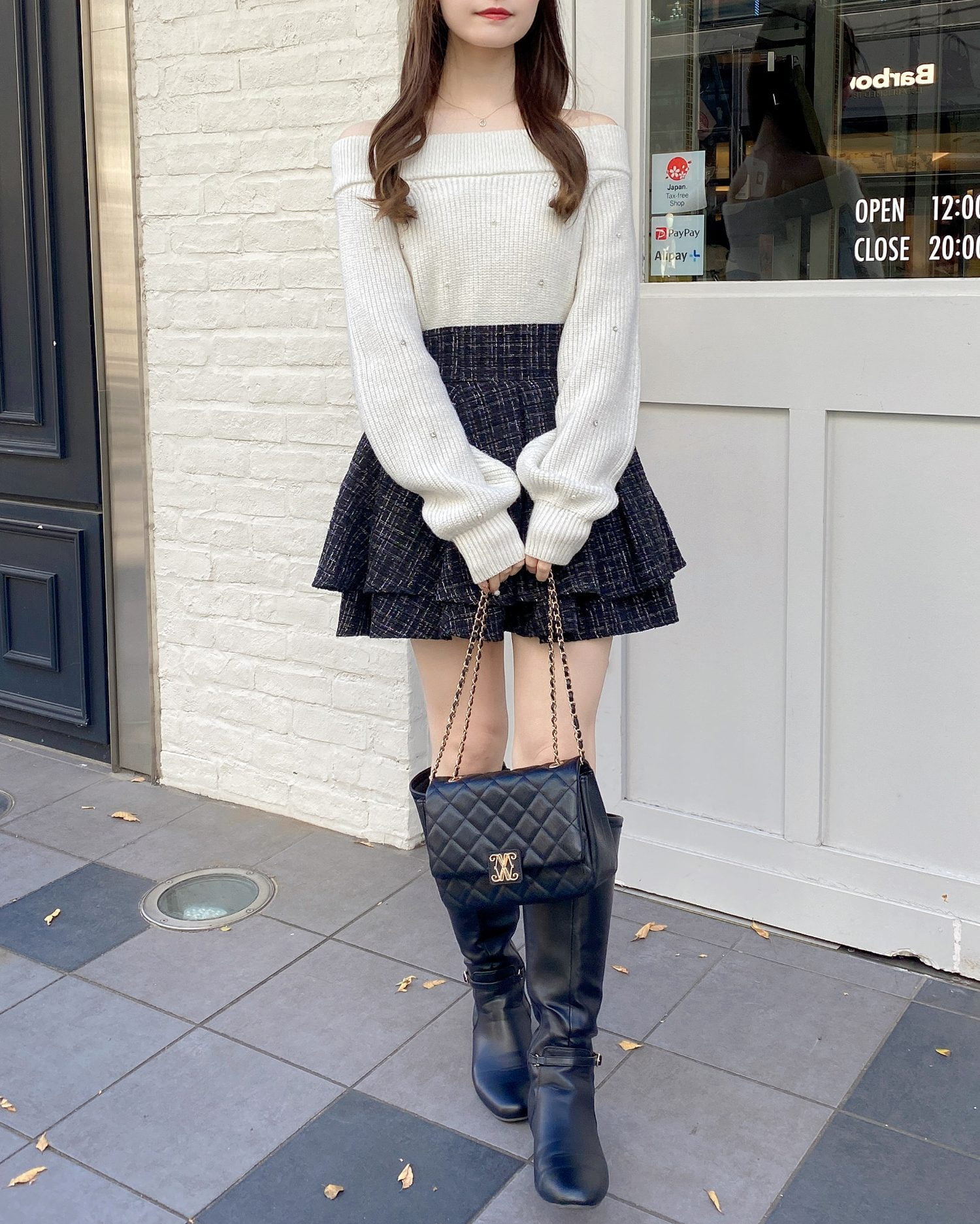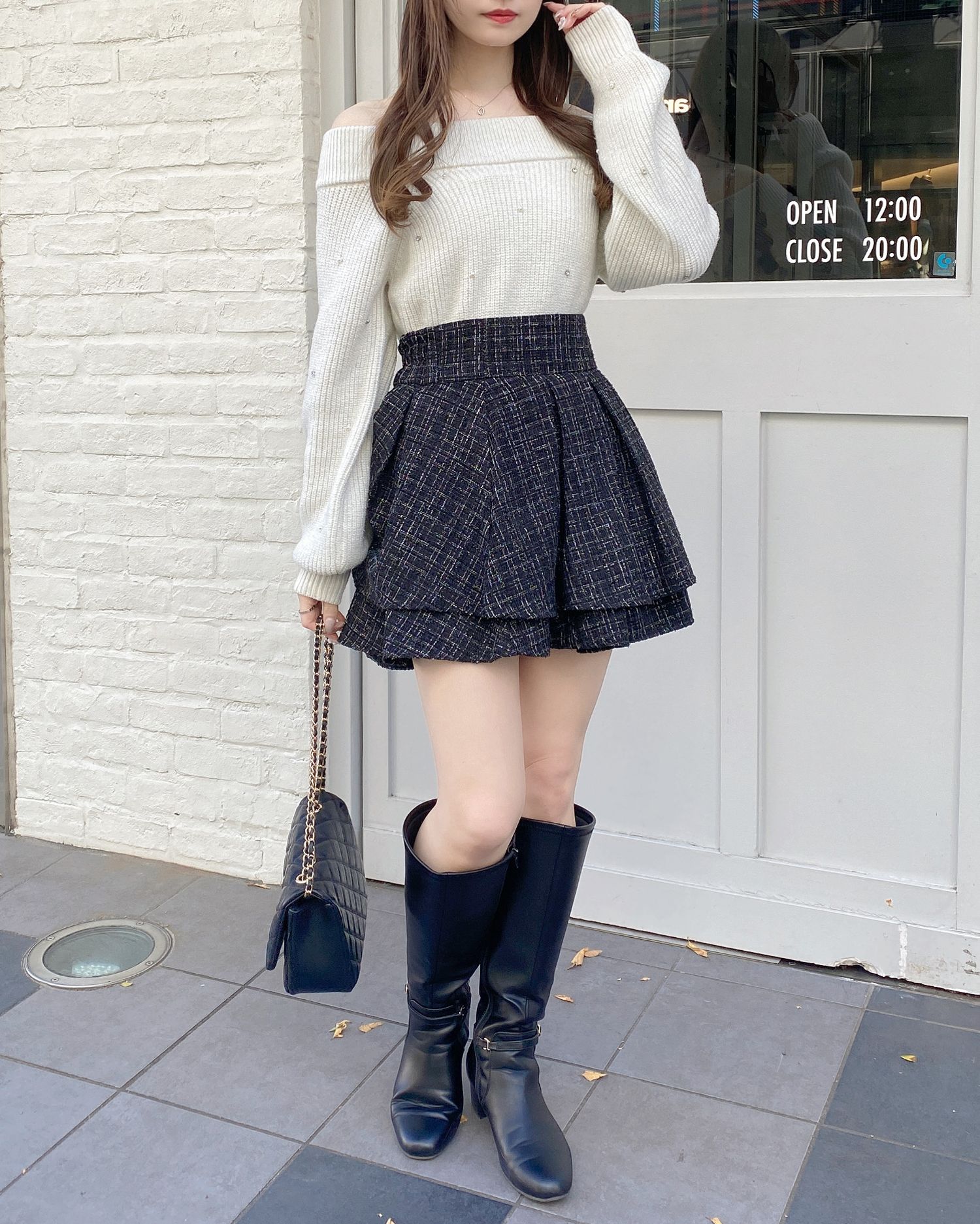 ミニスカートと合わせてガーリーなスタイリングに。