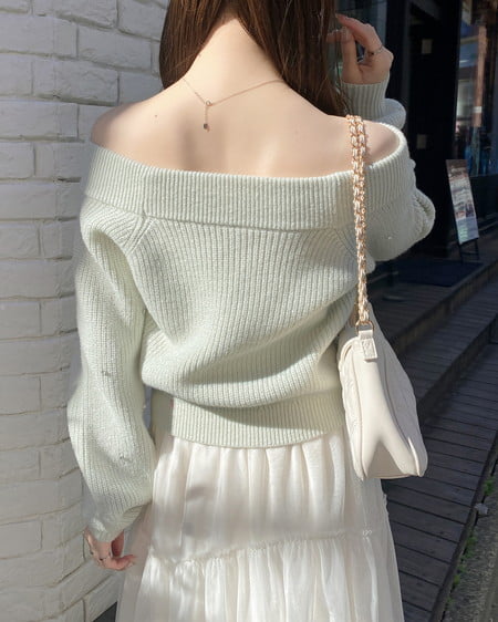 フェミニンな雰囲気を演出してくれるオフショルニット。