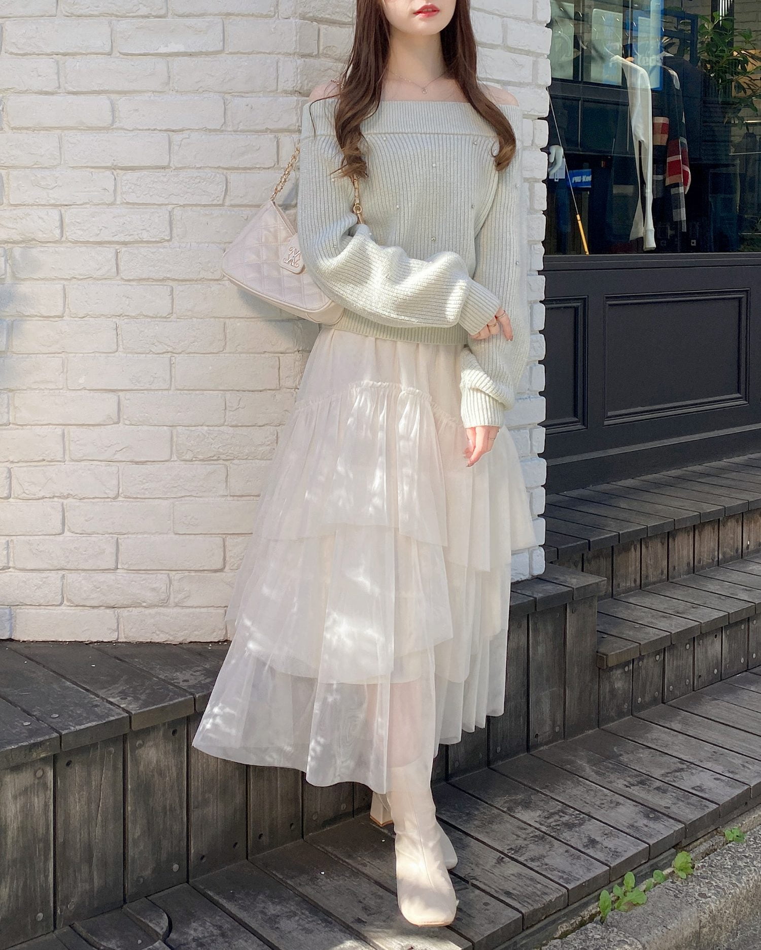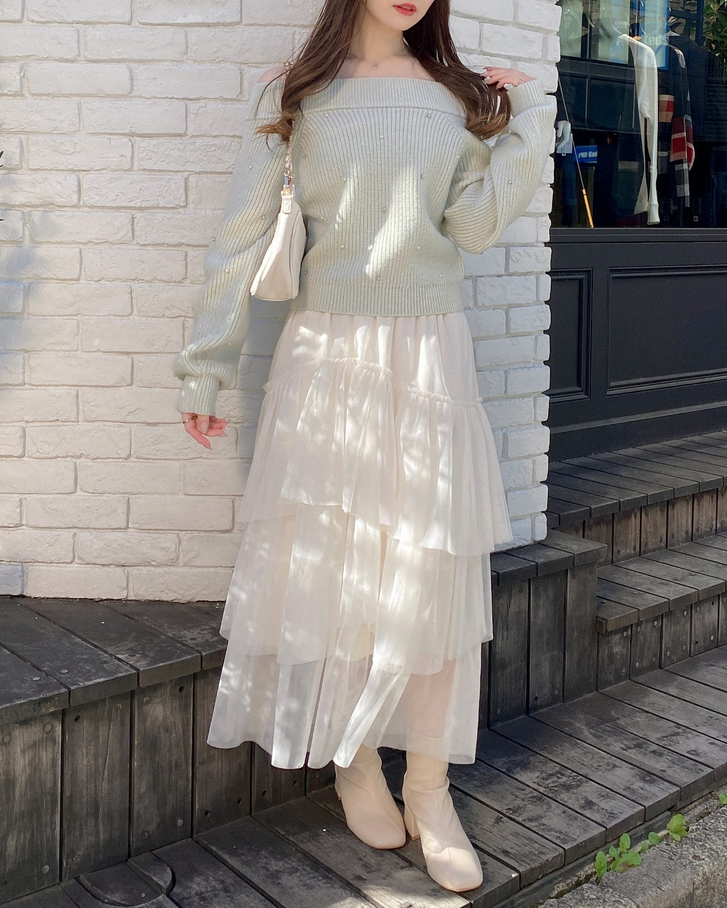 チュールスカートやロングスカートを合わせたフェミニンなコーディネートもおすすめ♪
