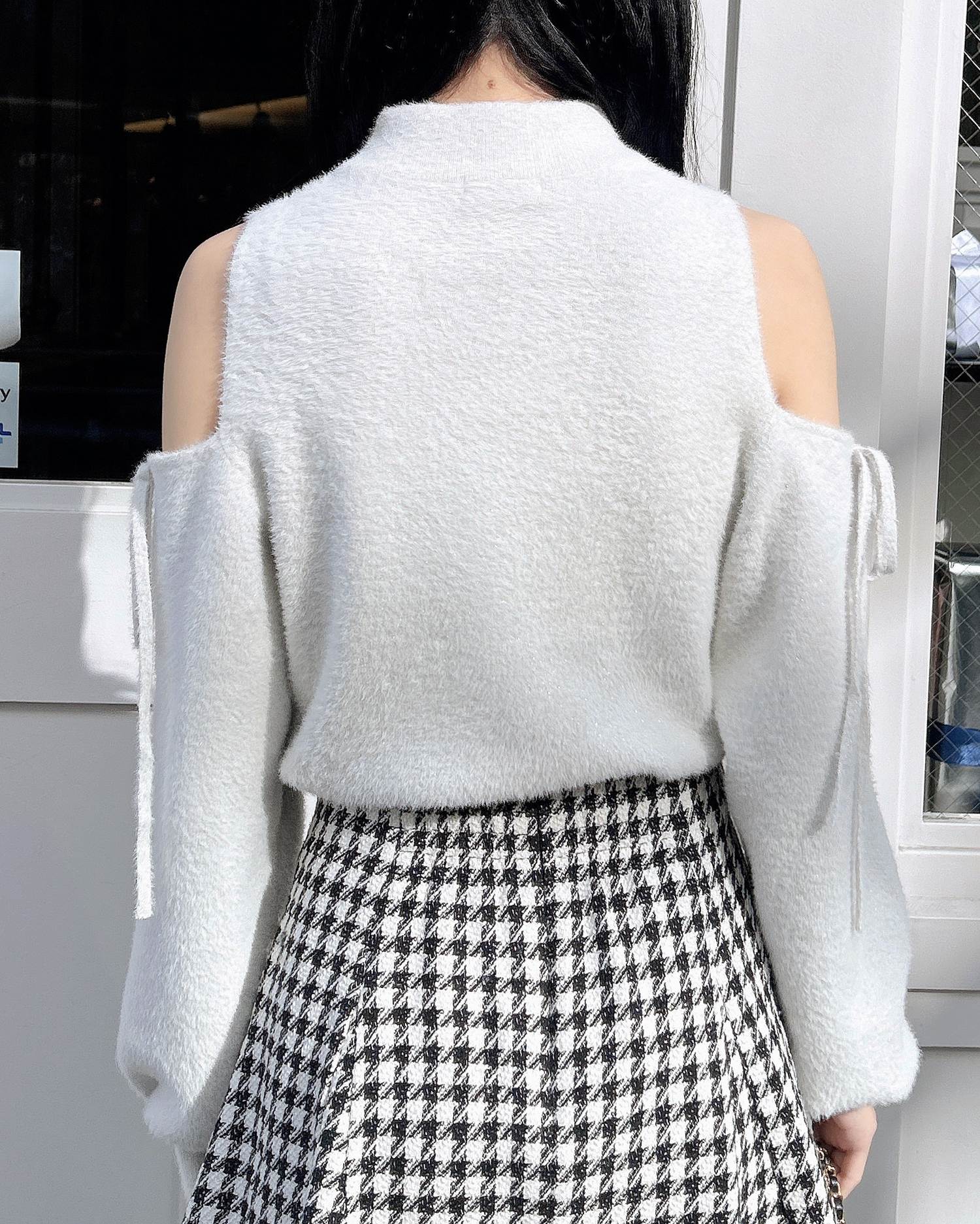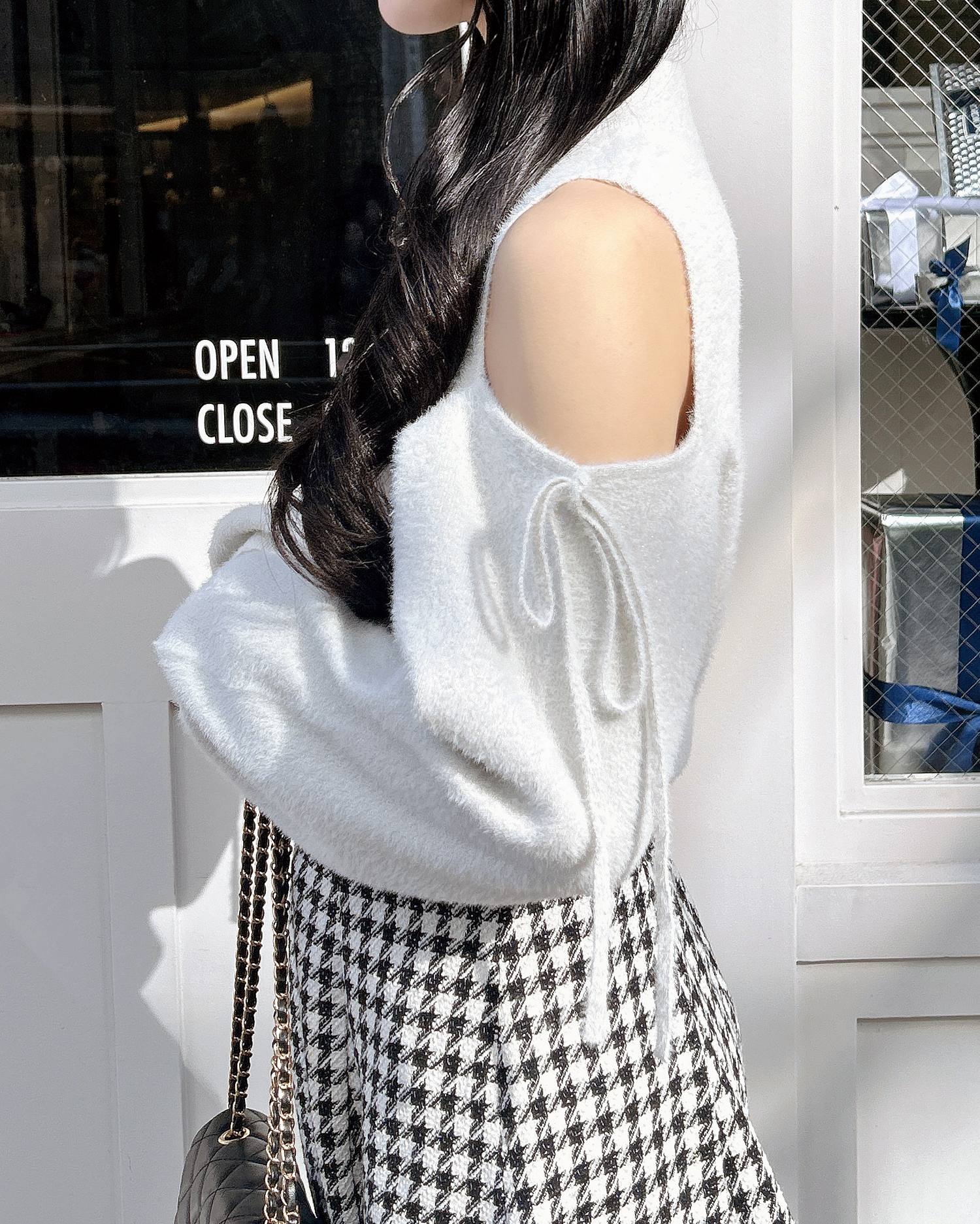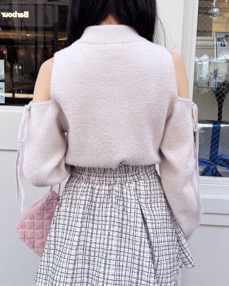 適度な肌見せがフェミニンな雰囲気を演出してくれるあざとかわいいニット♡