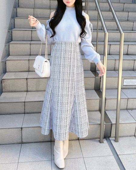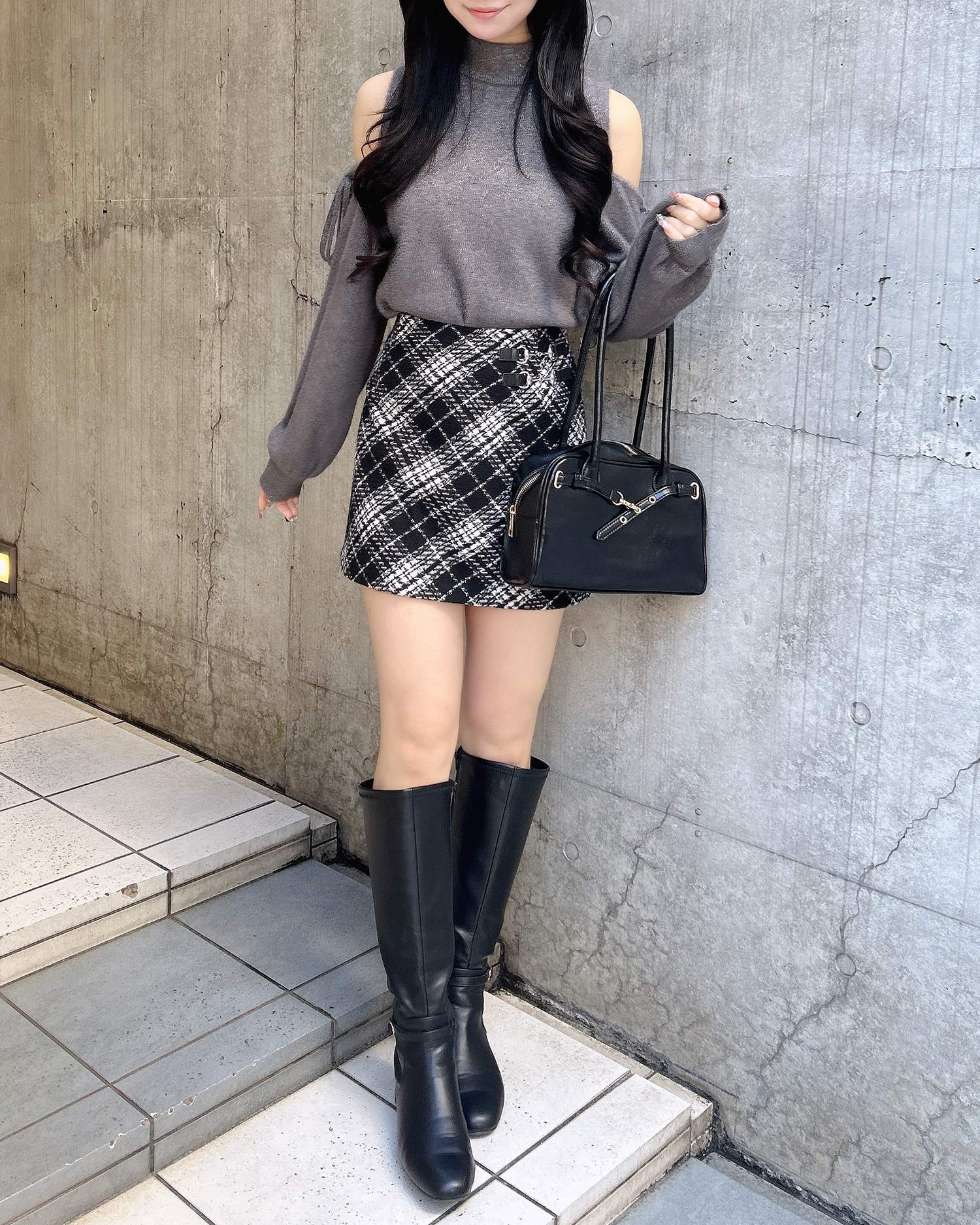 タイトなボトムやロングスカートを合わせると大人っぽい印象に仕上がります。