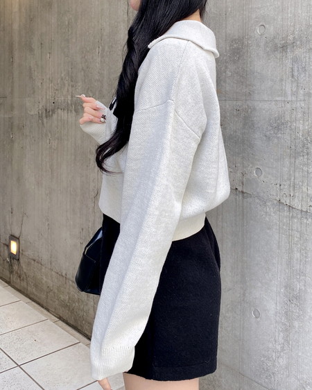 ゆったりとしたシルエットながら、ショート丈ですっきりと着こなせるニットです。