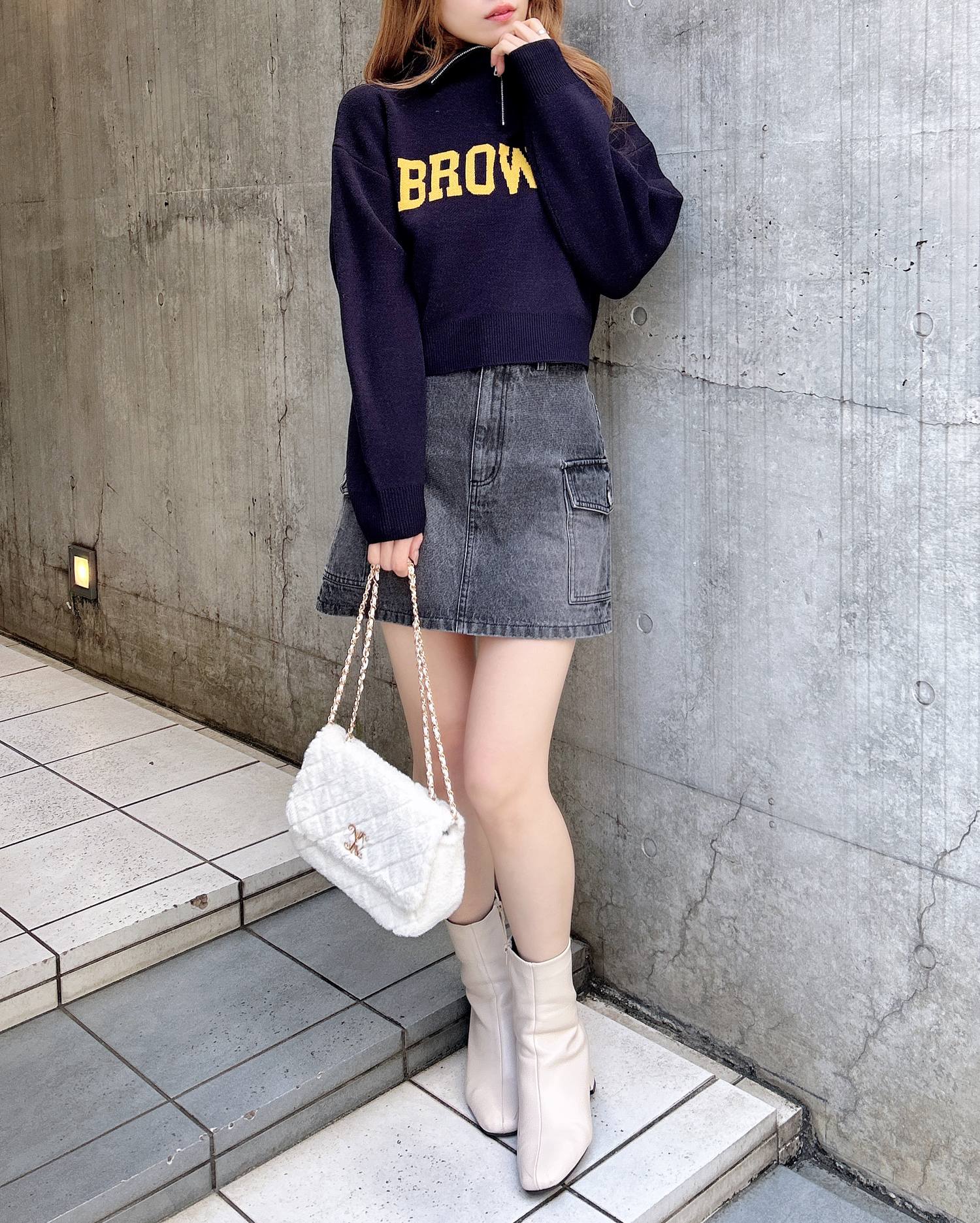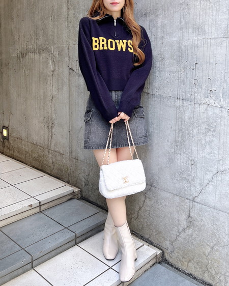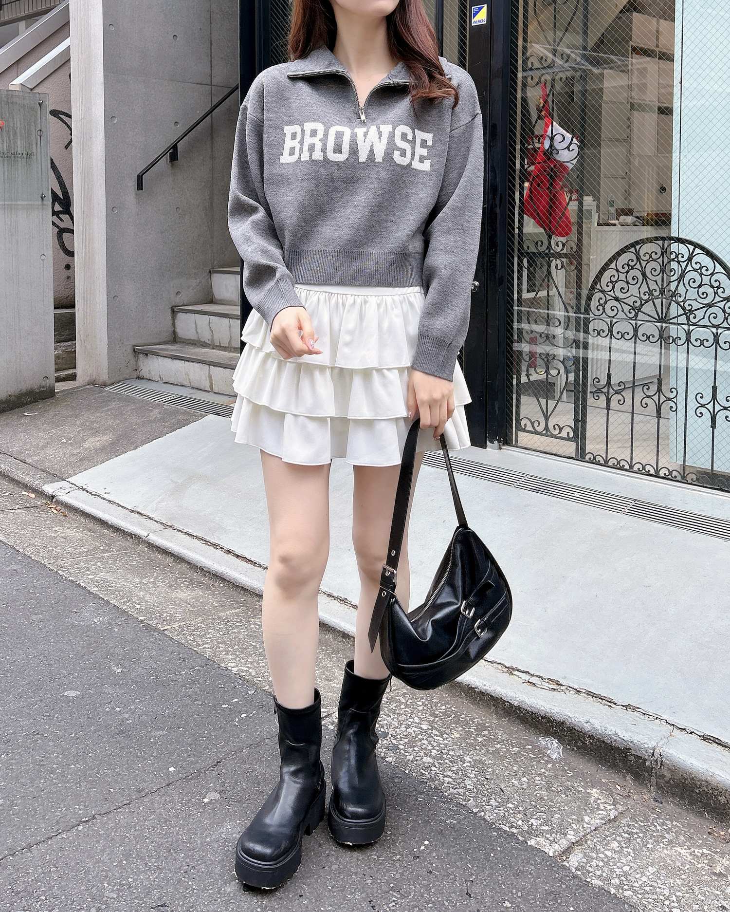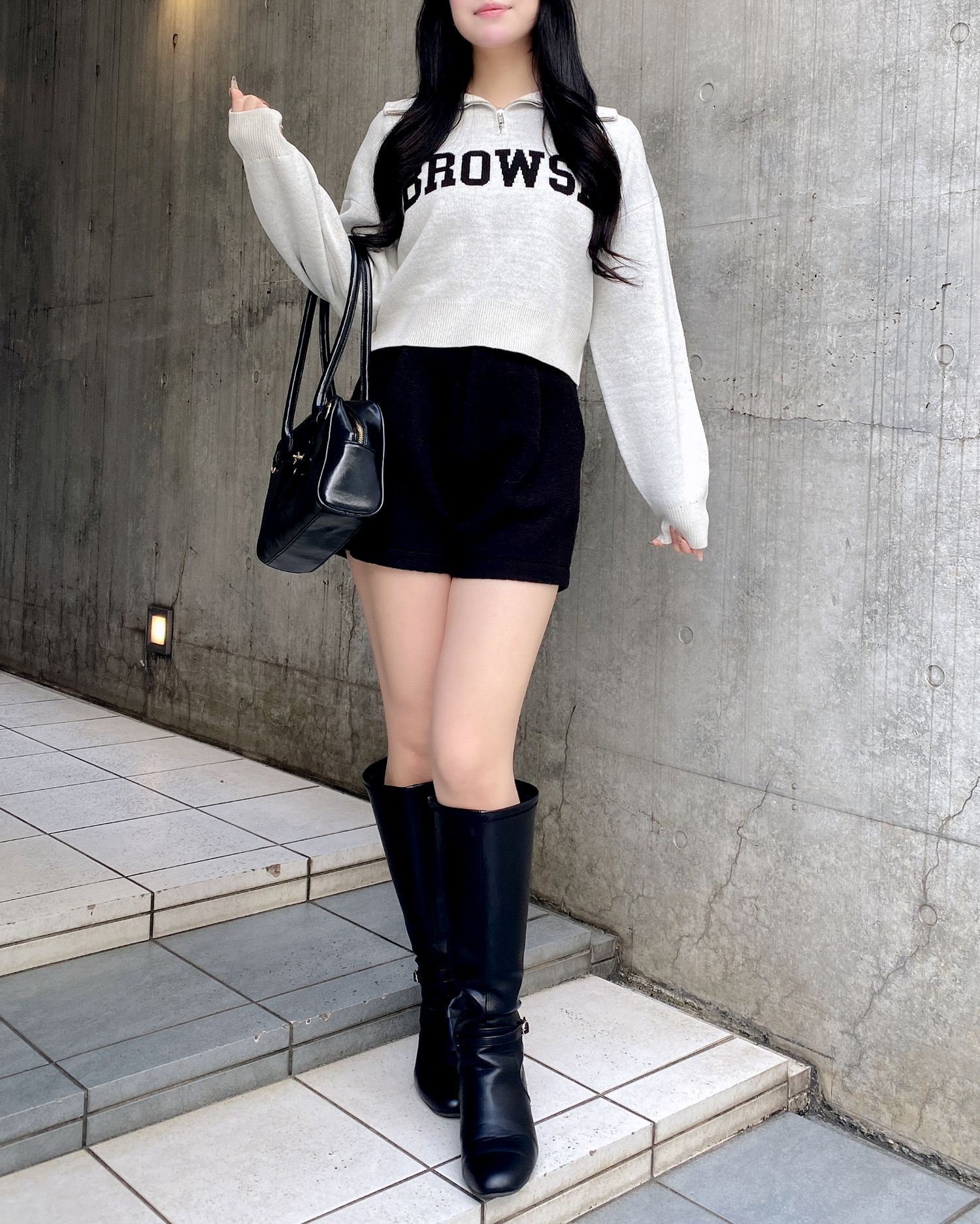 • INGNI(イング) ハーフジップショート丈ロゴニット チャコールグレー/オフホワイト