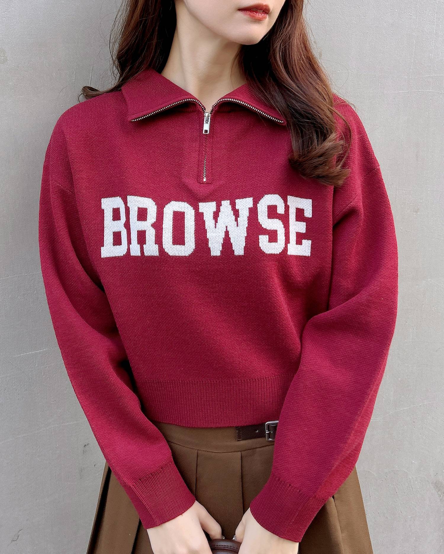 • INGNI(イング) ハーフジップショート丈ロゴニット ボルドー/オフホワイト